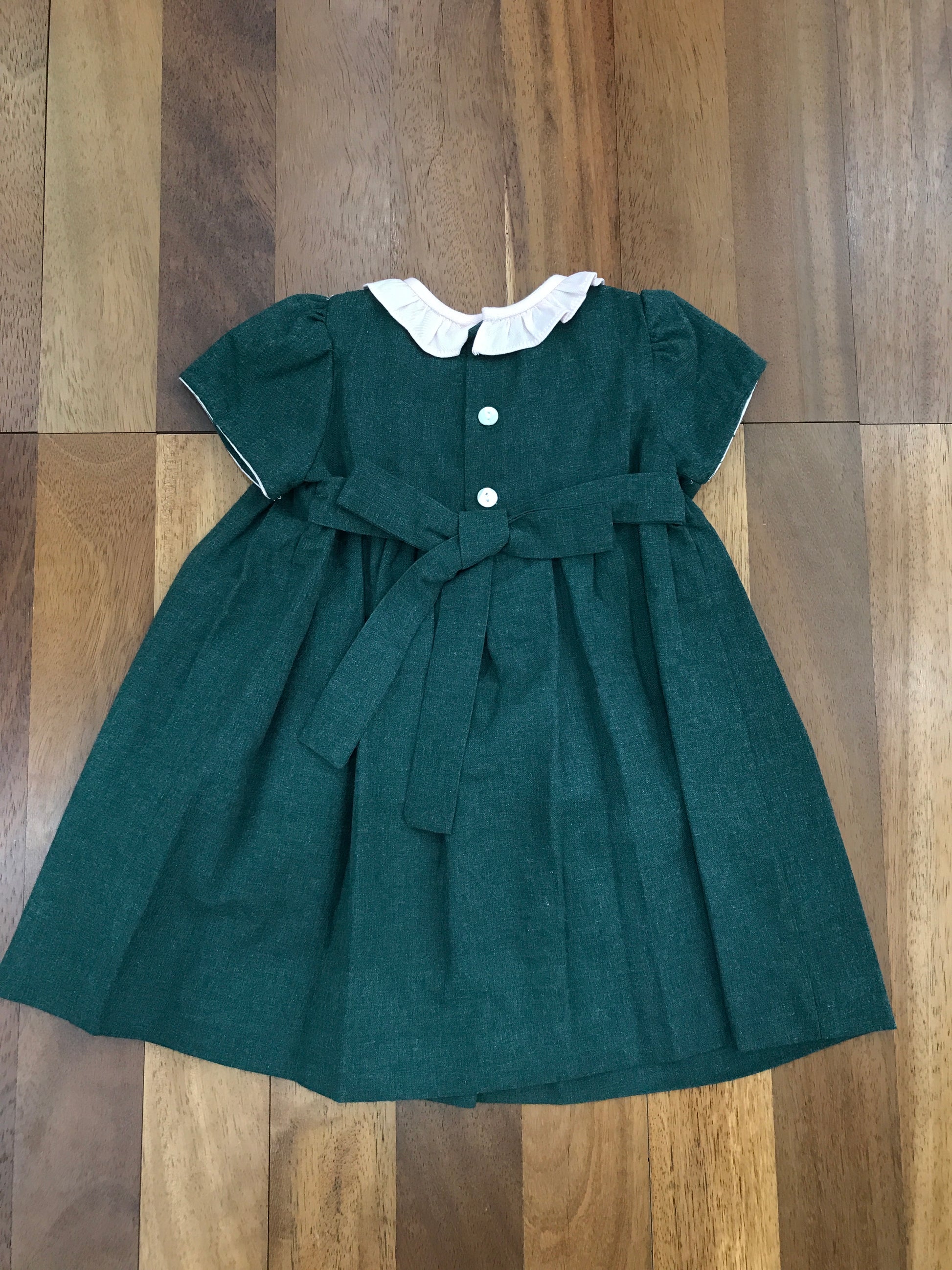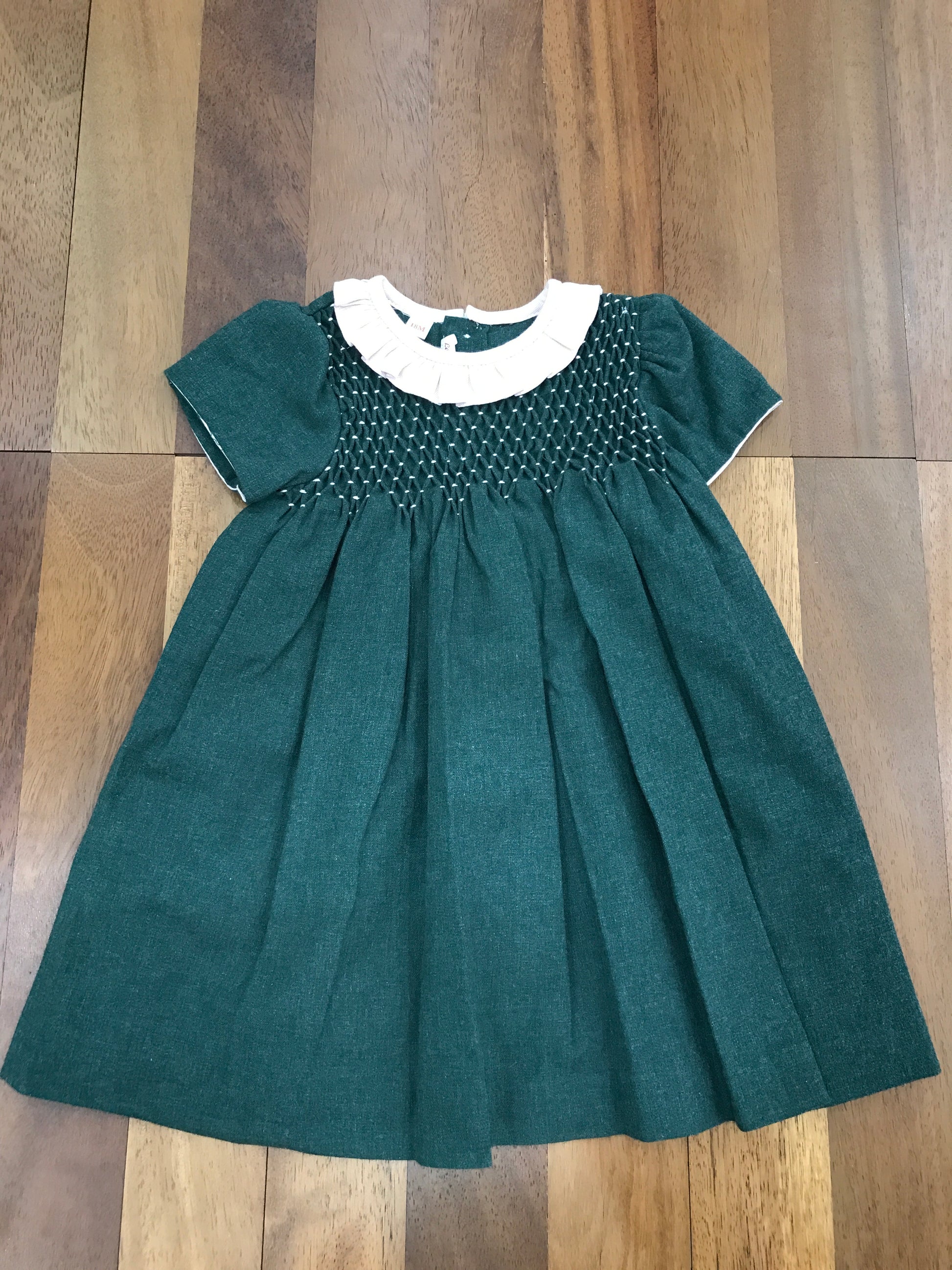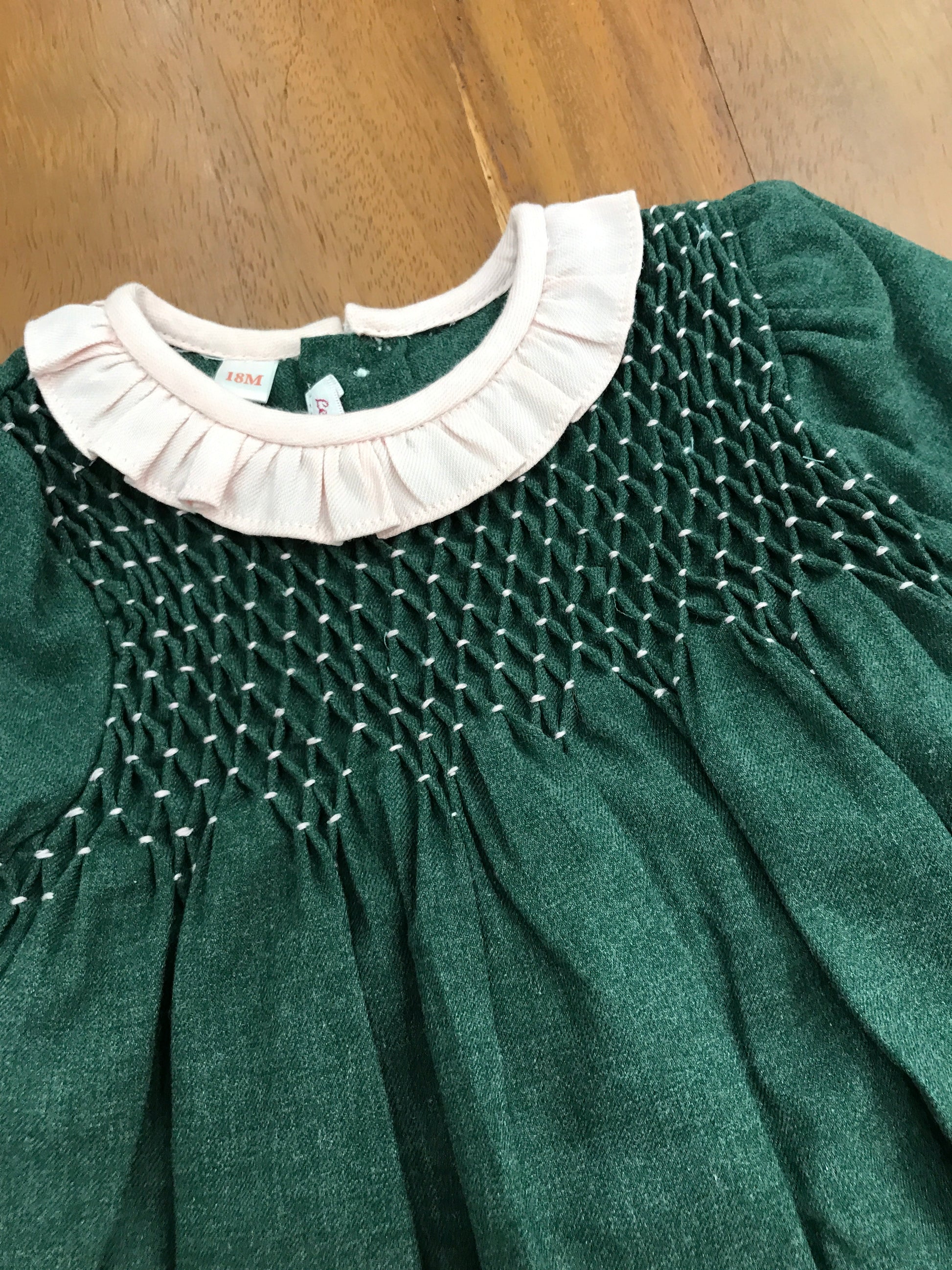 Abitino fofettes è realizzato in caldo cotone, ideale per garantire comfort e traspirabilità. Senza colletto, presenta un collo rifinito con delicata rouche e mezza manica dritta, per un design semplice ma curato. Il corpetto, interamente in punto smock a contrasto di colore, valorizza la vestibilità offrendo un effetto elastico e raffinato, perfetto per chi cerca un capo elegante ma pratico.
