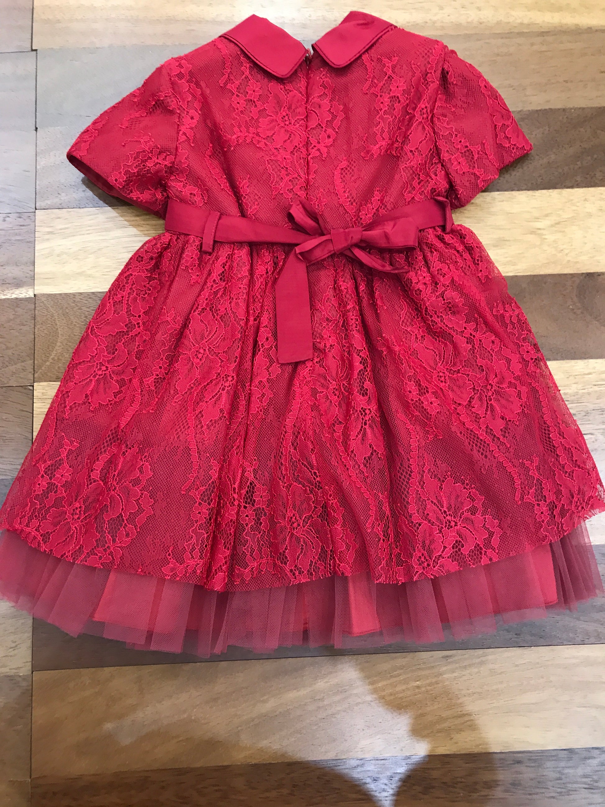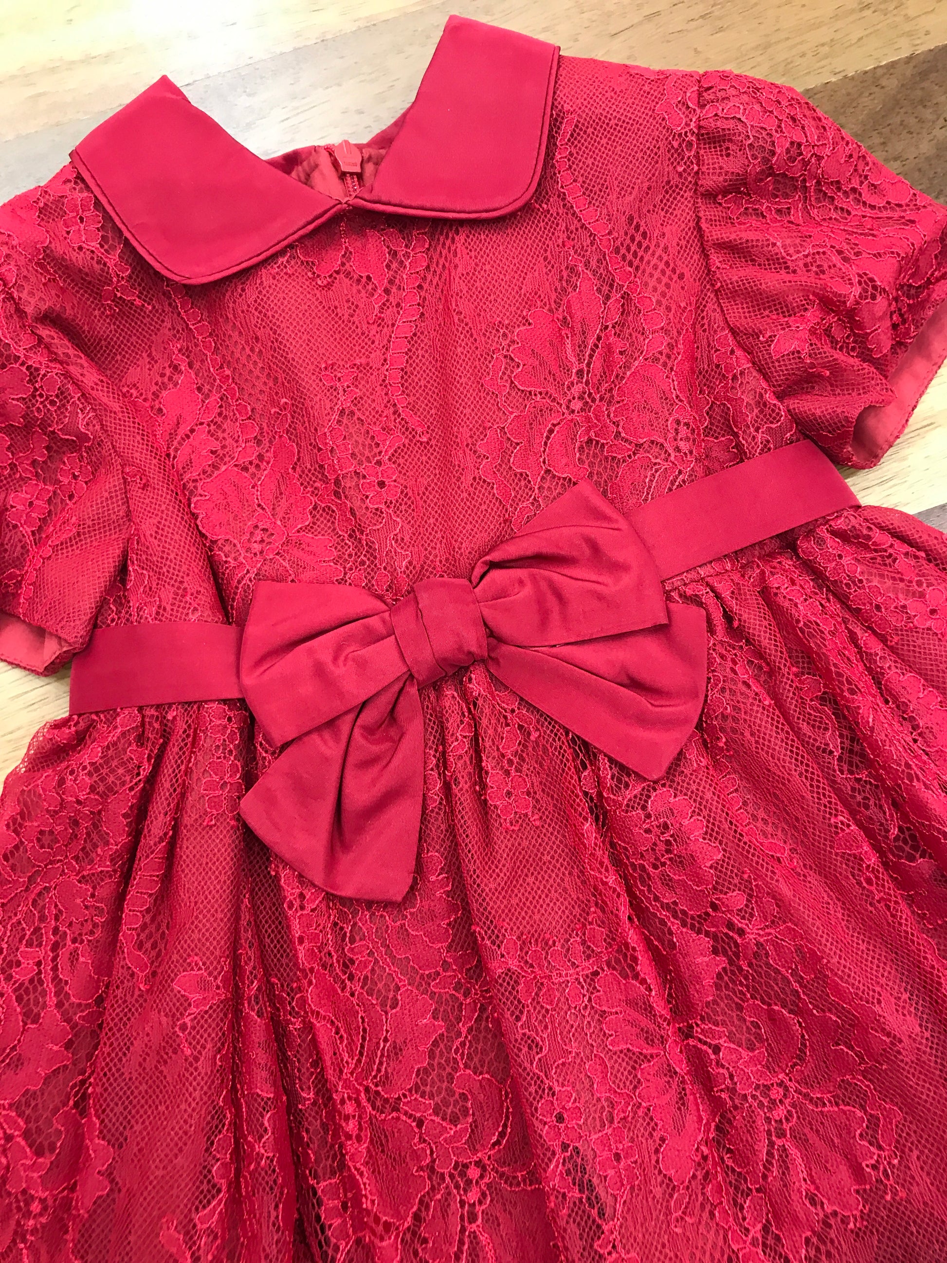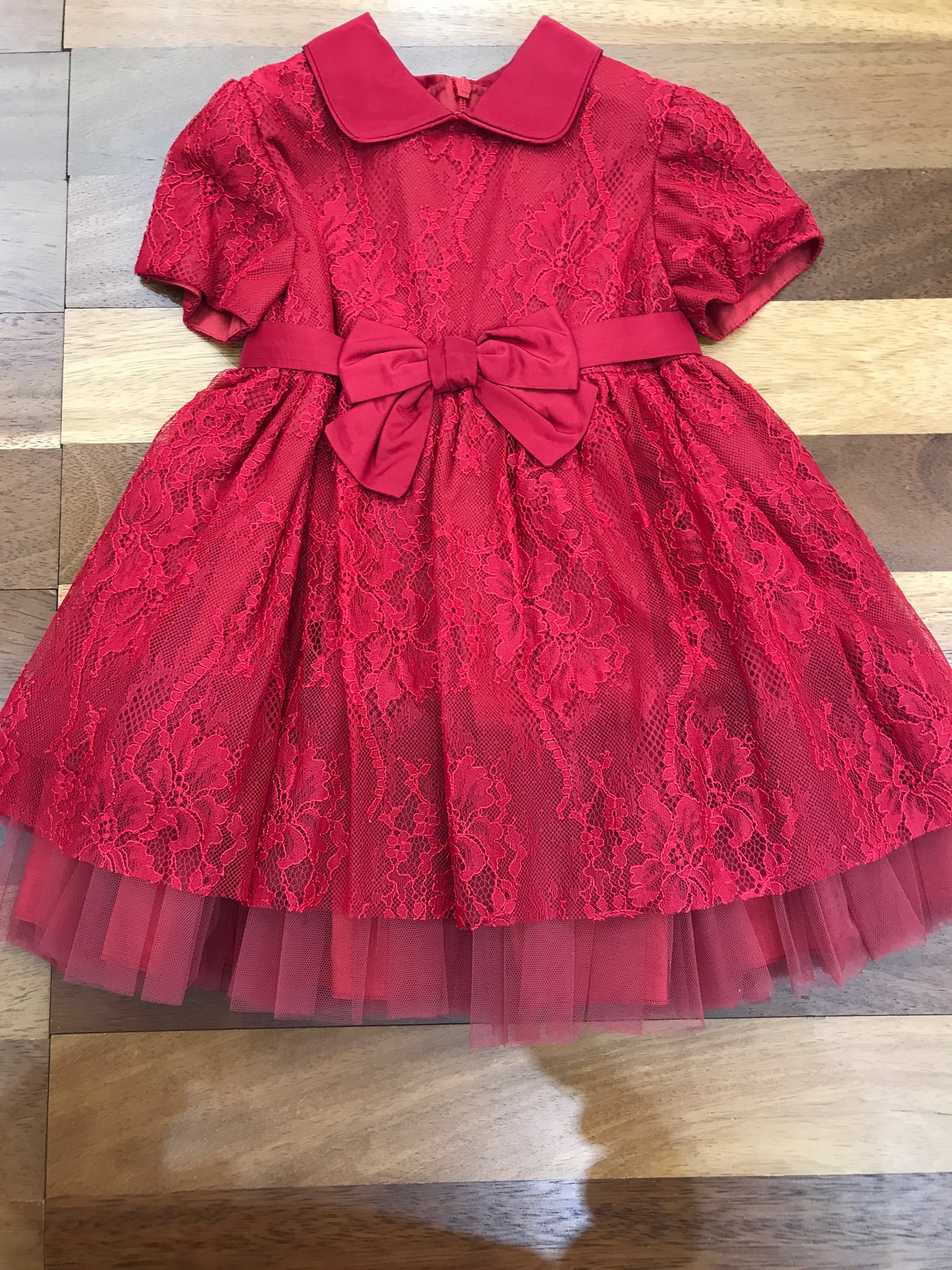 Elegante abitino in pizzo con gonna in tulle, caratterizzato da maniche corte a sbuffo e colletto classico. Un delicato fiocco in vita completa il design, creando un capo raffinato e versatile per occasioni speciali. La lavorazione in pizzo integrale garantisce qualità e dettagli curati, mentre la gonna in tulle aggiunge movimento e leggerezza al capo.