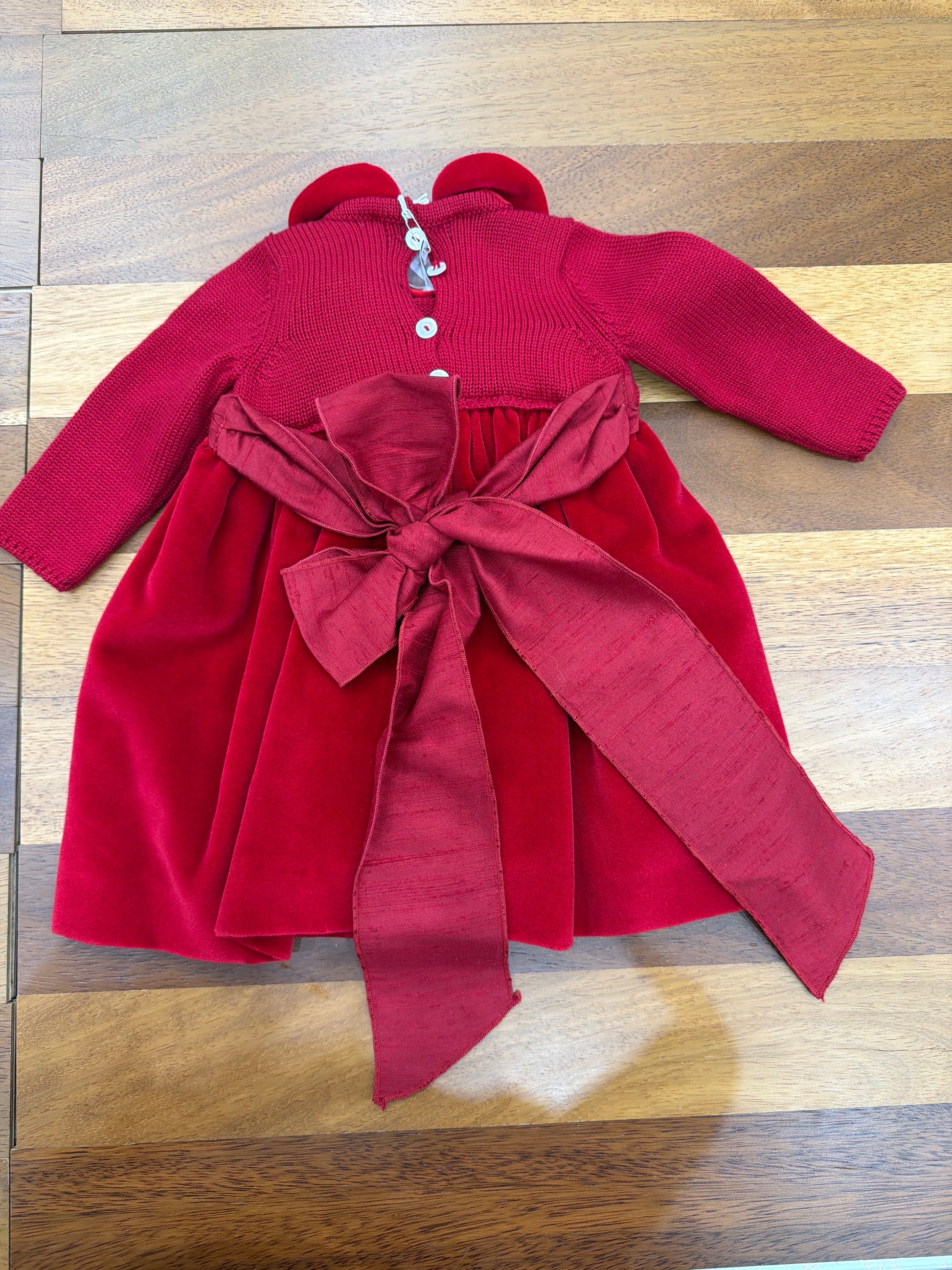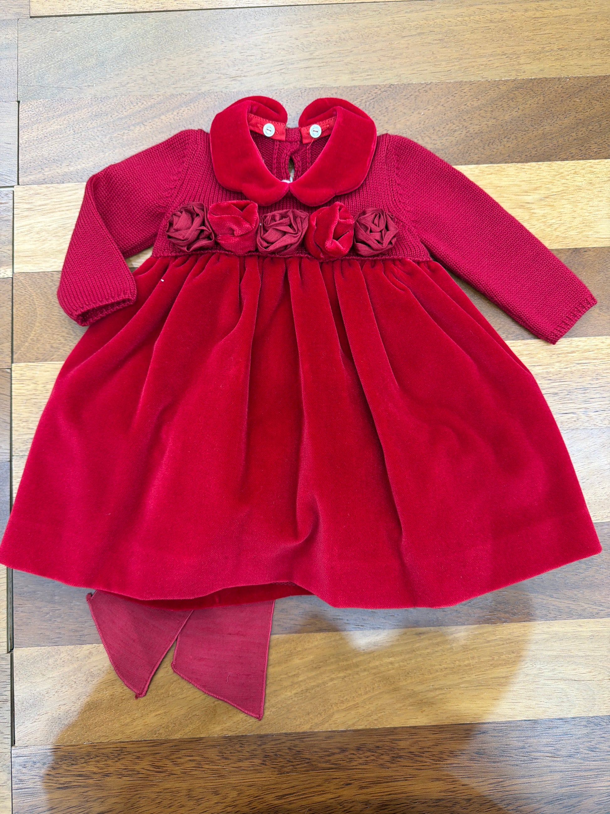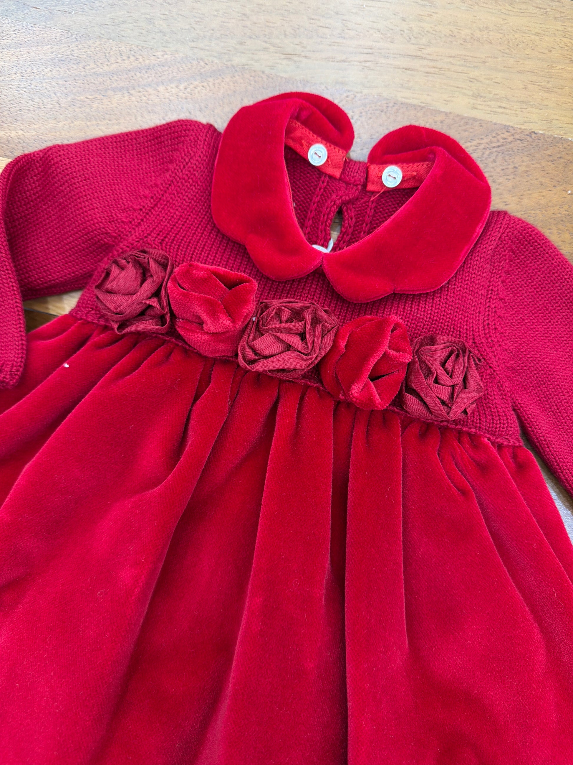 Un capo raffinato che unisce eleganza e ricercatezza. Il corpetto in lana, impreziosito da un delicato colletto smerlato in velluto, si abbina perfettamente alla gonna in velluto dalla linea essenziale. La transizione tra corpetto e gonna è valorizzata da appliquées floreali in velluto, che conferiscono al vestito un tocco di sofisticatezza. Un abitino pensato per le piccole fashioniste che apprezzano i dettagli curati e le finiture di qualità.