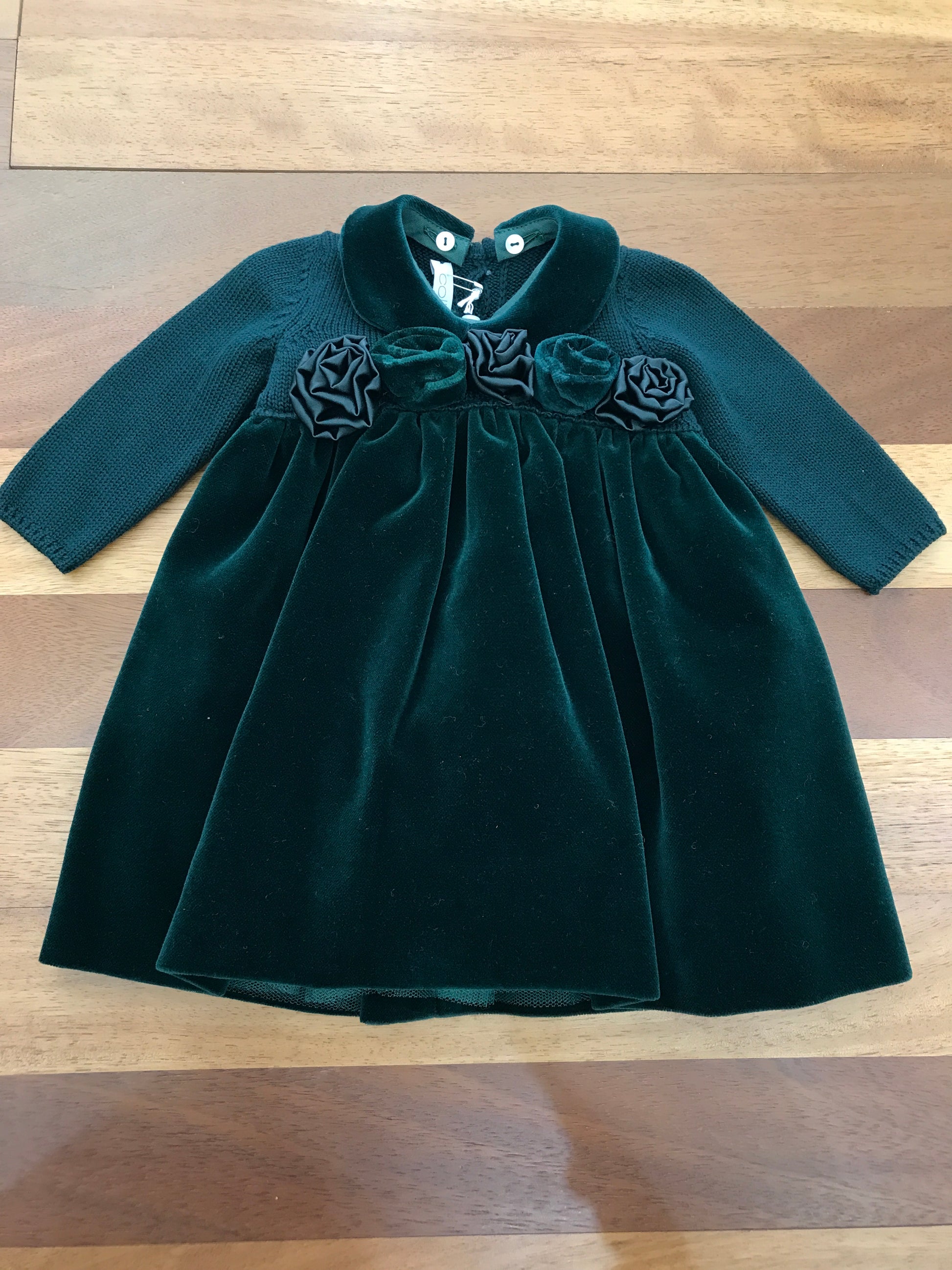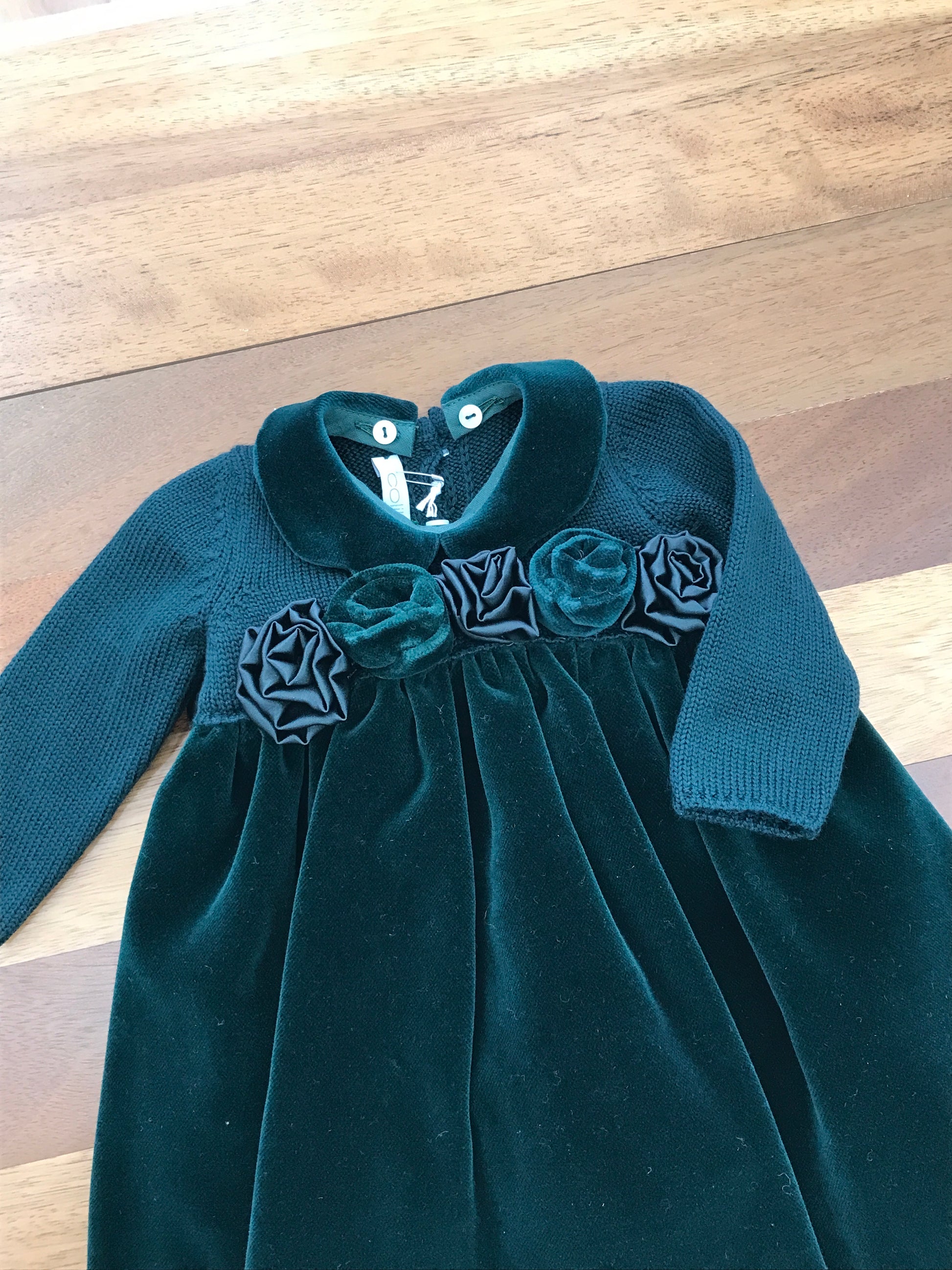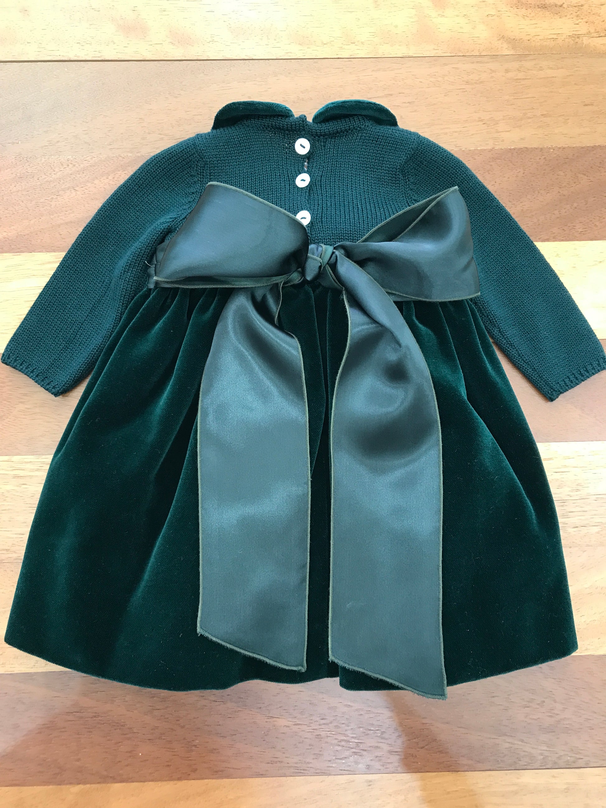 Un capo raffinato che unisce eleganza e ricercatezza. Il corpetto in lana, impreziosito da un delicato colletto smerlato in velluto, si abbina perfettamente alla gonna in velluto dalla linea essenziale. La transizione tra corpetto e gonna è valorizzata da appliquées floreali in velluto e satin, che conferiscono al vestito un tocco di sofisticatezza. Un abitino pensato per le piccole fashioniste che apprezzano i dettagli curati e le finiture di qualità.