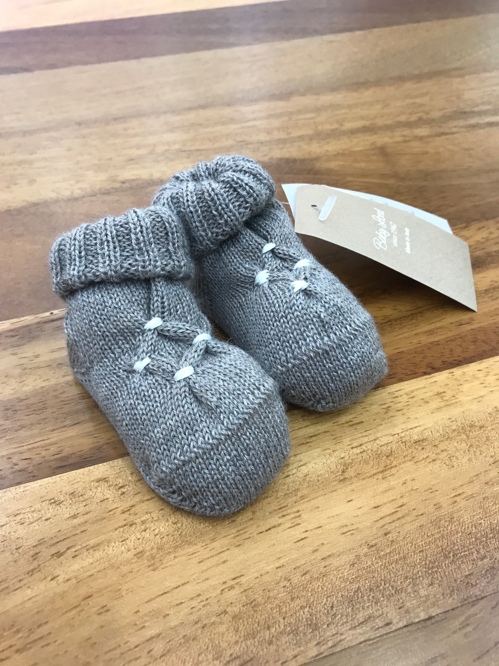Scarpine per neonati con risvolto e dettagli a punto smok in due colori.