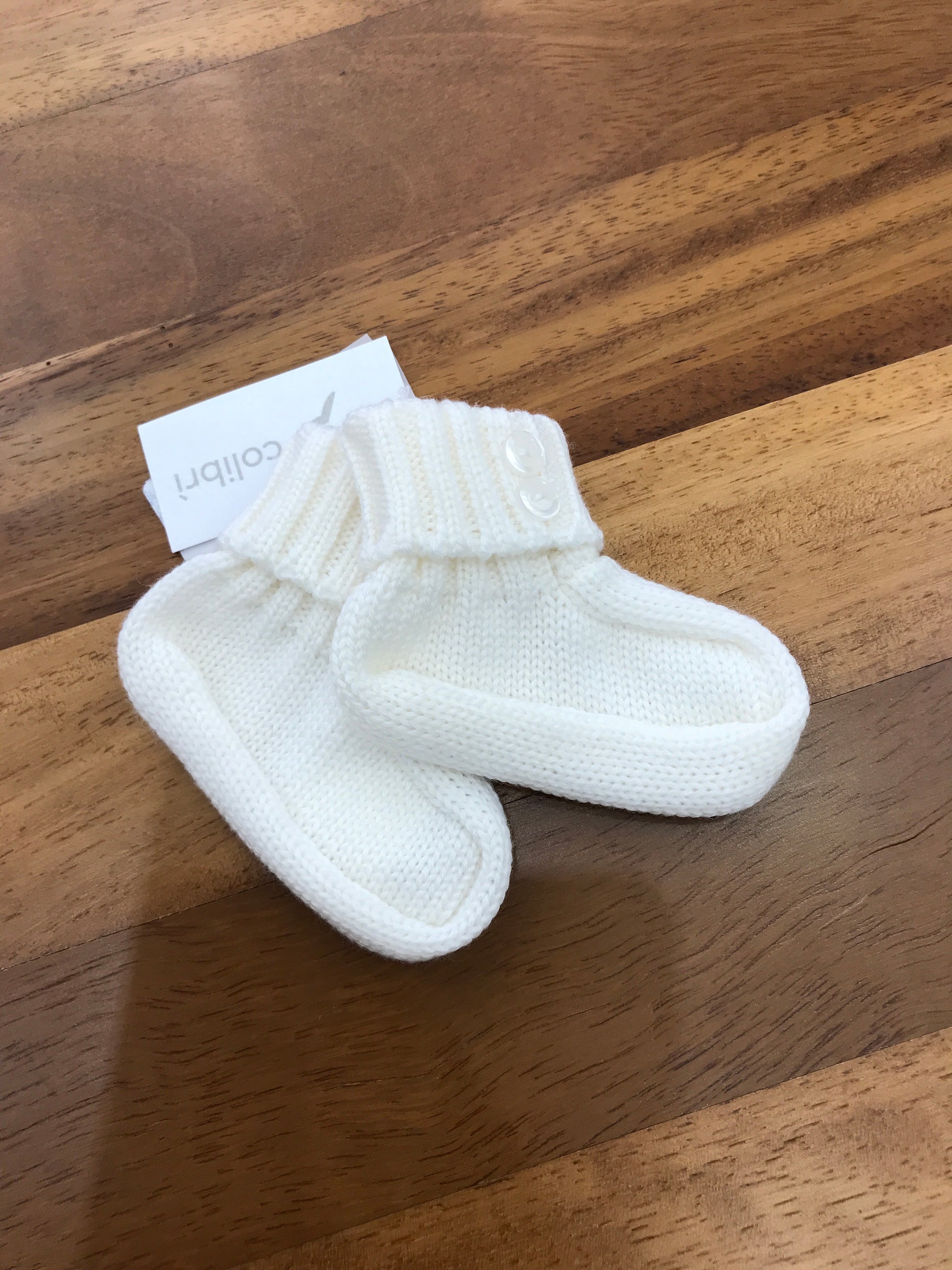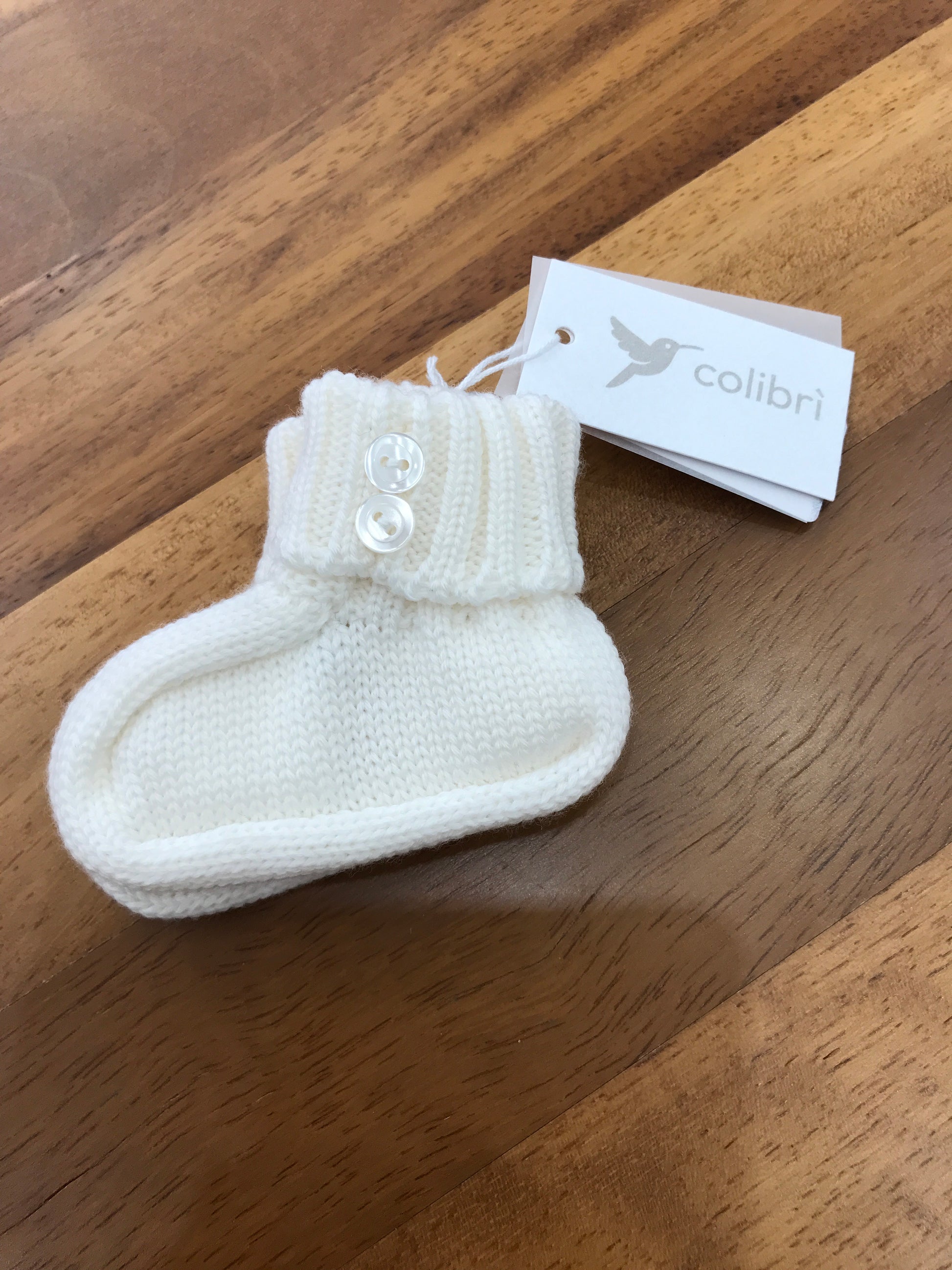 Babbucce in lana caratterizzate da un piccolo risvolto e arricchite da due bottoncini decorativi sul lato.