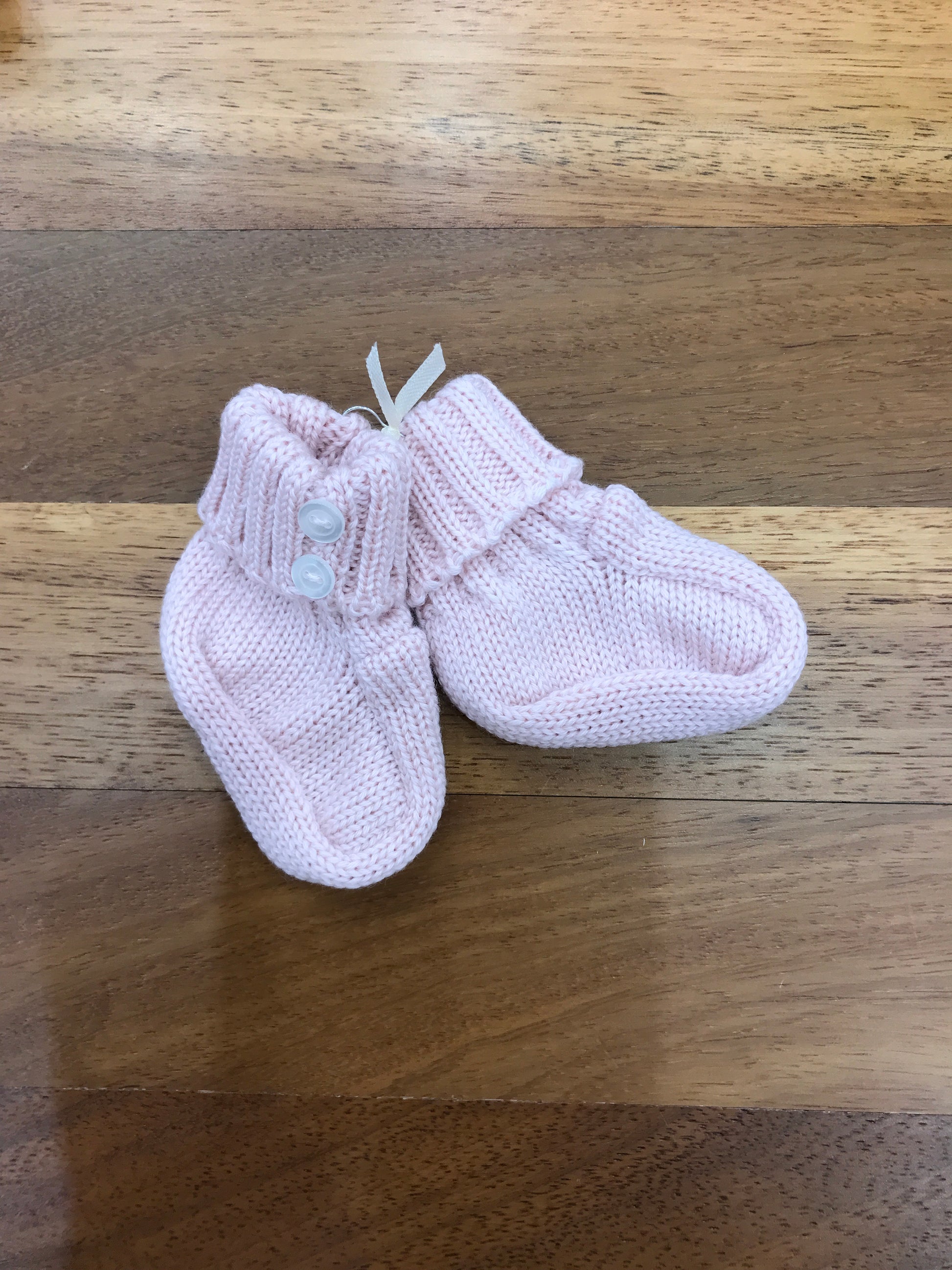 Babbucce in lana caratterizzate da un piccolo risvolto e arricchite da due bottoncini decorativi sul lato.