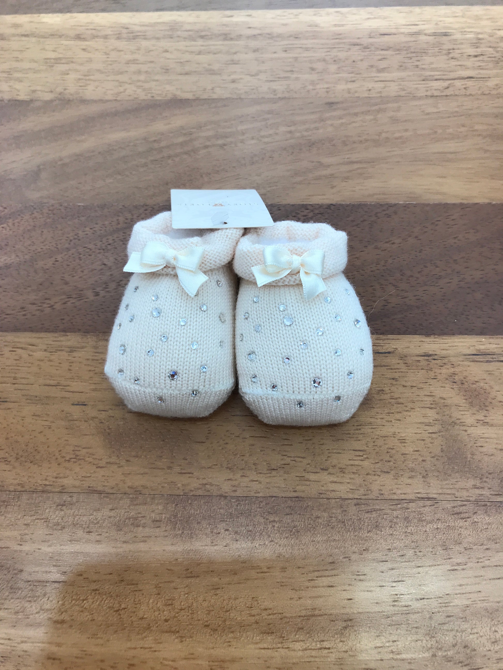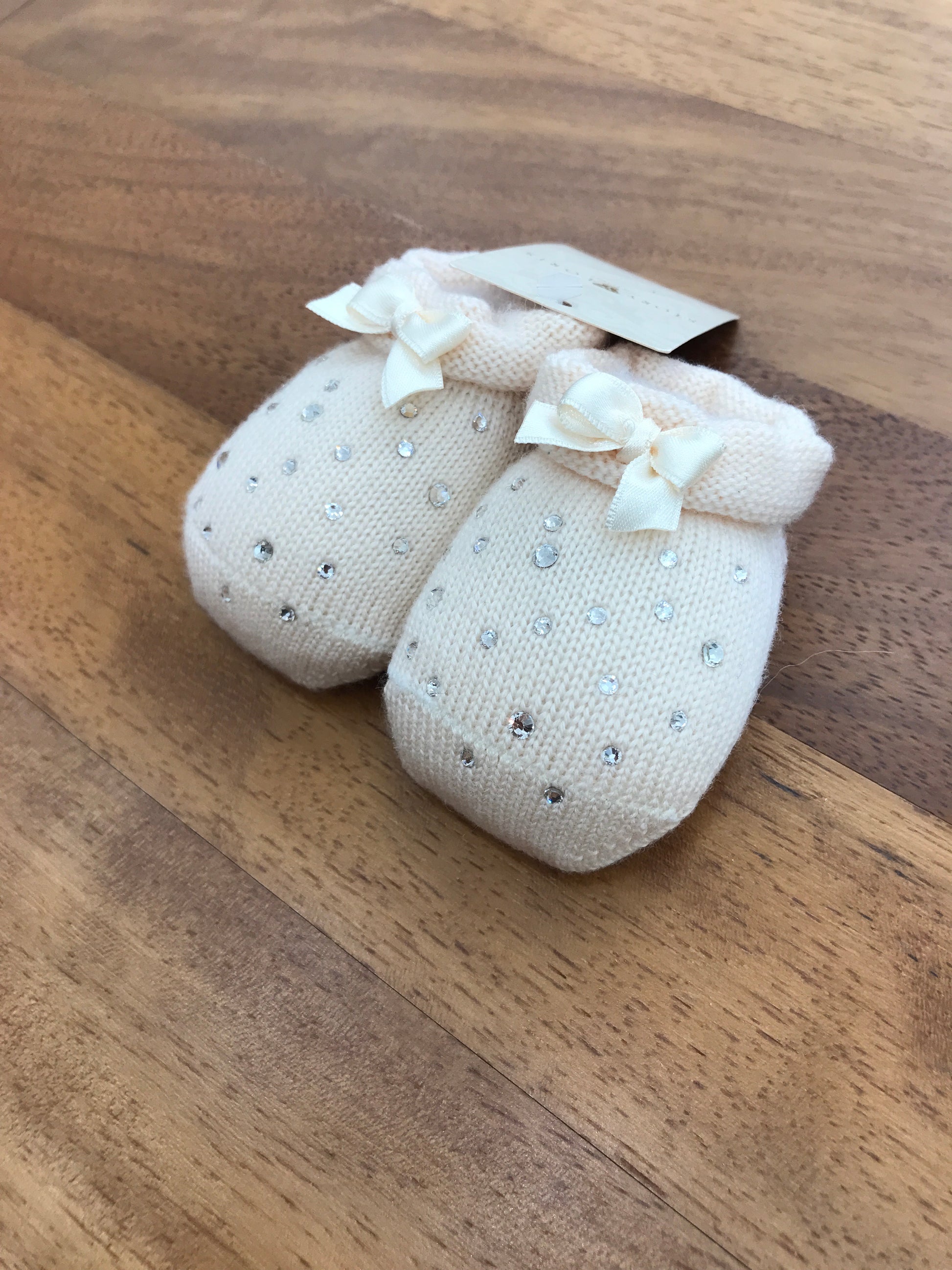 Morbide babbucce in lana color panna con risvolto, decorate da una brillantezza uniforme su tutta la parte frontale.
