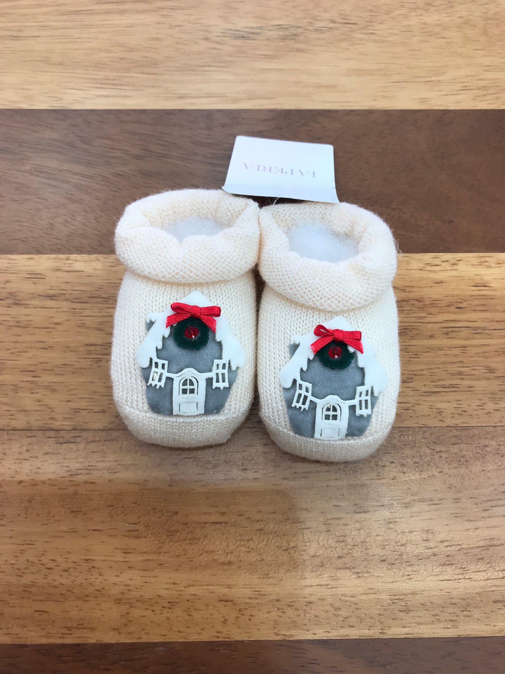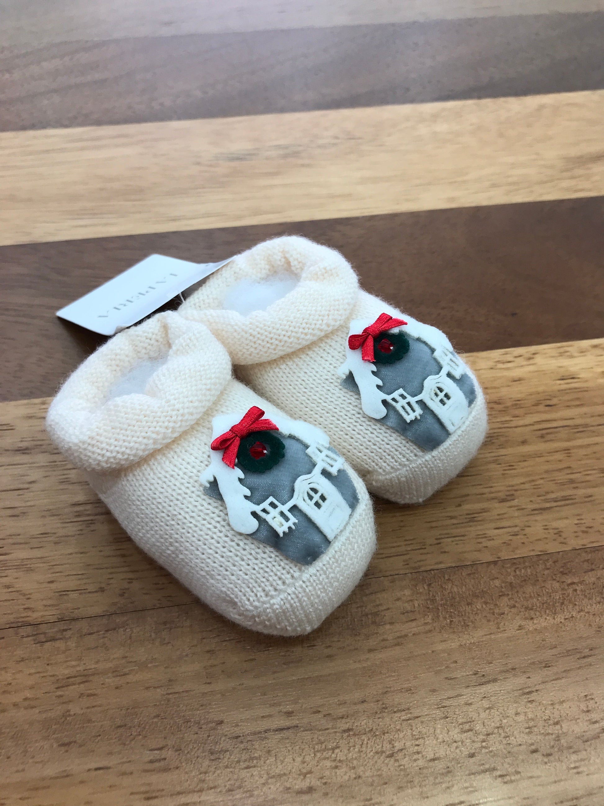 Pantofole in pura lana dal caldo colore avorio, caratterizzate da un delicato risvolto superiore e impreziosite da un'applicazione natalizia sulla parte anteriore. Un accessorio che unisce comfort tradizionale e dettagli festivi, perfetto per i momenti di relax durante le festività.