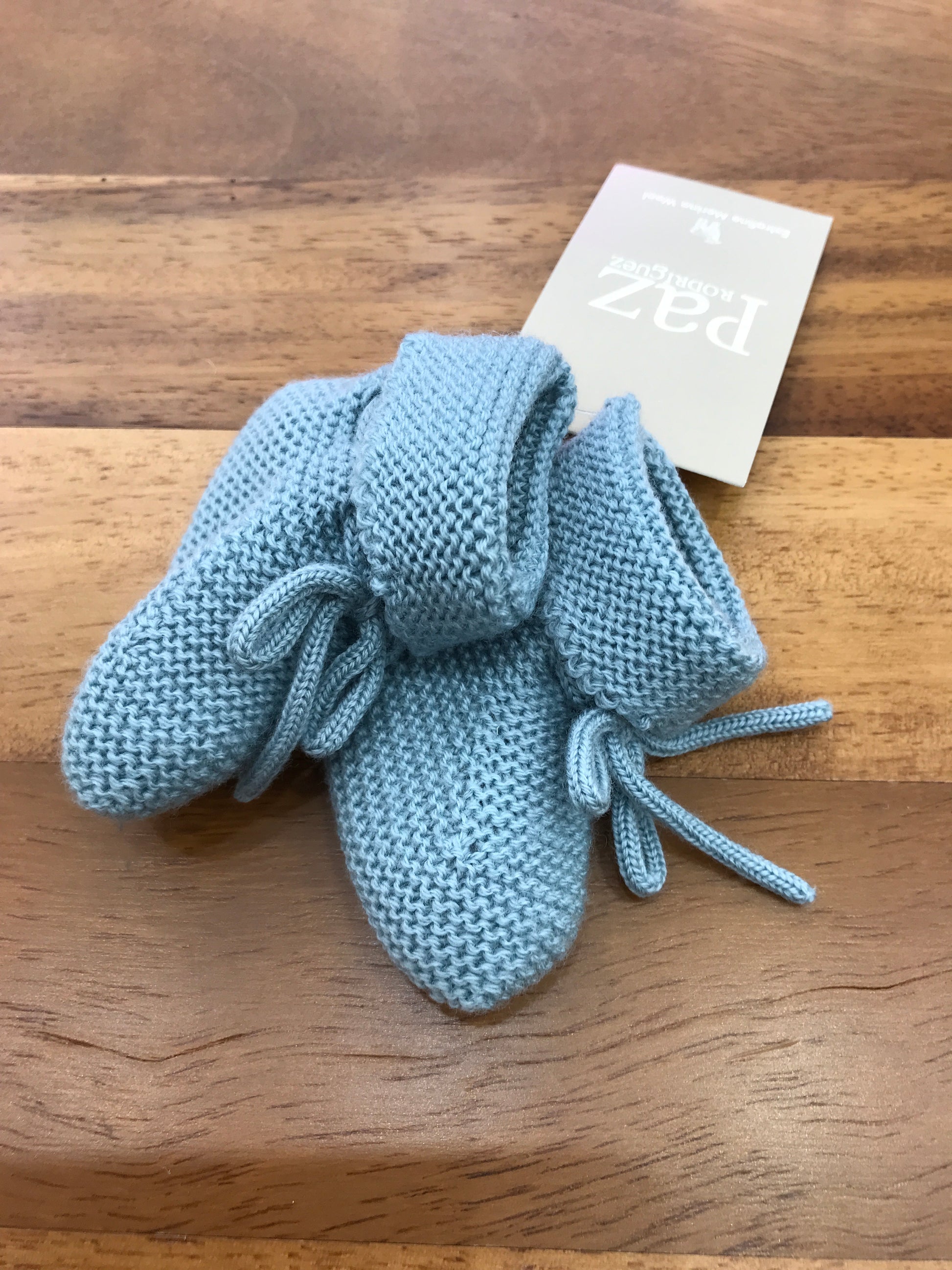 Morbide babbucce in lana dotate di un delicato risvolto e una chiusura a fiocco per una calzata sicura e confortevole.