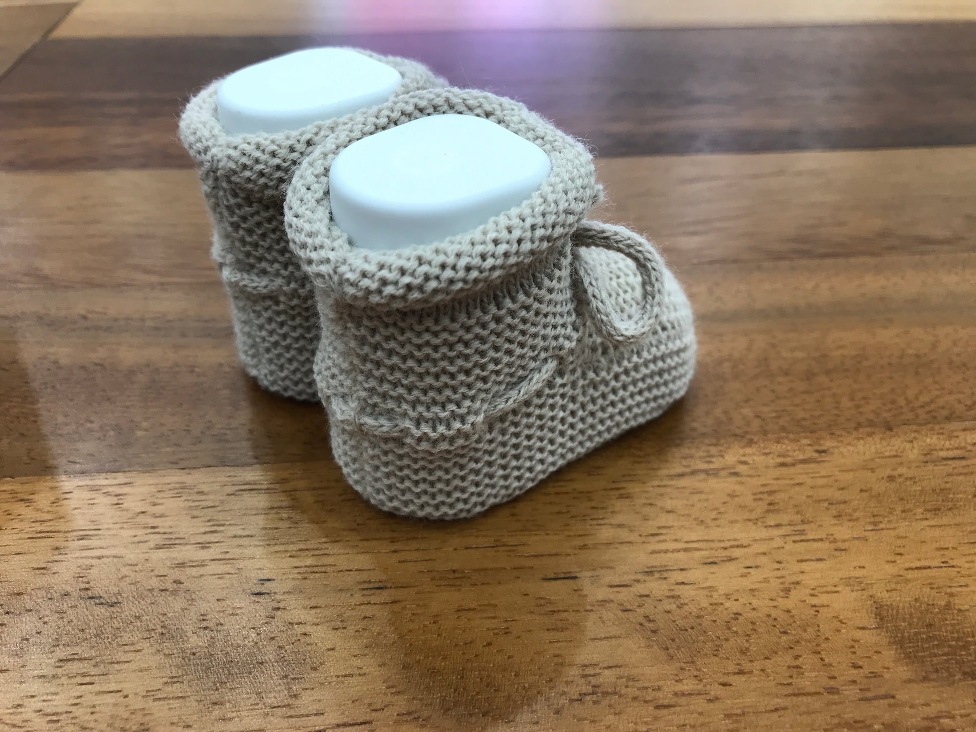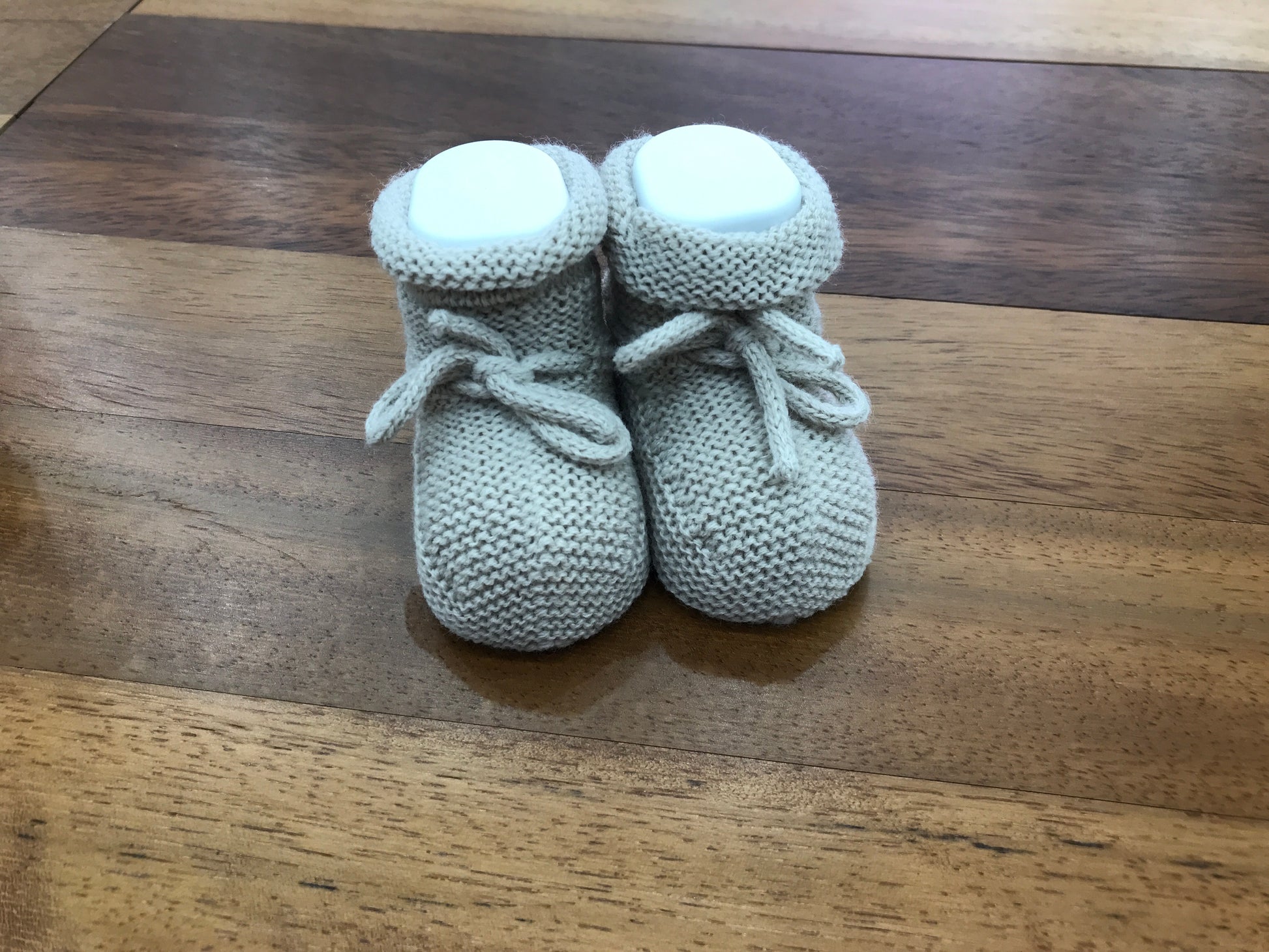 Queste babbucce tortora sono arricchite da un passanastro elegante. La chiusura a fiocchetto garantisce una calzata sicura e regolabile, mentre il piccolo risvolto aggiunge un dettaglio di stile discreto ma distintivo, rendendo queste babbucce perfette per il comfort e l’eleganza del neonato.