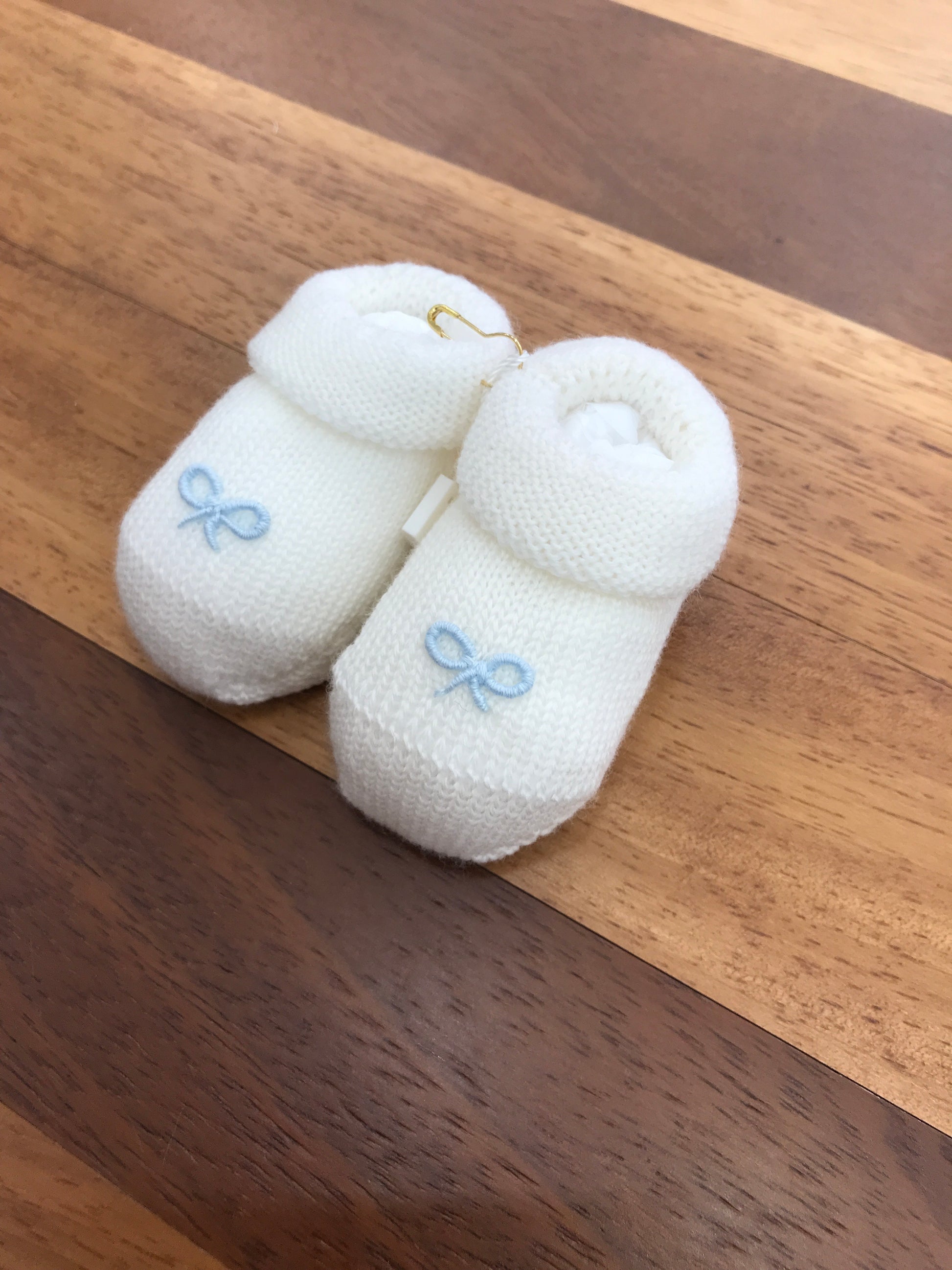 Morbide babbucce in lana color panna, caratterizzate da un piccolo risvolto e decorate al centro sul davanti con una delicata rosa rosa ricamata.