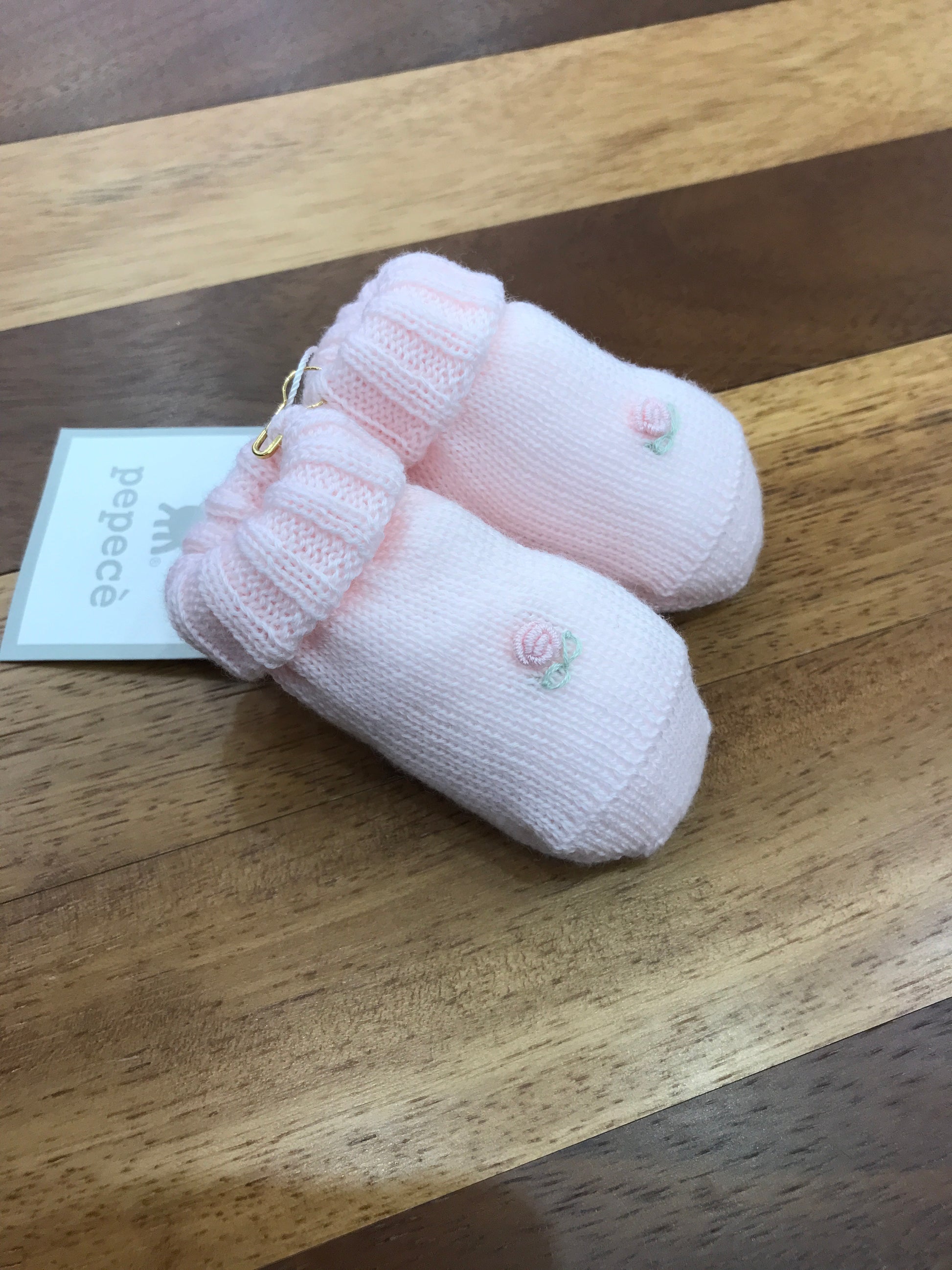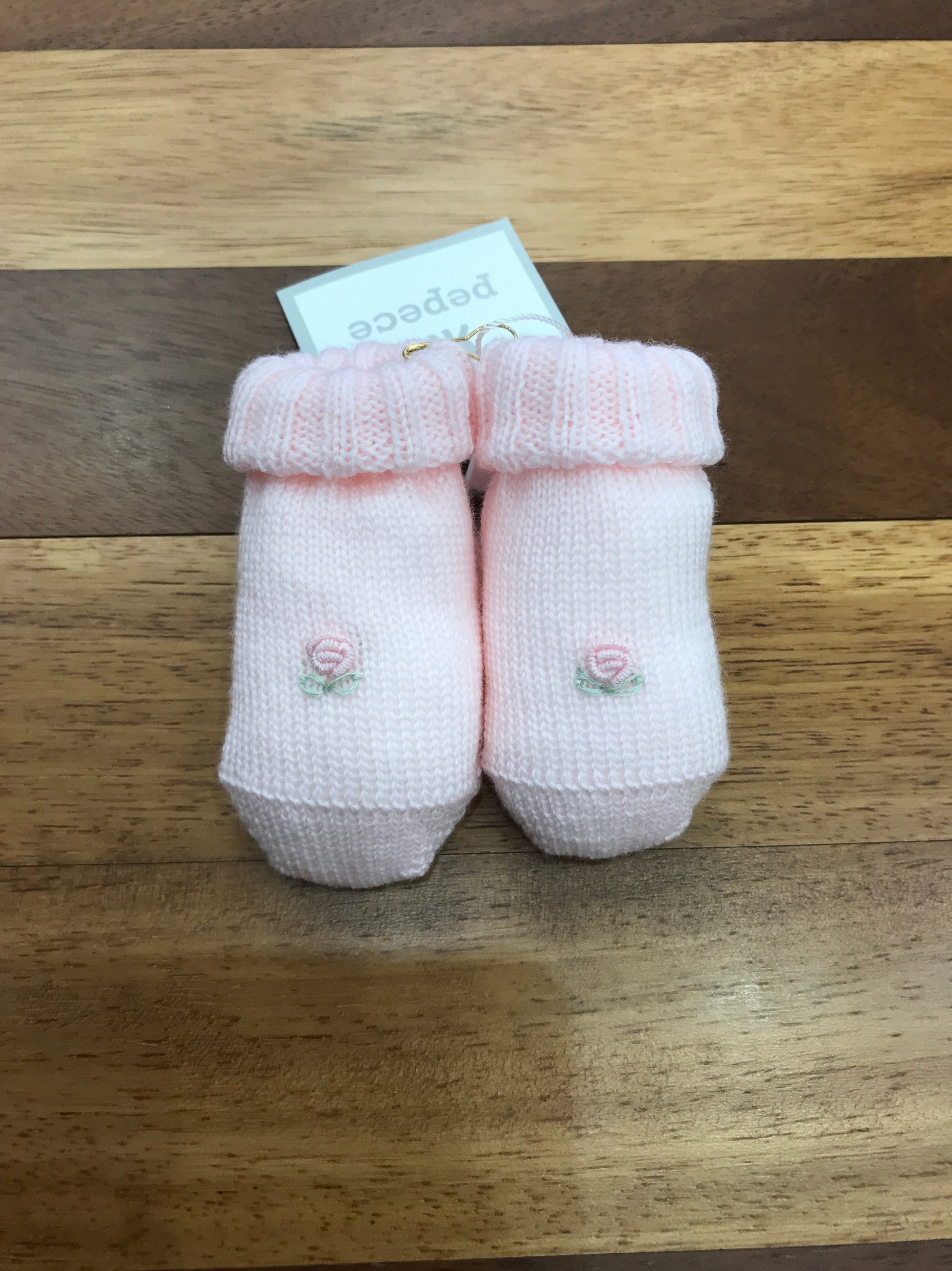 Scarpine con risvolto impreziosite da un delicato ricamo a mano raffigurante Rosellina.