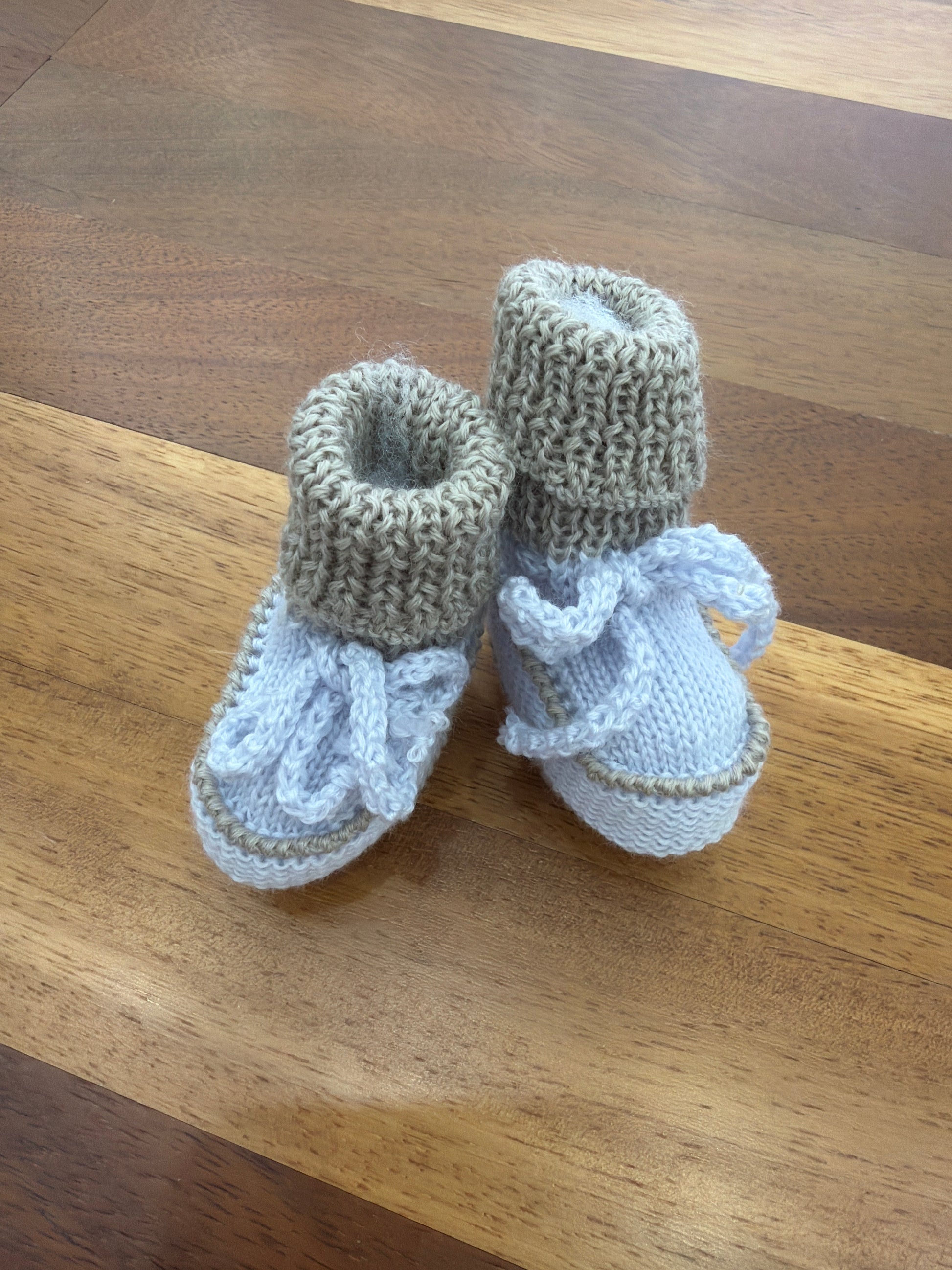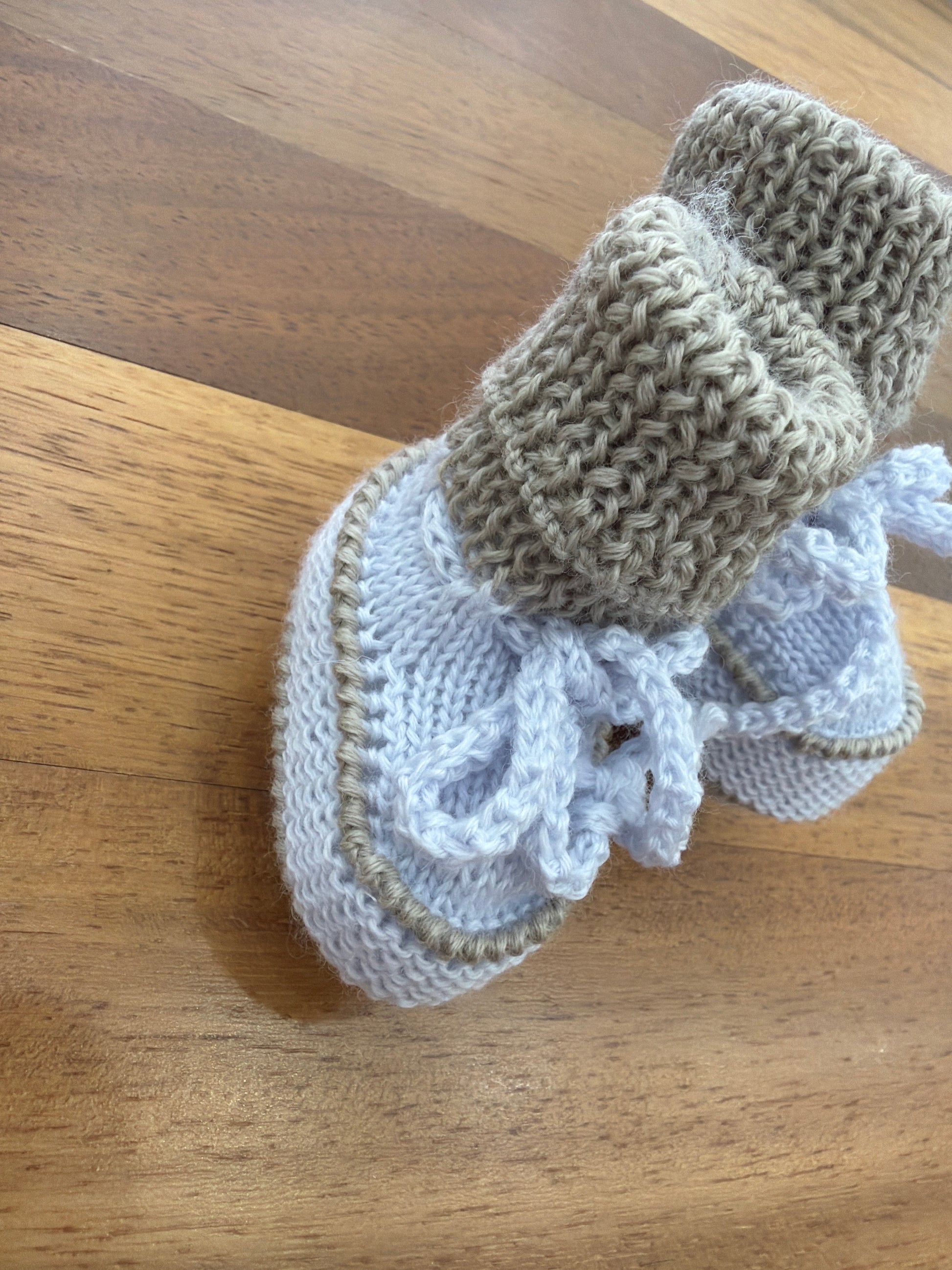 Babbucce in lana con suola celeste, impreziosite da un ricamo delicato color moro. La parte superiore è completamente realizzata nel medesimo tono moro, per un design raffinato e armonioso.