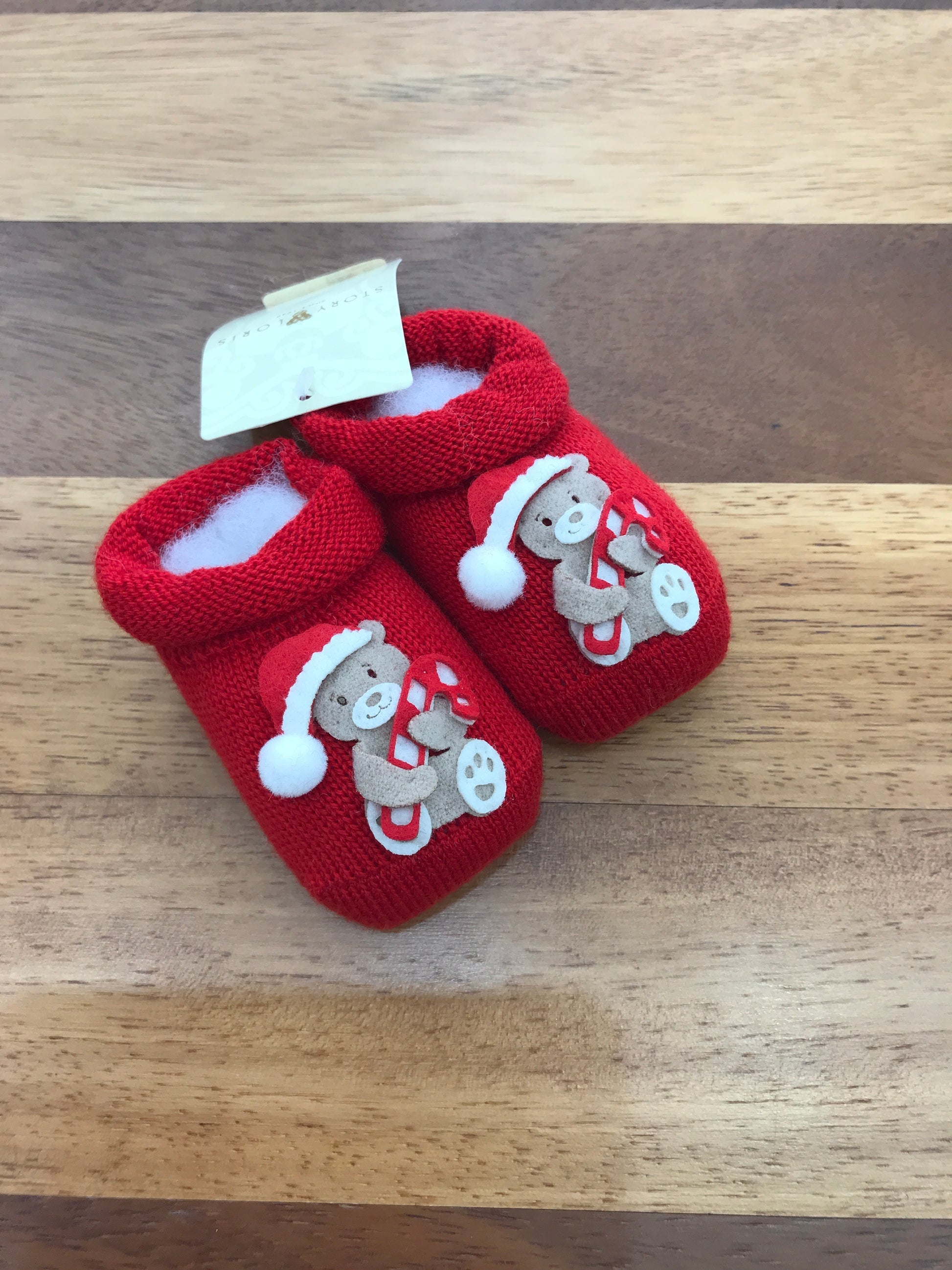 Pantofole in pura lana rossa caratterizzate da un elegante risvolto superiore e impreziosite da un delicato orsetto natalizio applicato sulla parte anteriore. Un capo pensato per regalare comfort e calore durante i mesi invernali, combinando la qualità della lana naturale con dettagli festivi che le rendono perfette per le occasioni speciali.