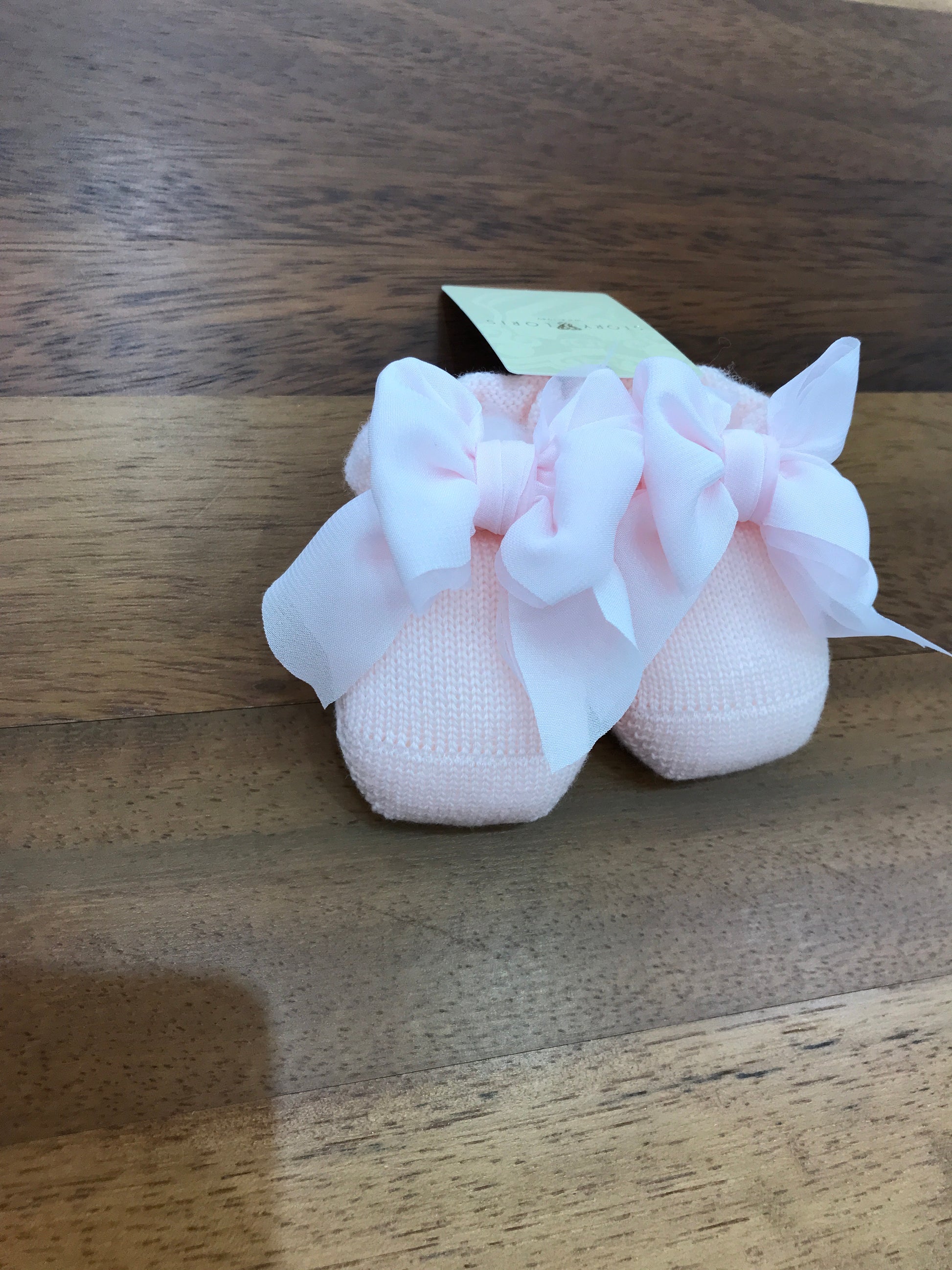 Babbucce realizzate in lana di alta qualità, dotate di un raffinato piccolo risvolto che ne valorizza il design. Sul davanti presentano un’elegante applicazione a forma di fiocco, che aggiunge un tocco di stile e raffinatezza a questo accessorio indispensabile per i più piccoli.