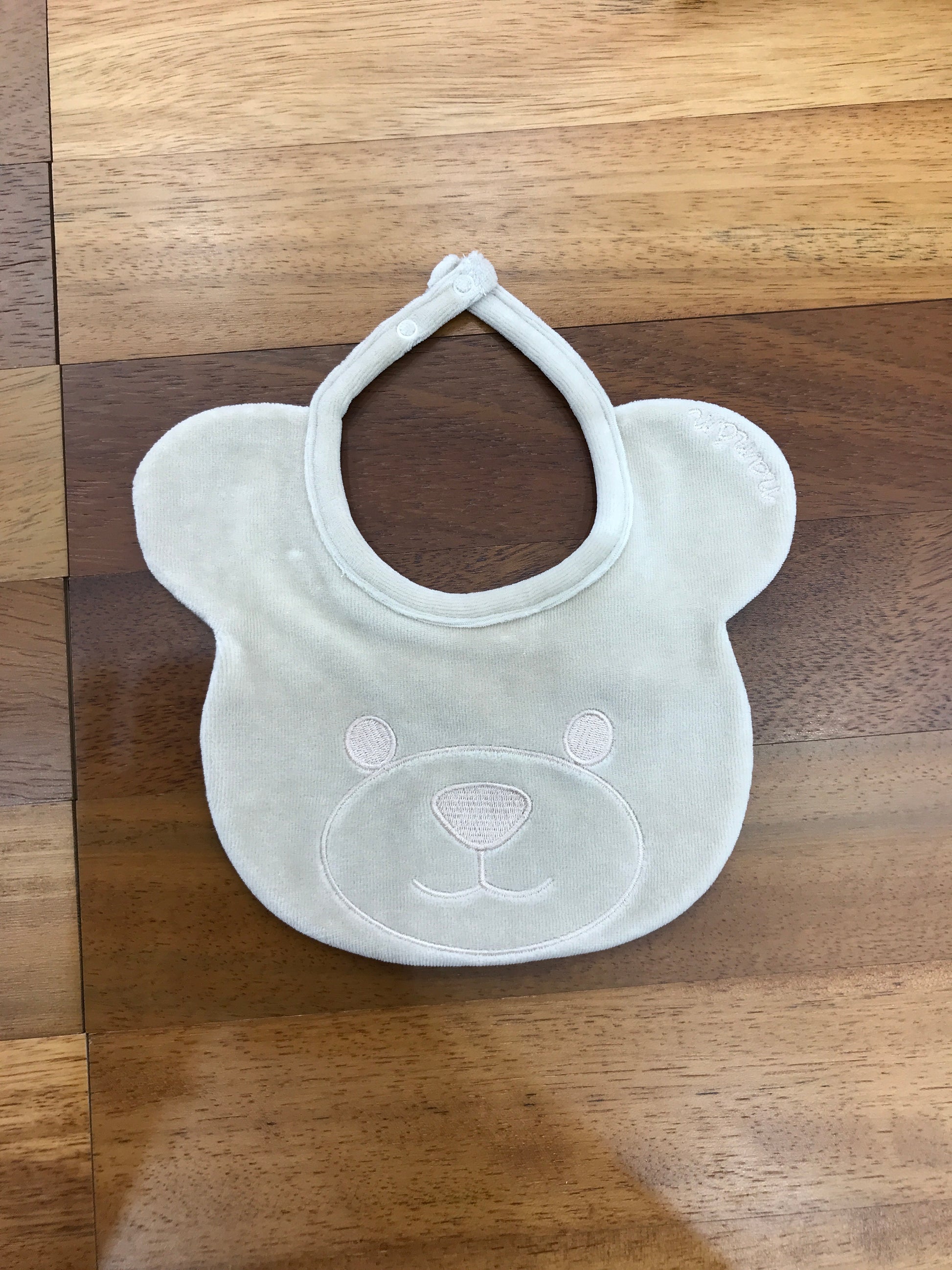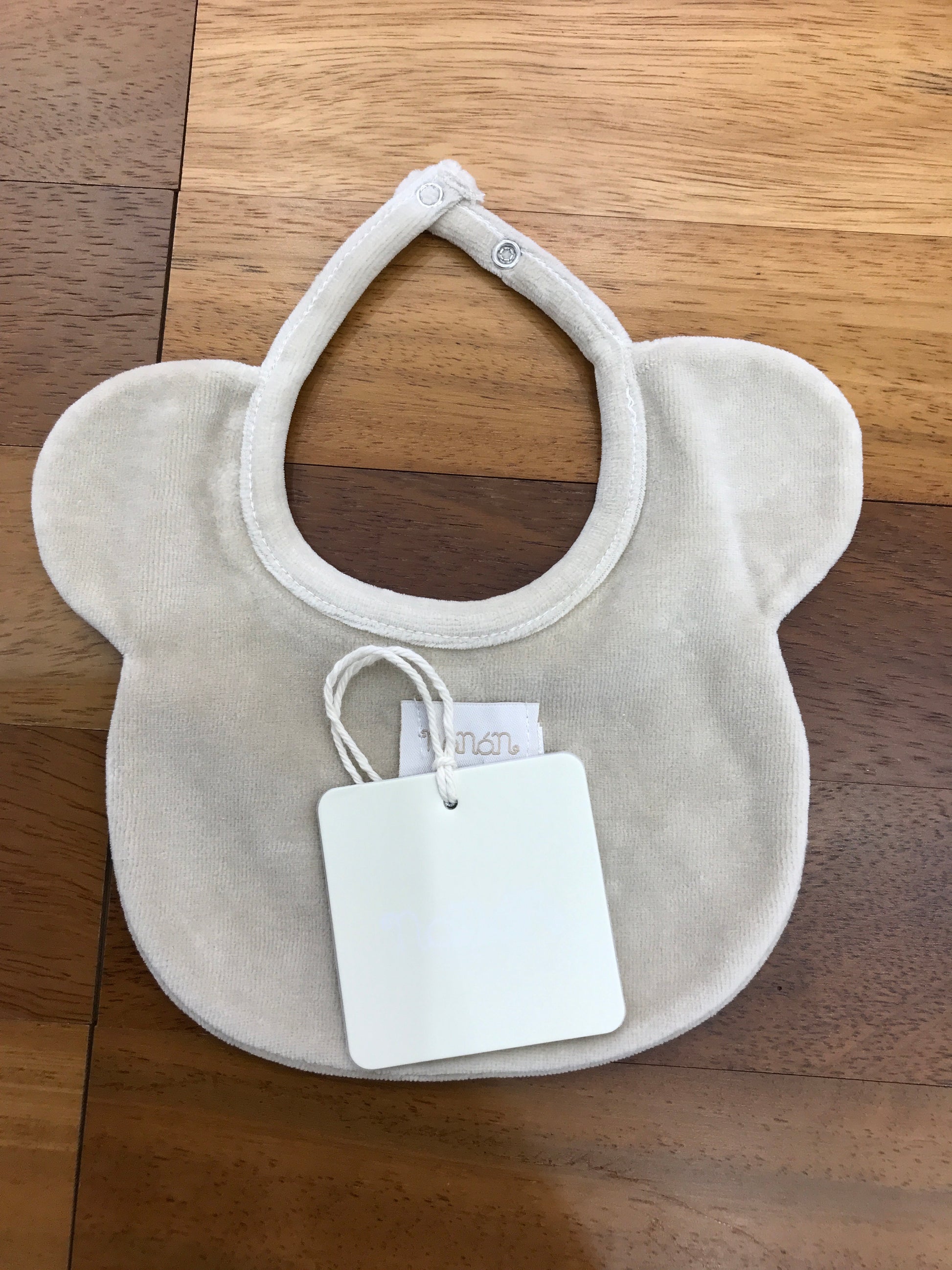 Questo bavaglino in morbida ciniglia è sagomato a forma di orsetto e presenta una chiusura pratica con due bottoni a pressione per una vestibilità sicura e comoda. La superficie è arricchita da un ricamo dettagliato che raffigura il volto dell’orsetto, conferendo un tocco di dolcezza e originalità al prodotto, ideale per proteggere i vestiti del bambino durante i pasti con stile e funzionalità.