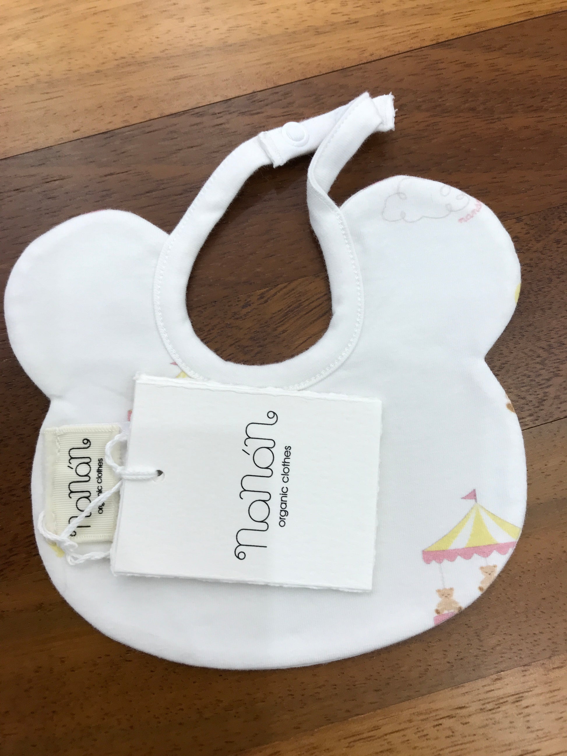 Il bavaglino Nanan presenta una forma a orsetto e si chiude comodamente grazie a pratiche chappette. La superficie è arricchita da una varietà di disegni, che aggiungono un tocco di originalità e allegria, rendendolo funzionale e allo stesso tempo esteticamente piacevole per i più piccoli.