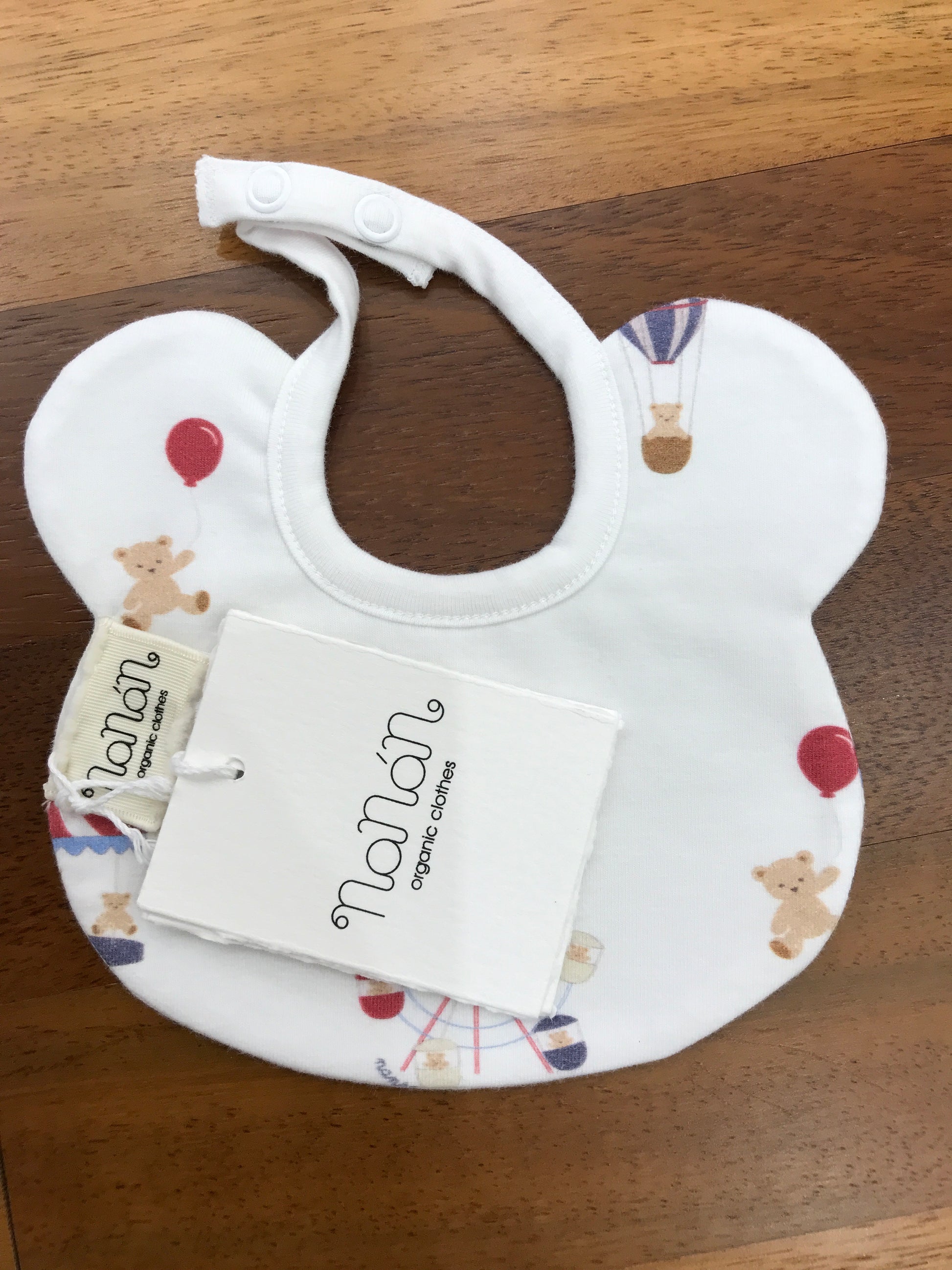 Il bavaglino Nanan presenta una forma a orsetto e si chiude comodamente grazie a pratiche chappette. La superficie è arricchita da una varietà di disegni, che aggiungono un tocco di originalità e allegria, rendendolo funzionale e allo stesso tempo esteticamente piacevole per i più piccoli.