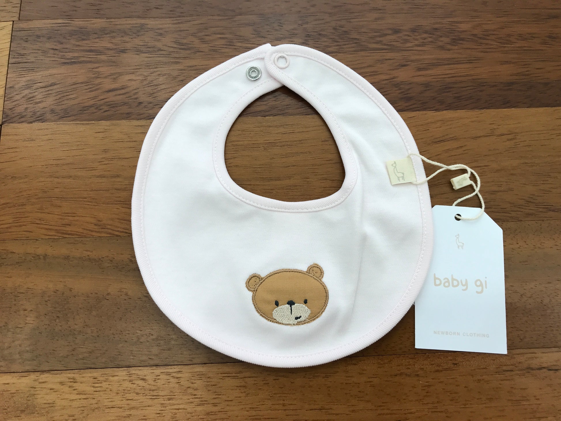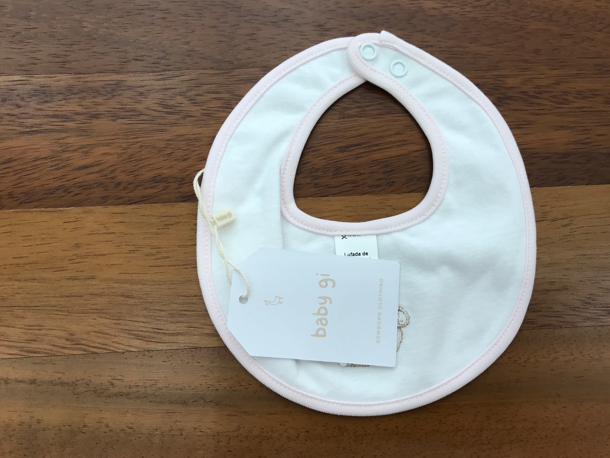 Bavaglino di forma rotonda, realizzato in un delicato colore rosa, impreziosito dalla presenza di un orsetto ricamato al centro, ideale per proteggere con stile e delicatezza durante i pasti del tuo bambino.