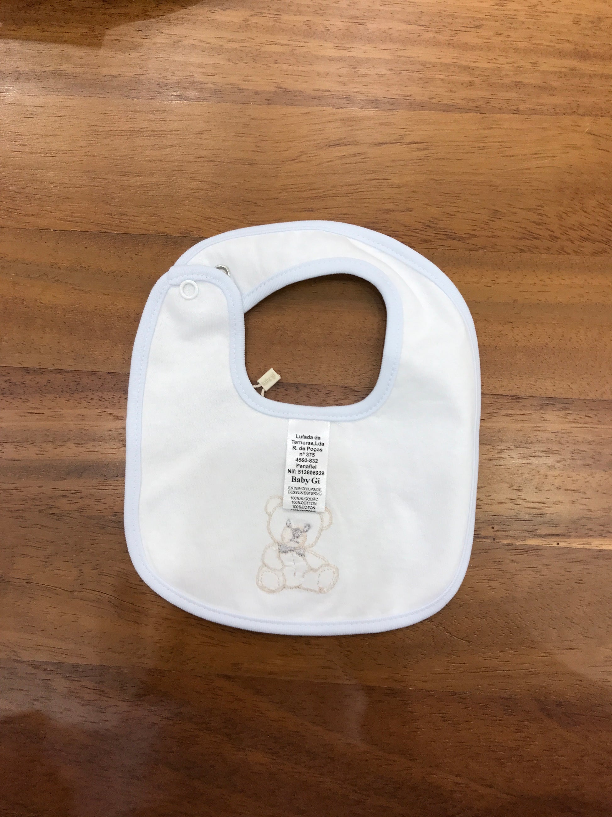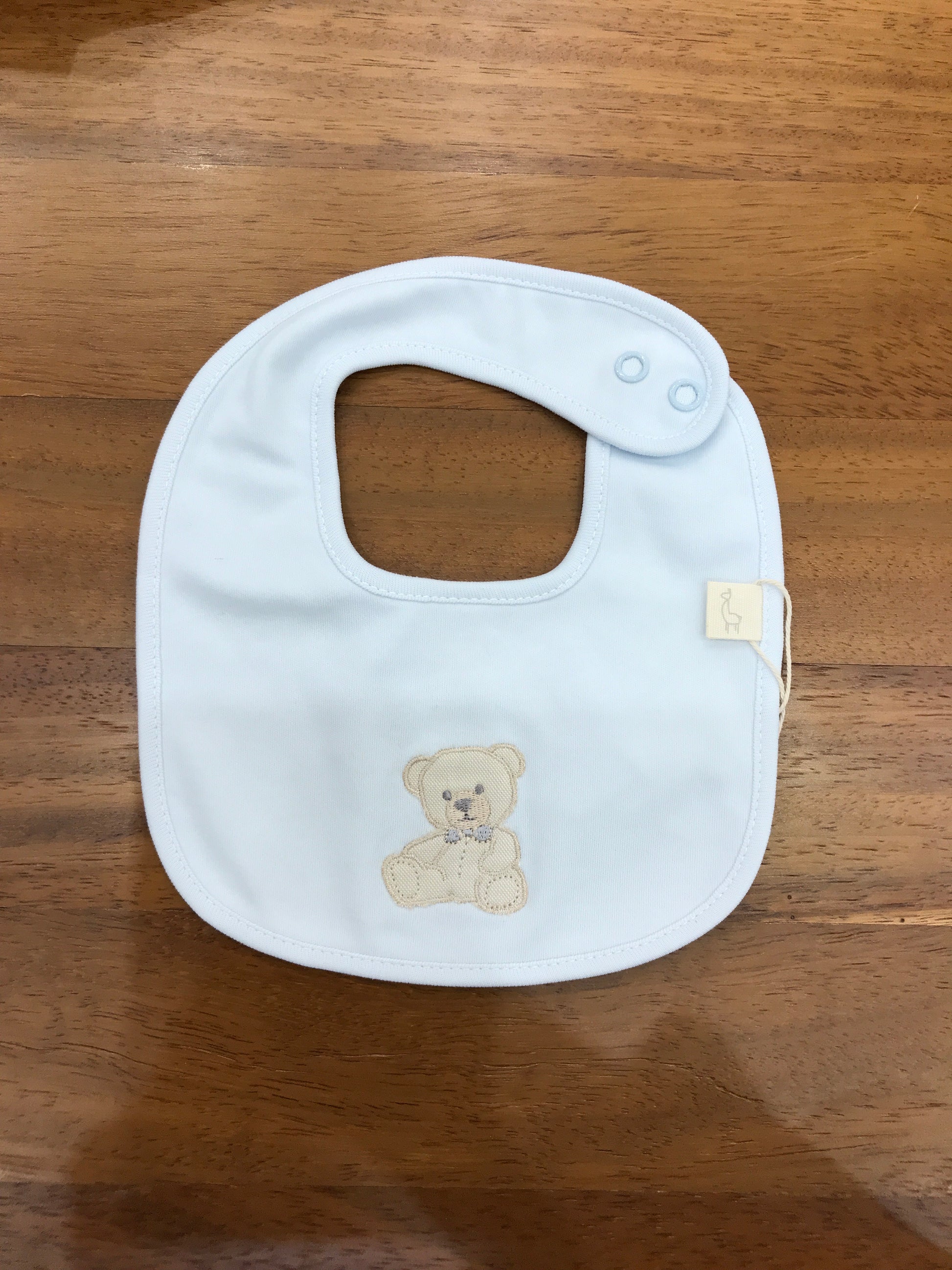Bavetta dotata di chiusura a bottoni e decorata con un motivo a orsetto.