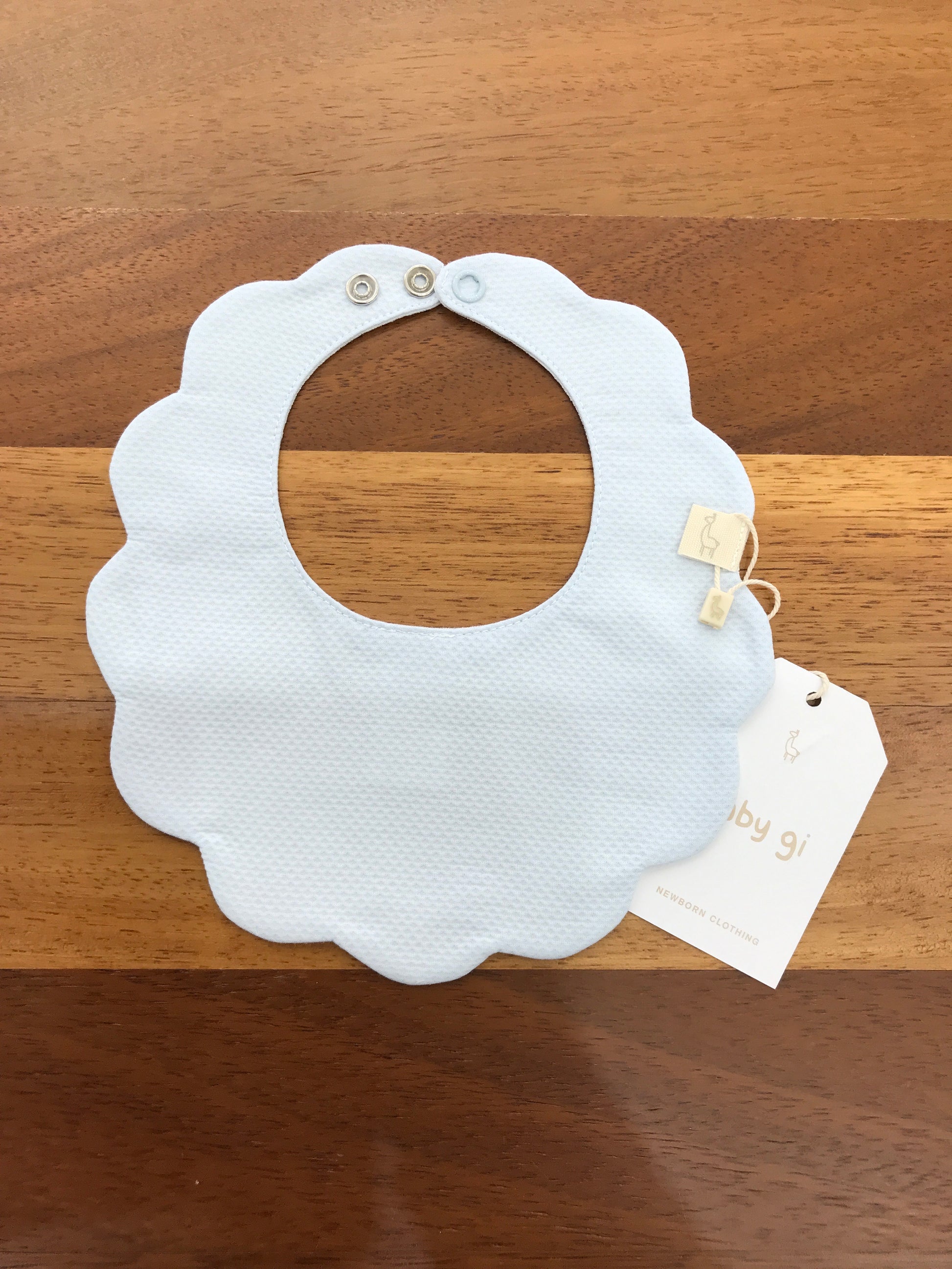 Elegante bavaglino in cotone trapuntato con profilo smerlato, disponibile nella delicata tonalità celeste. La chiusura a gancetti garantisce praticità e sicurezza durante l'uso, permettendo un'agevole regolazione in base alle esigenze del bambino. Un accessorio essenziale che combina funzionalità e design raffinato per i più piccoli.