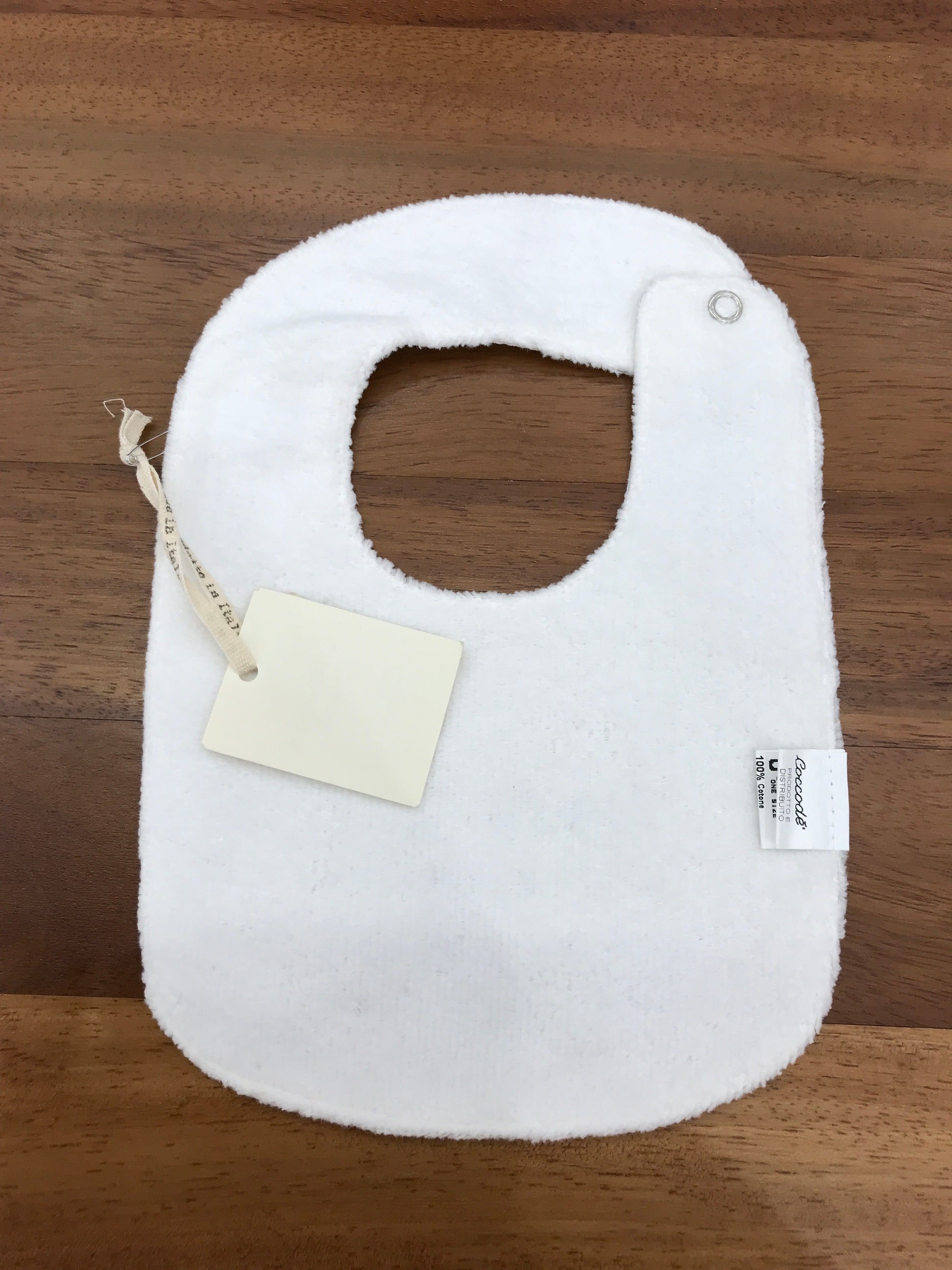 Bavaglino bianco con la scritta blu "questo non è un bavaglino, è la mia tavoletta da pittrice."