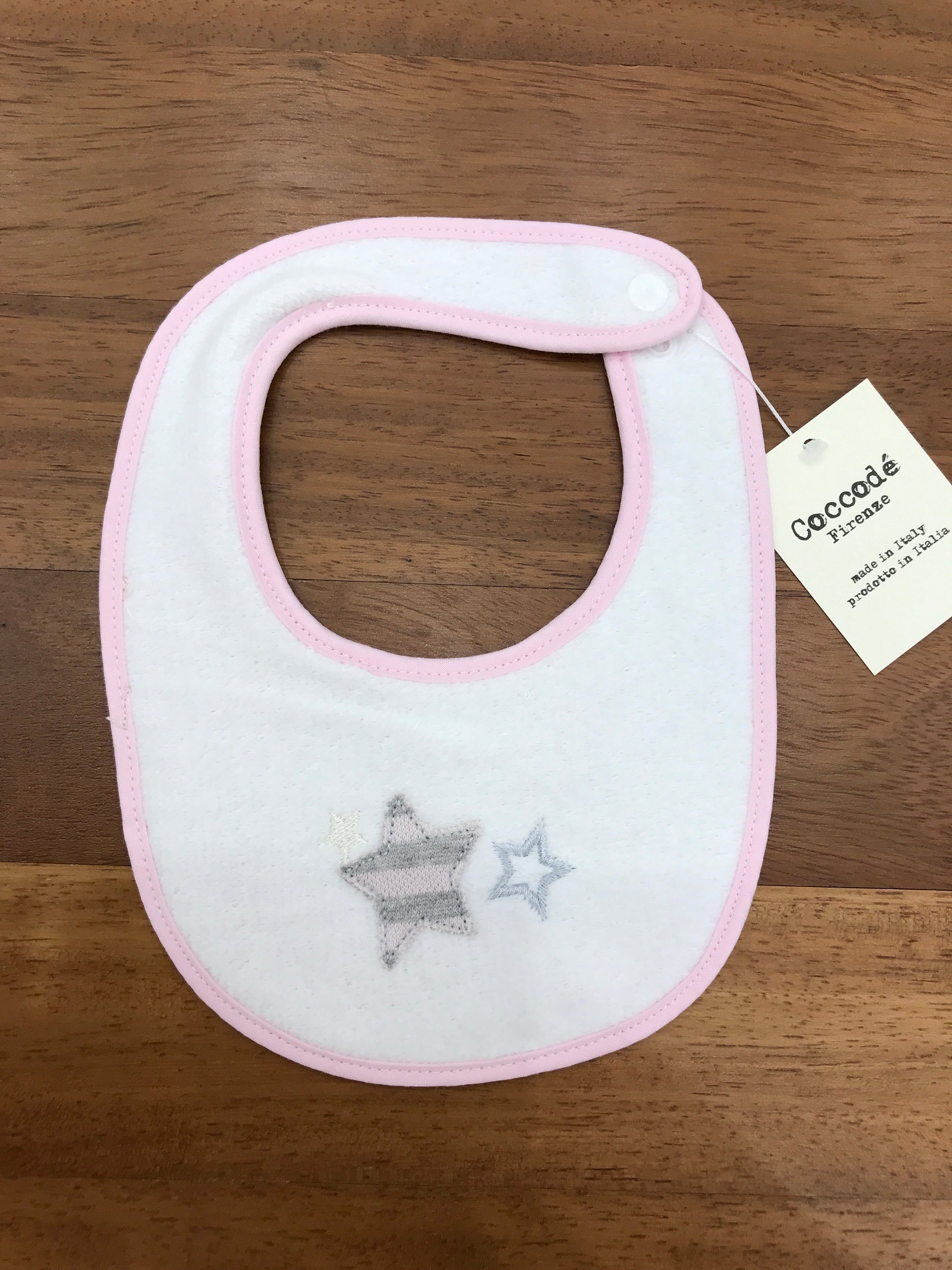 Bavaglino realizzato in spugna di alta qualità, caratterizzato da un bordino rosa che ne valorizza il design. Al centro sono ricamate due piccole stelle, conferendo un tocco delicato ed elegante. La parte posteriore presenta un motivo rosa con stelle grigie, aggiungendo un contrasto raffinato e un’estetica armoniosa. Questo articolo unisce funzionalità e stile, ideale per l’uso quotidiano.