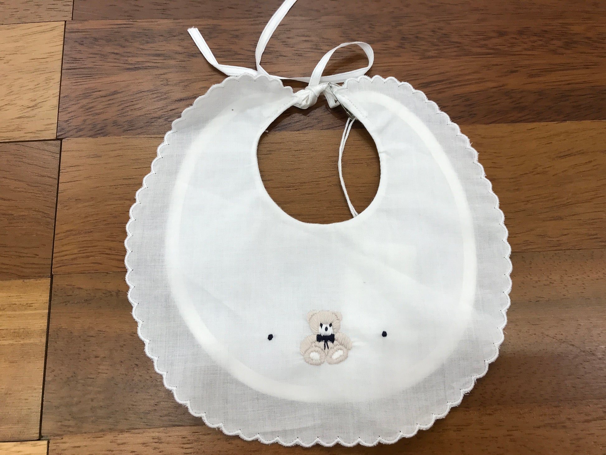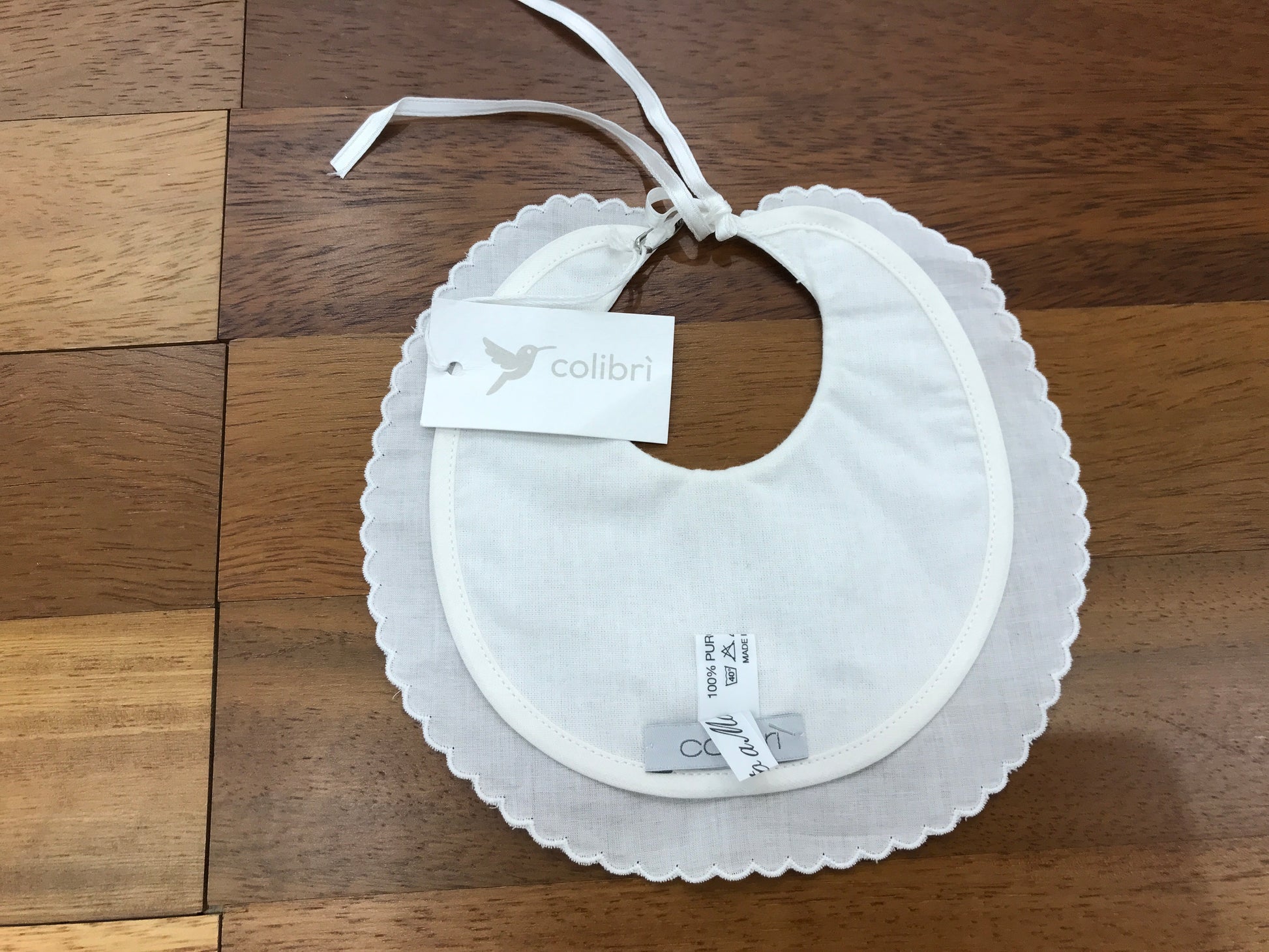 Questo bavaglino dalla forma rotonda si distingue per il raffinato smerlo che decora con delicatezza il bordo, conferendo un tocco di eleganza artigianale. Sul davanti è presente un piccolo orsetto ricamato con cura, arricchito da dettagli in blu scuro che ne esaltano la personalità senza appesantire il design. Ideale per un uso quotidiano, combina funzionalità e stile con un’attenzione particolare alla qualità delle finiture.