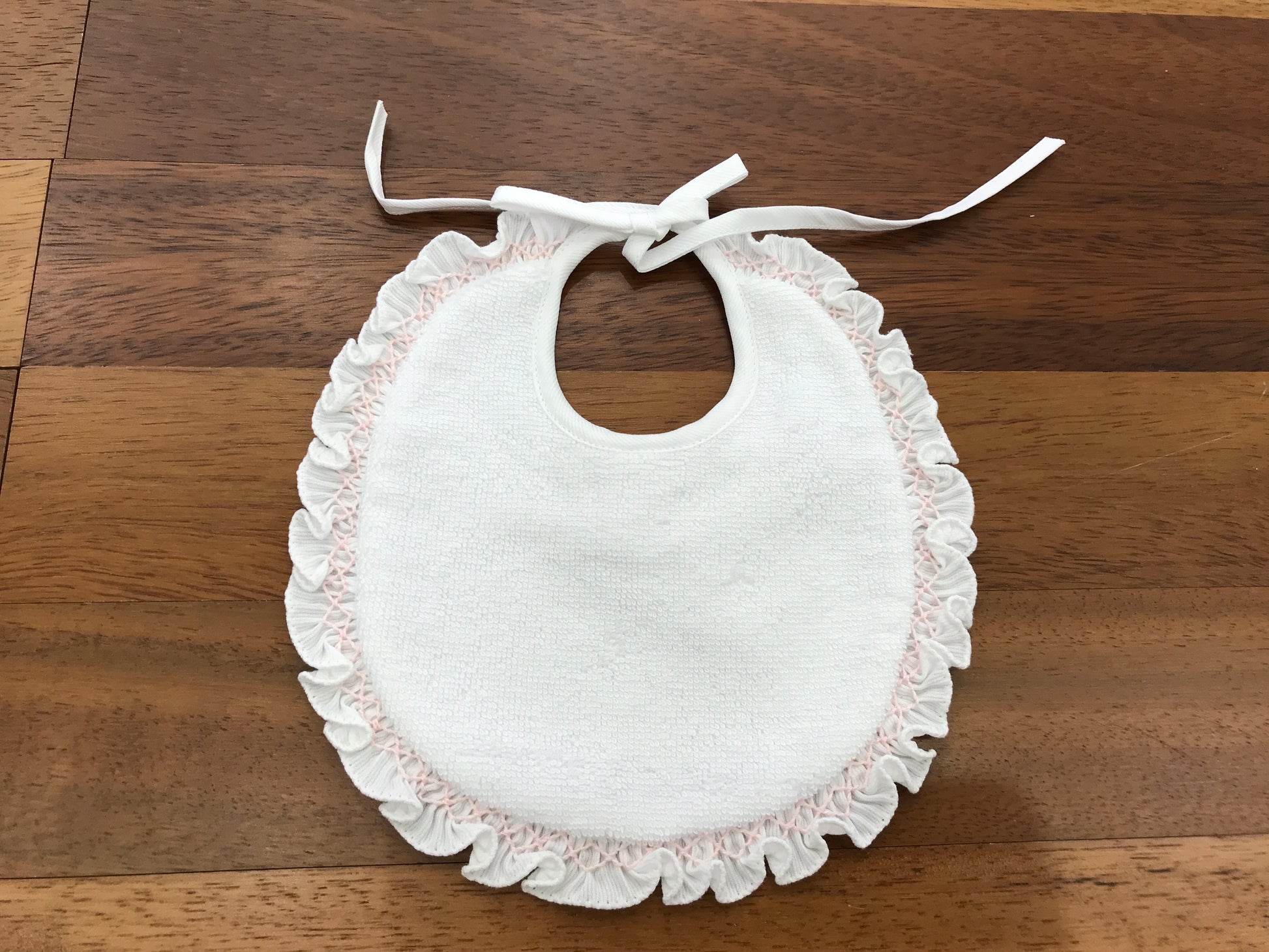 Il bavaglino in spugna presenta un elegante punto smock ricamato lungo i bordi, che conferisce un tocco di raffinata artigianalità. I pratici porta riccetti, posizionati costantemente attorno ai bordi, garantiscono che i bavaglini rimangano sempre in posizione, offrendo comodità e funzionalità durante l’utilizzo quotidiano. Questo design accurato unisce estetica e praticità per un accessorio indispensabile e di alta qualità.