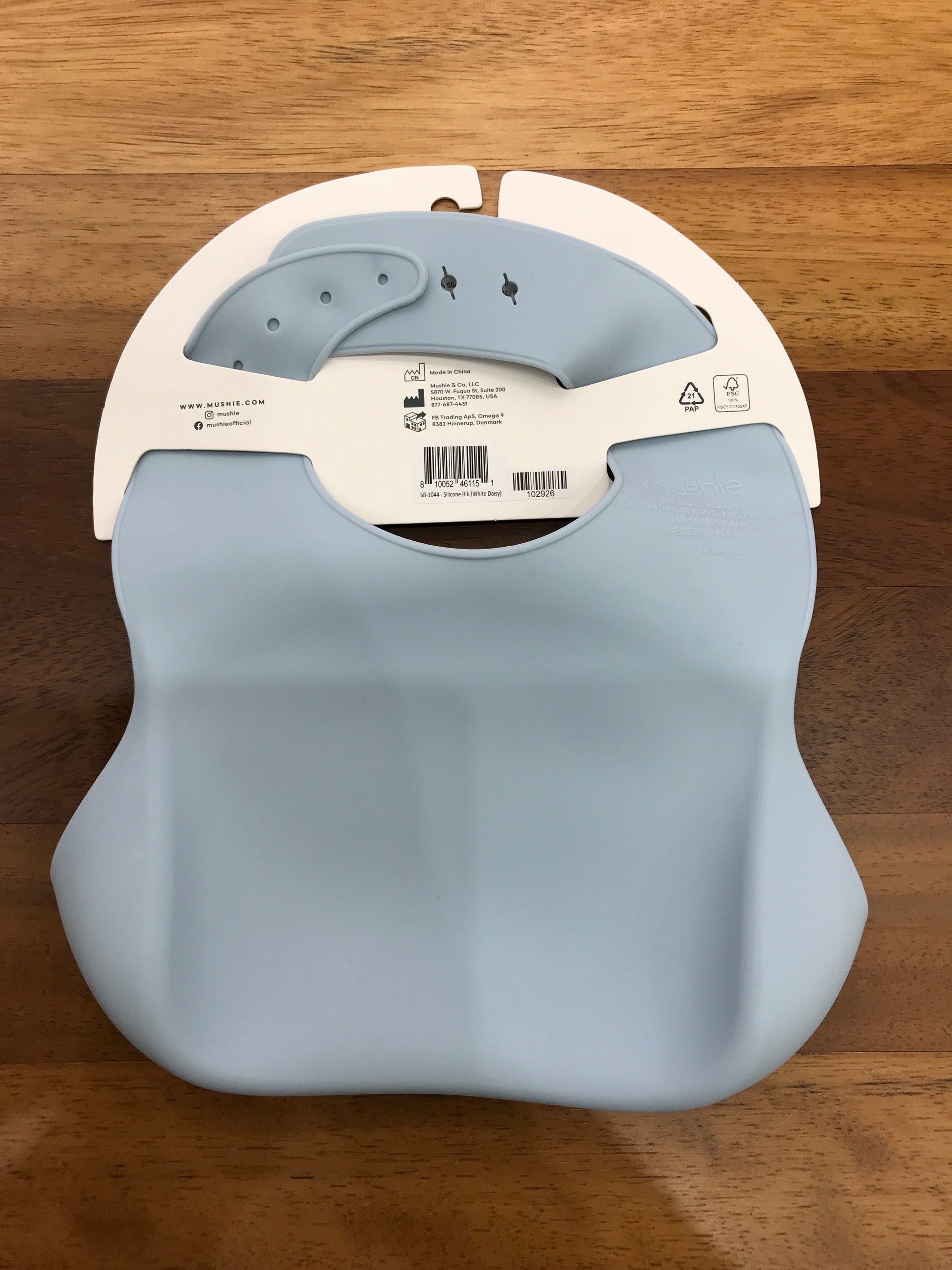 Questa bavetta in silicone presenta una delicata tonalità celeste ed è arricchita da un motivo di margherite bianche che si estende uniformemente su tutta la sua superficie, offrendo un design elegante e funzionale ideale per proteggere i vestiti del bambino durante i pasti.