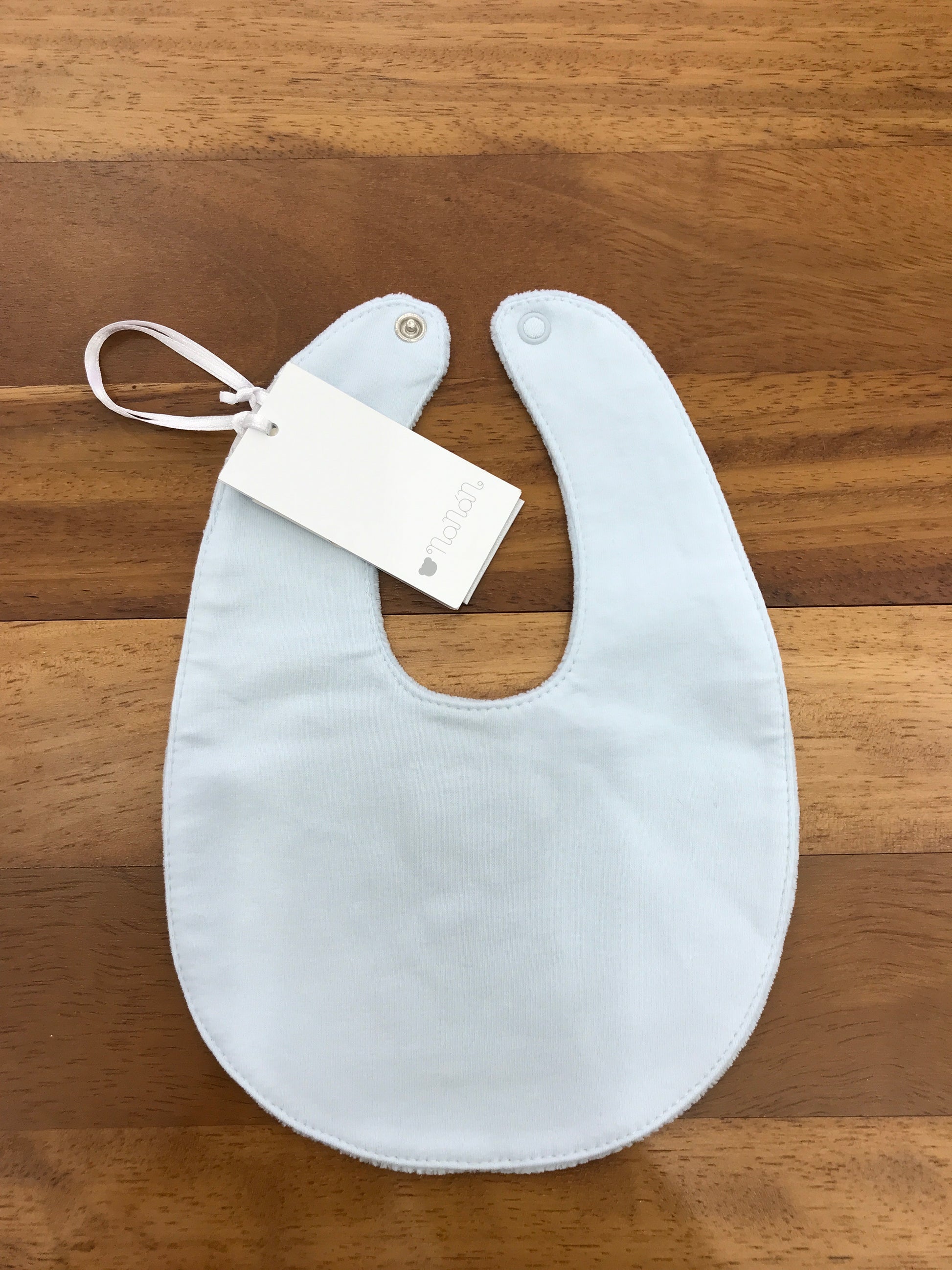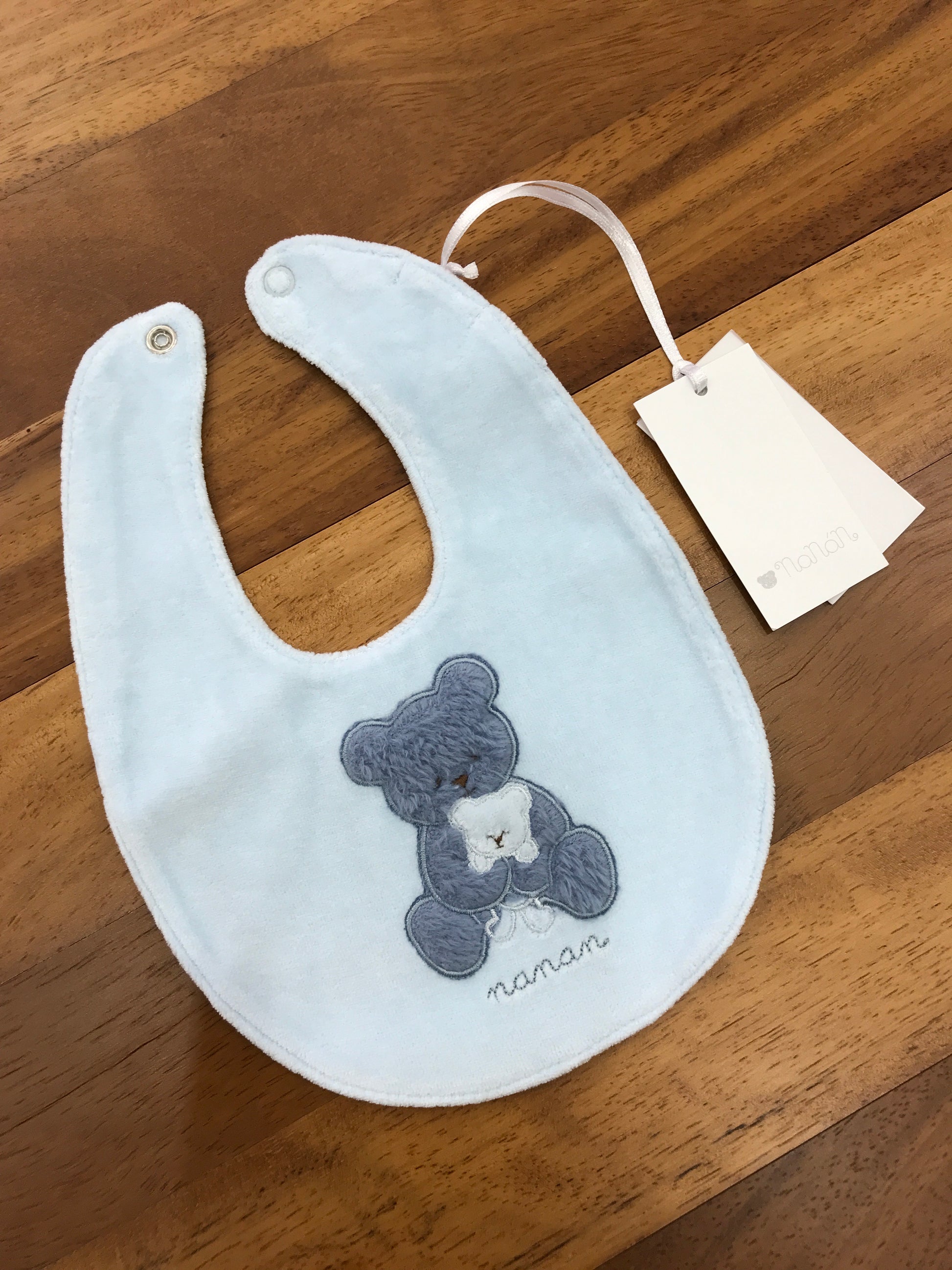Bavetta in ciniglia dotata di chiusura a bottoncini, decorata con un morbido orsetto peloso sul davanti.