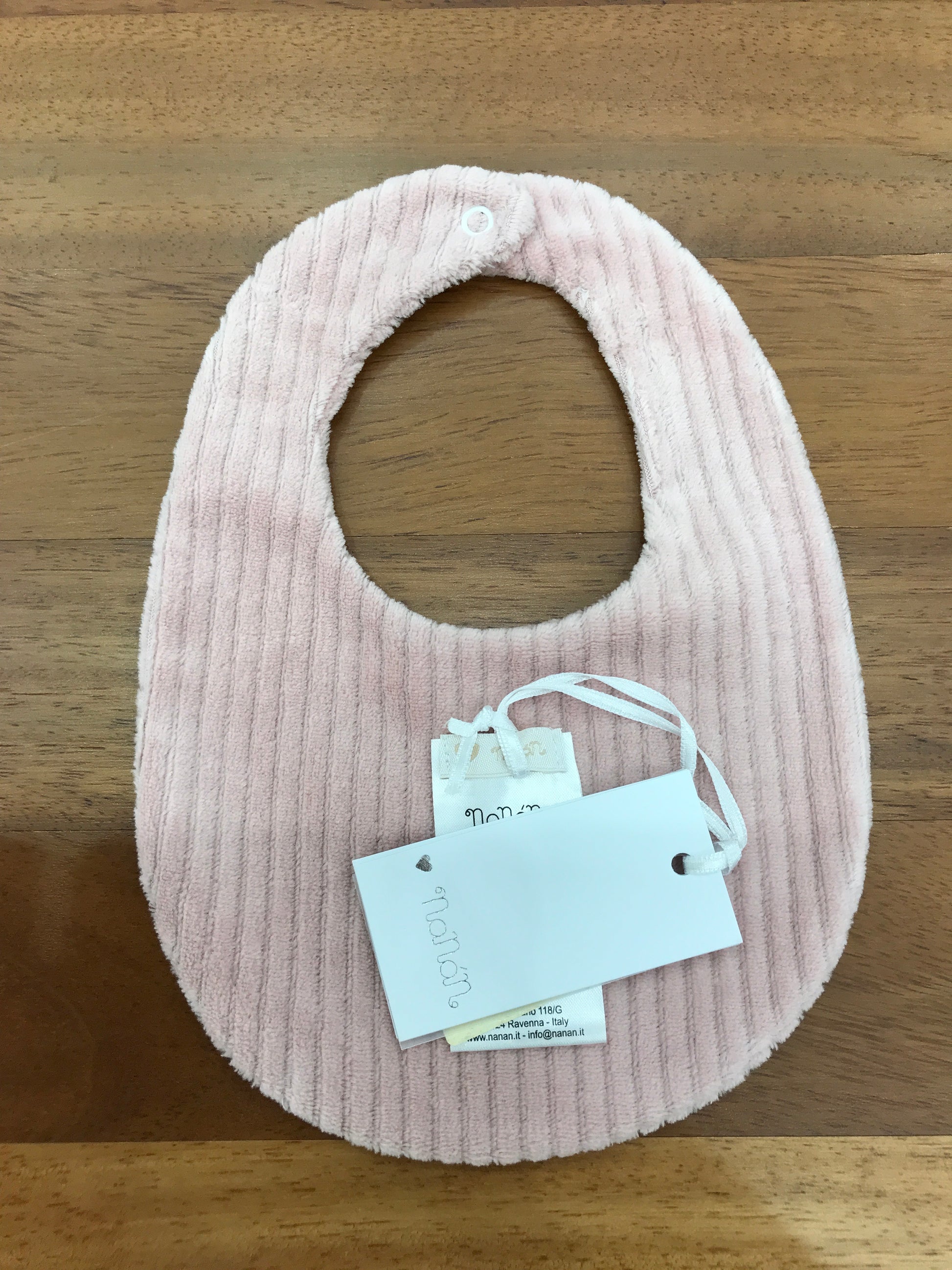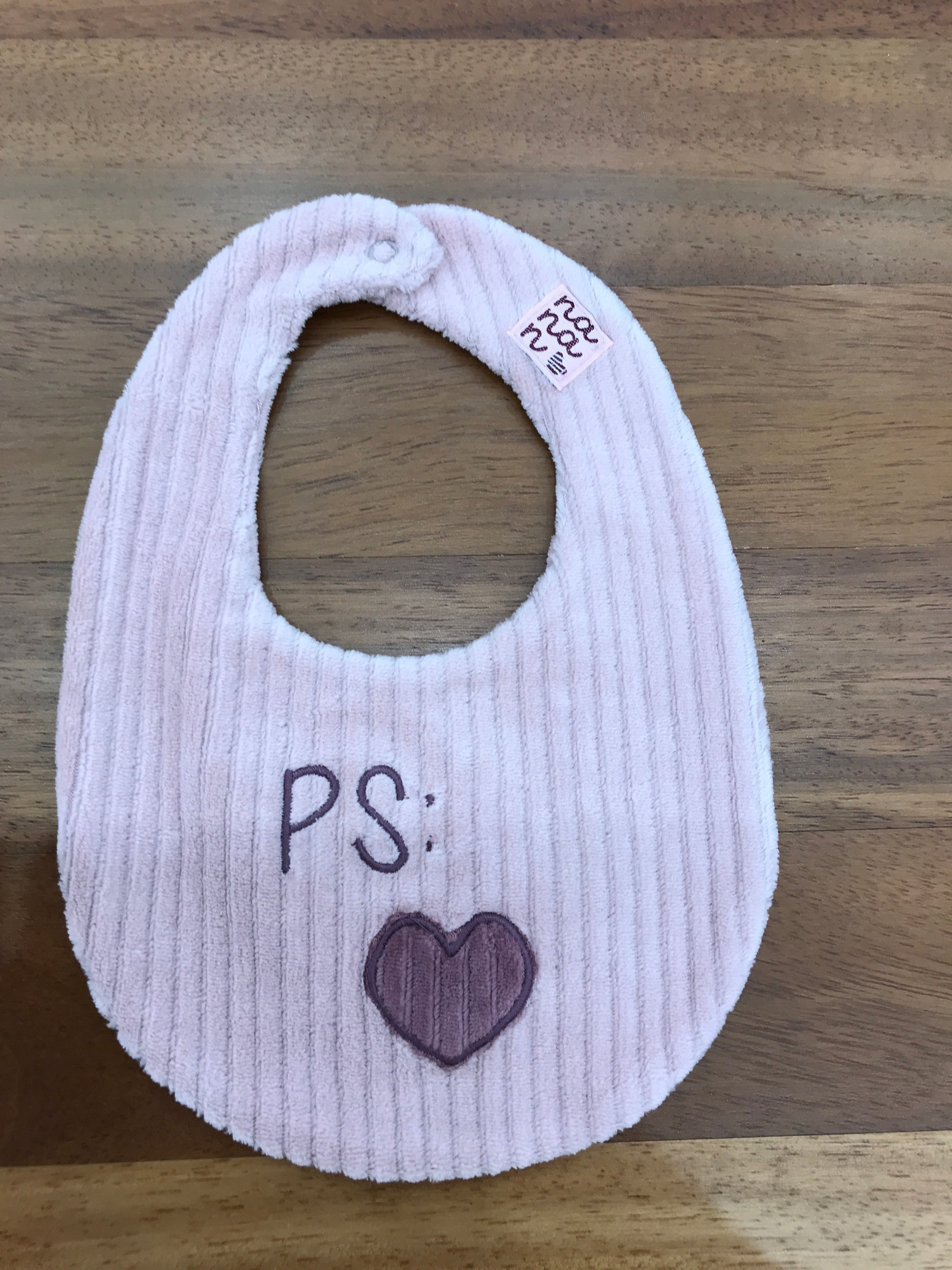 Questa bavetta in ciniglia rosa antico è arricchita da un cuore ricamato al centro sul davanti, un dettaglio raffinato che unisce funzionalità ed eleganza per i più piccoli.