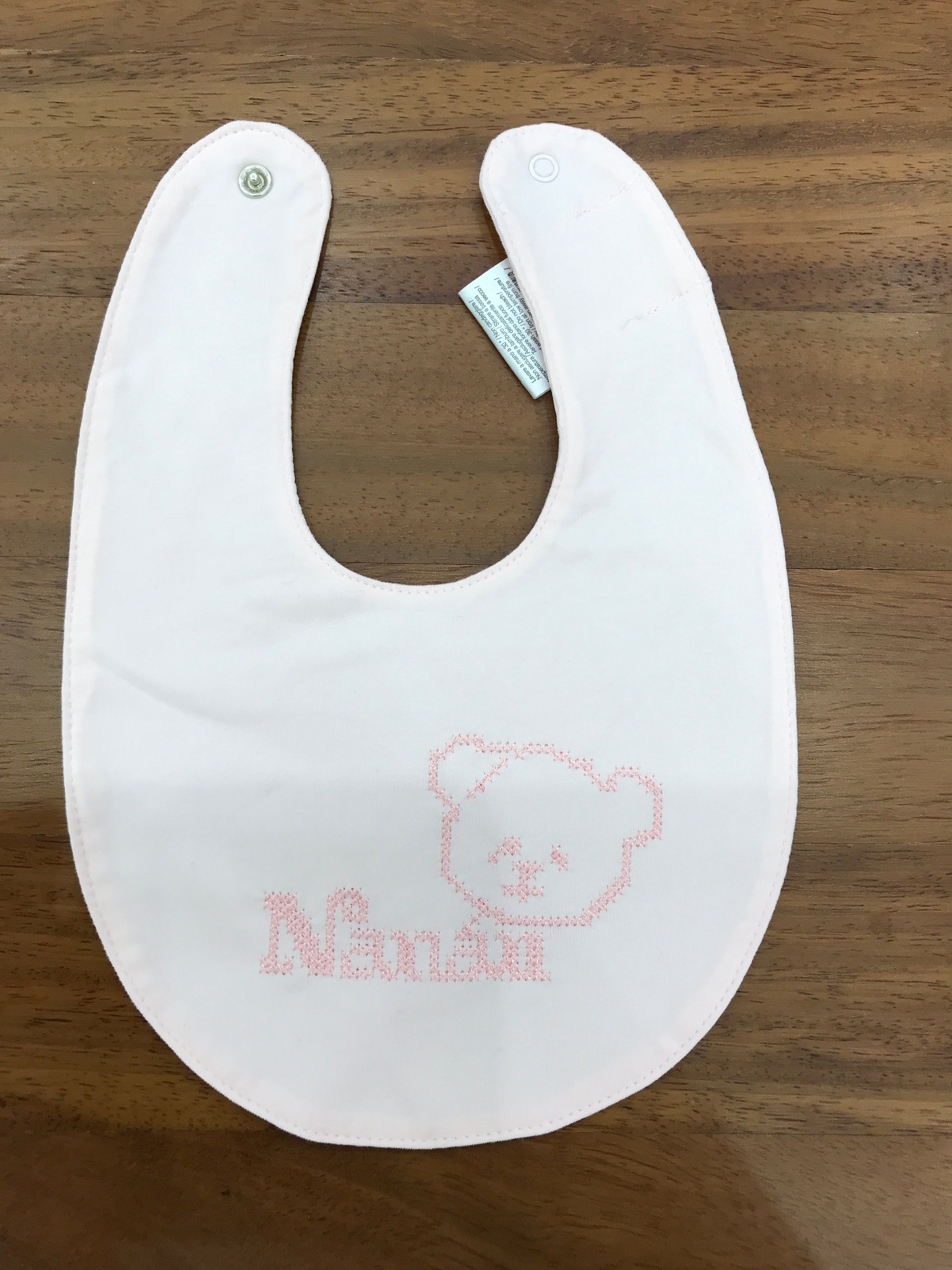 Realizzato in morbido cotone rosa, questo bavaglino è arricchito da un’elegante decorazione ricamata: un dolce orsetto accompagnato dalla scritta “Nanan”, anch’essa finemente ricamata. Un accessorio funzionale e raffinato, ideale per garantire comfort e stile durante i pasti dei più piccoli.