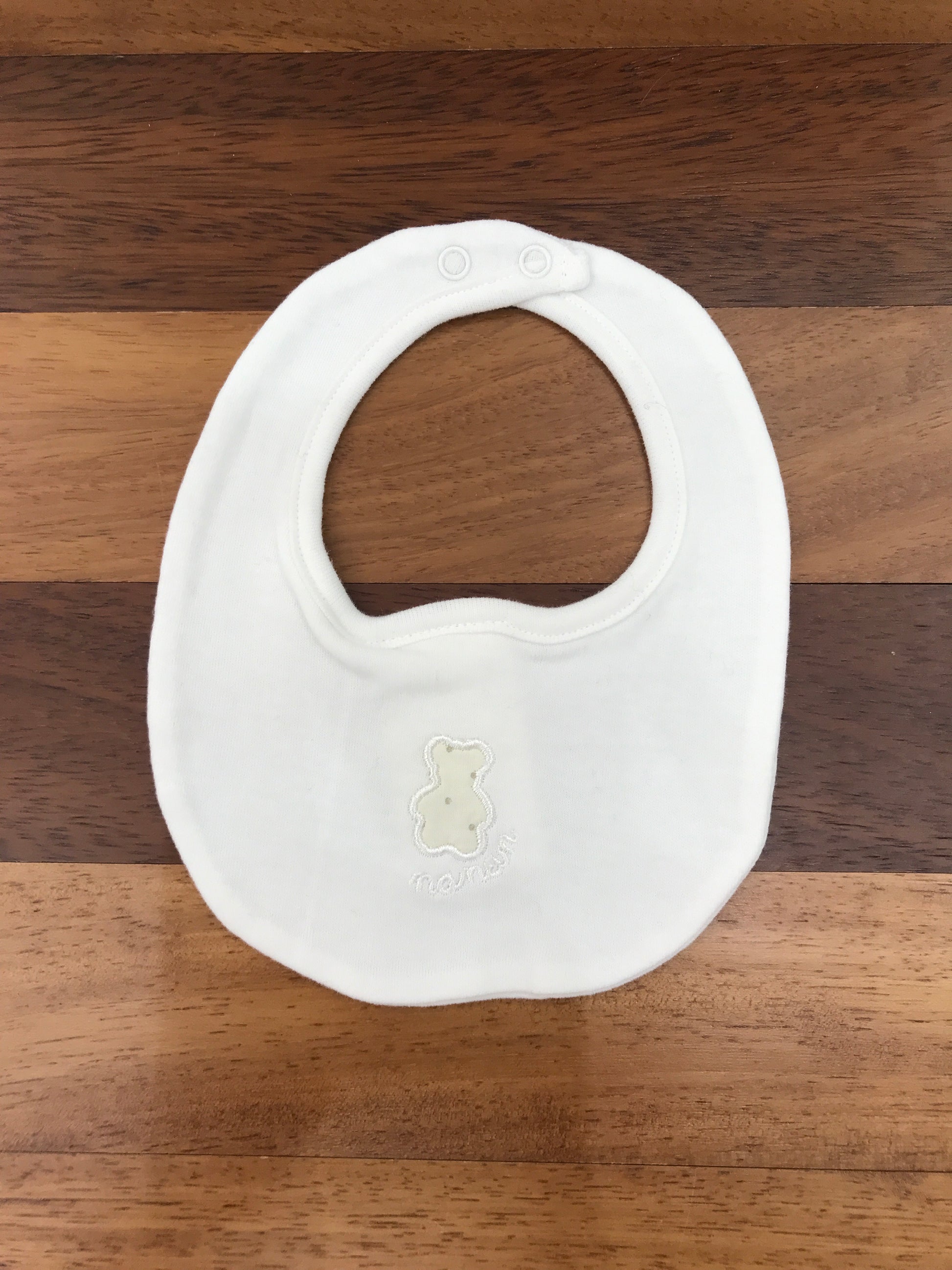 Elegante bavaglino in cotone dal delicato colore panna, arricchito da un raffinato ricamo sul petto. Un accessorio essenziale che combina praticità e stile, perfetto per proteggere gli abiti del tuo bambino mantenendo un'estetica sofisticata e curata.
