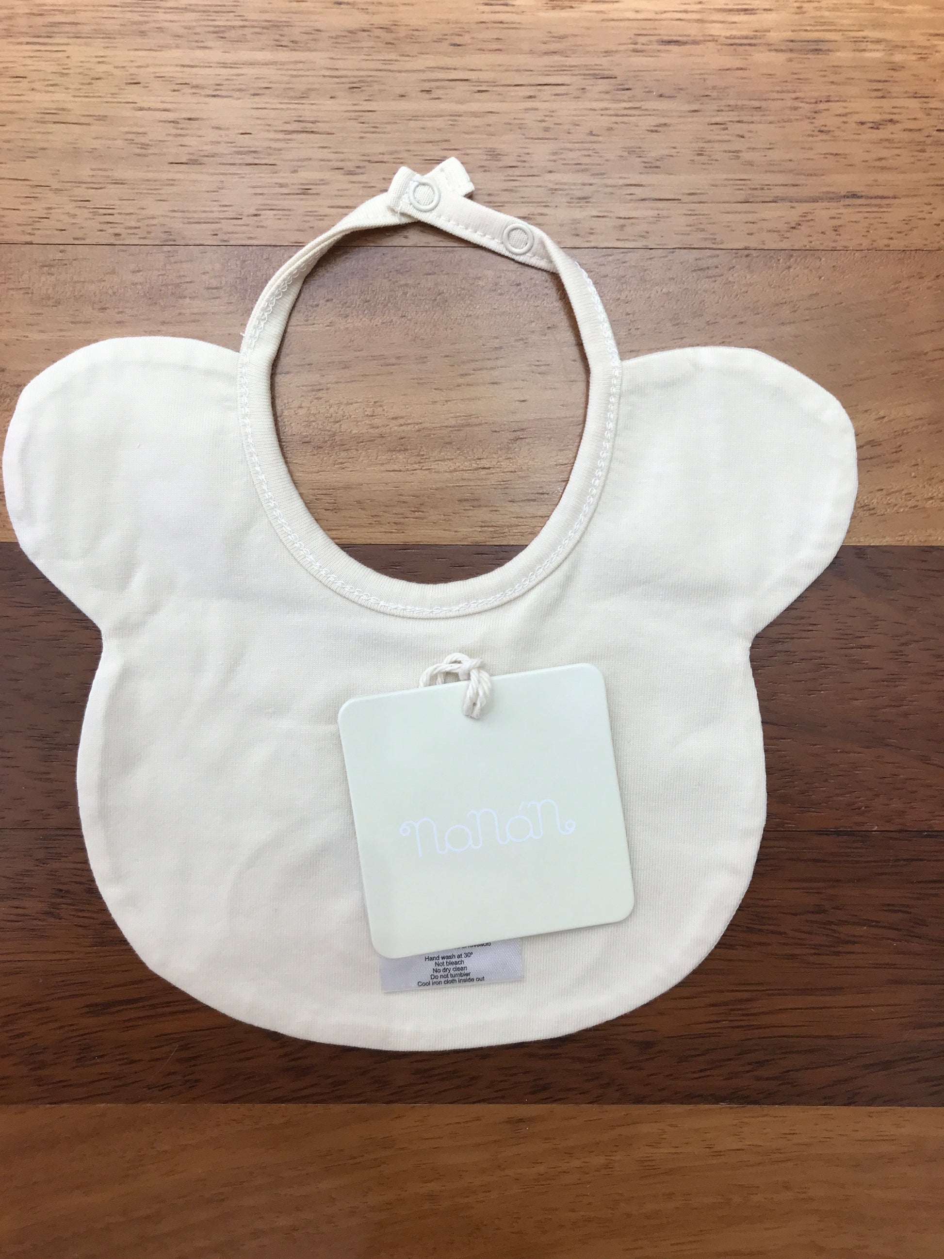 Bavaglino realizzato in puro cotone, caratterizzato da una tonalità neutra e versatile. Il design particolare a forma di orsetto lo rende un accessorio affascinante e pratico per i più piccoli, combinando funzionalità e un tocco di dolcezza nel quotidiano.