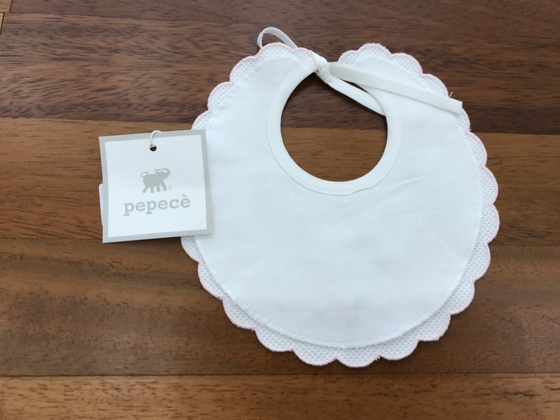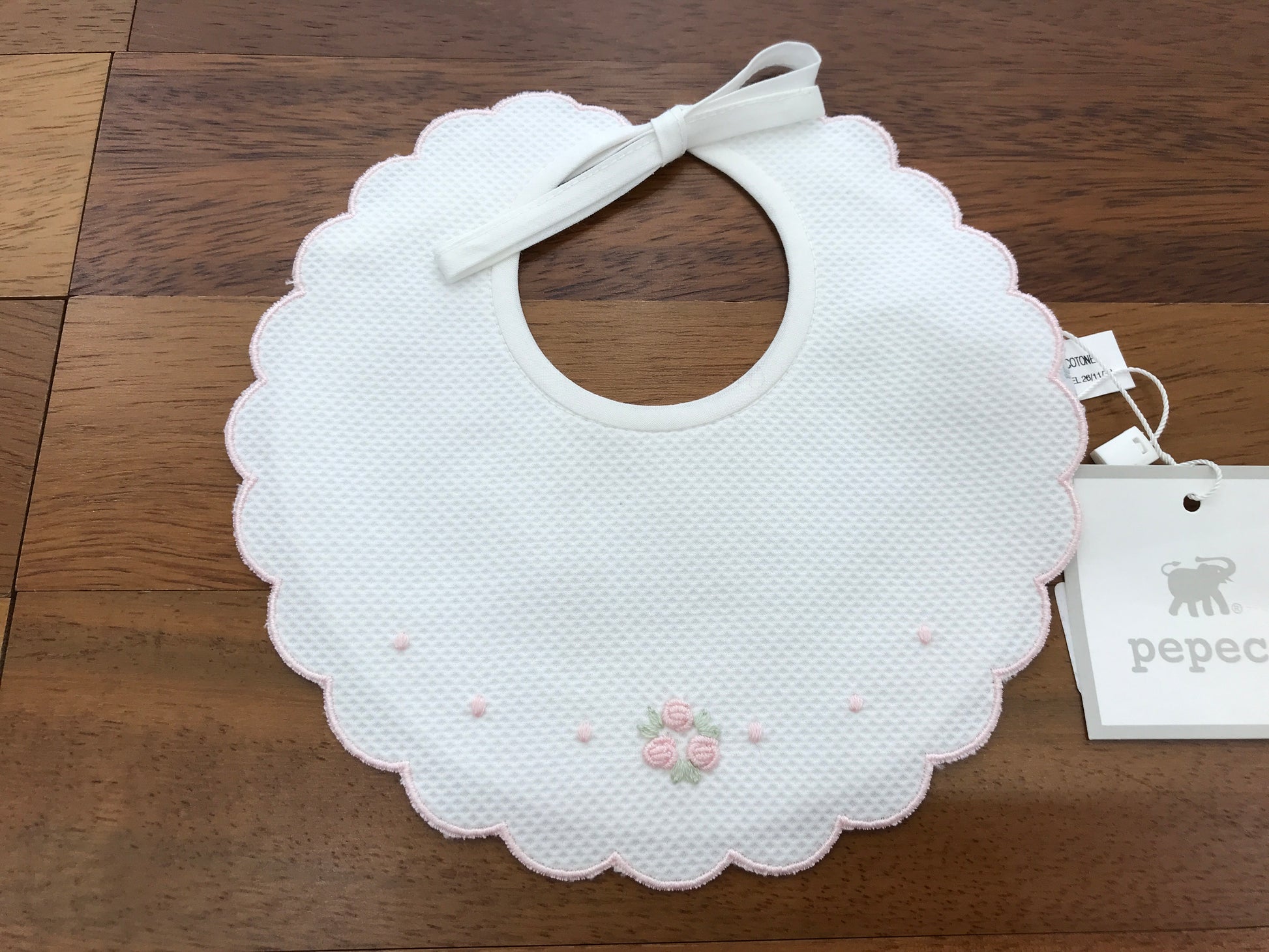 Questo bavaglino color bianco è caratterizzato da un elegante bordo smerlato rosa che ne valorizza la delicata fattura. Al centro è decorato con pois ricamati in tono rosa, completati da tre rose anch’esse ricamate, che conferiscono un tocco raffinato e dettagliato, perfetto per chi cerca un accessorio funzionale ma dallo stile ricercato.