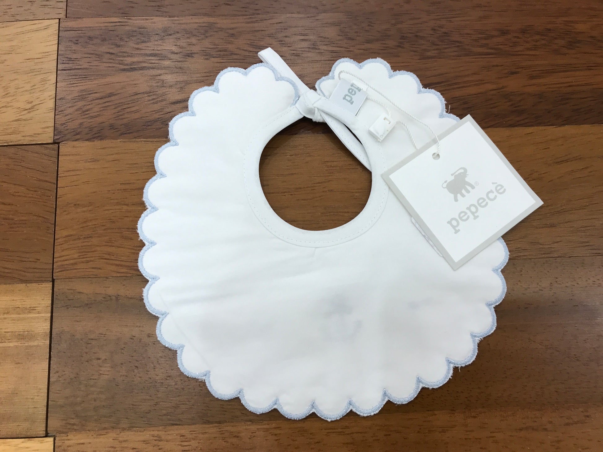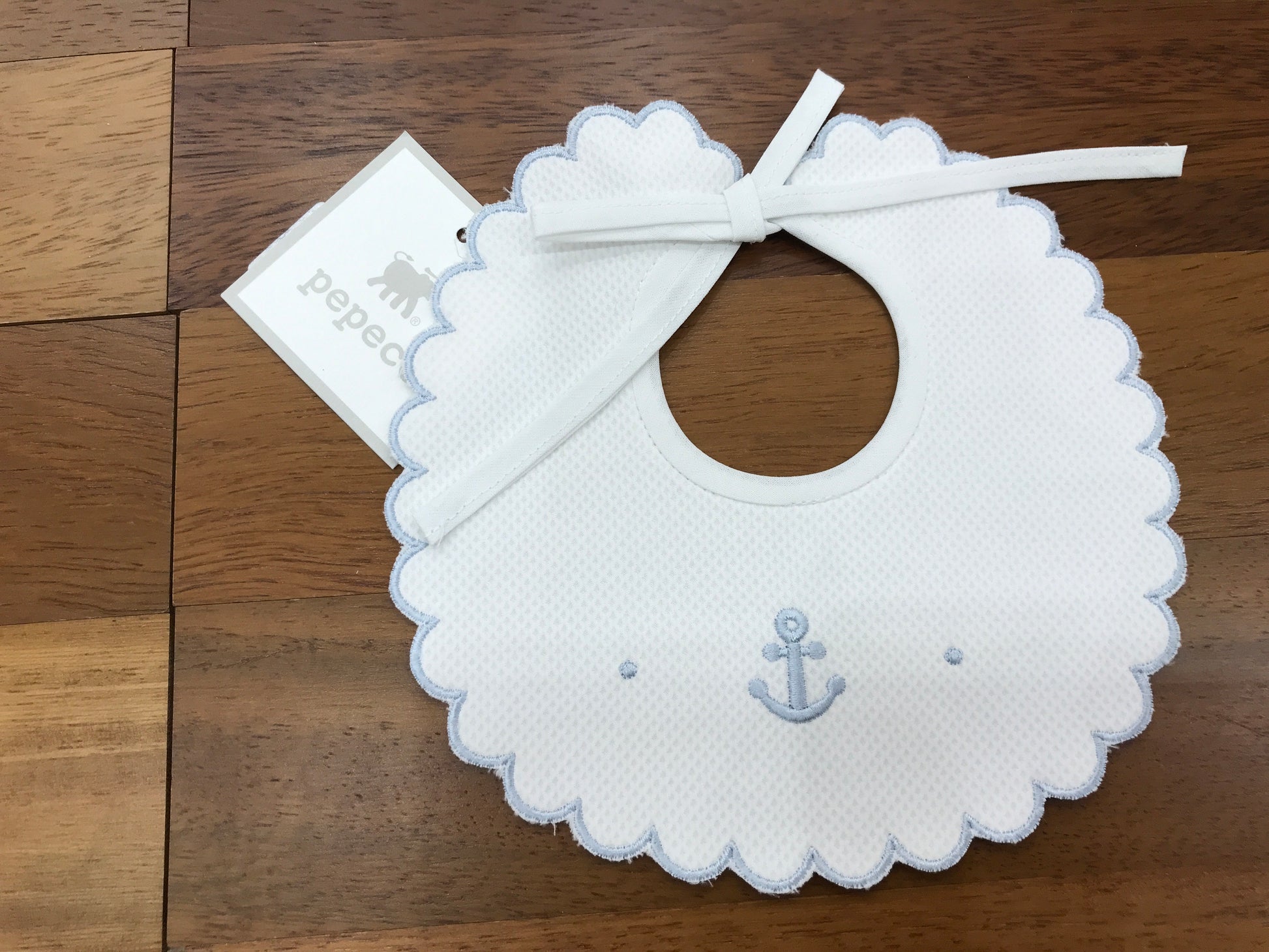 Questo bavaglino presenta una forma rotonda con un elegante bordo smerlato in colore celeste che contrasta delicatamente con la base bianca. Al centro della bavetta è ricamata un’ancora in tonalità celeste, simbolo di stile e tenerezza, accompagnata da piccoli pois celesti che aggiungono un tocco di dettaglio raffinato e armonioso. La combinazione di colori e motivi rende questo accessorio un elemento distintivo e funzionale per i più piccoli, unendo praticità a un design curato e ricercato.