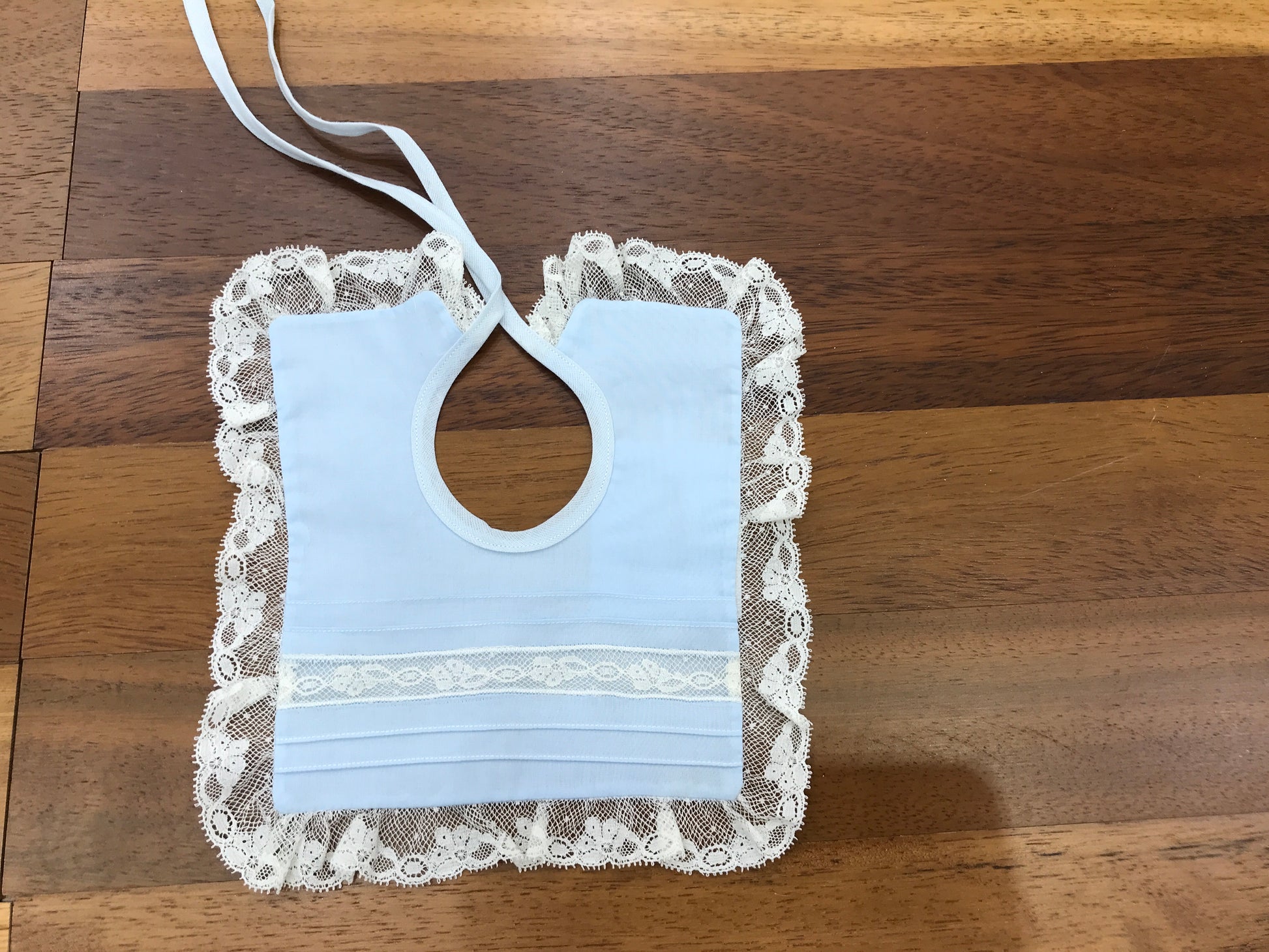 Questo bavaglino quadrato, realizzato in pregiata battista di cotone, è impreziosito da un delicato merletto che ne contorna i bordi, donando eleganza e raffinatezza. Sul davanti presenta eleganti pieghe arricchite da un merletto applicato con cura, che aggiunge dettaglio e stile al capo. La chiusura sul retro è garantita da un pratico laccetto, assicurando una vestibilità comoda e regolabile. Ideale per completare con classe ogni outfit, combina funzionalità e design in un accessorio distintivo.