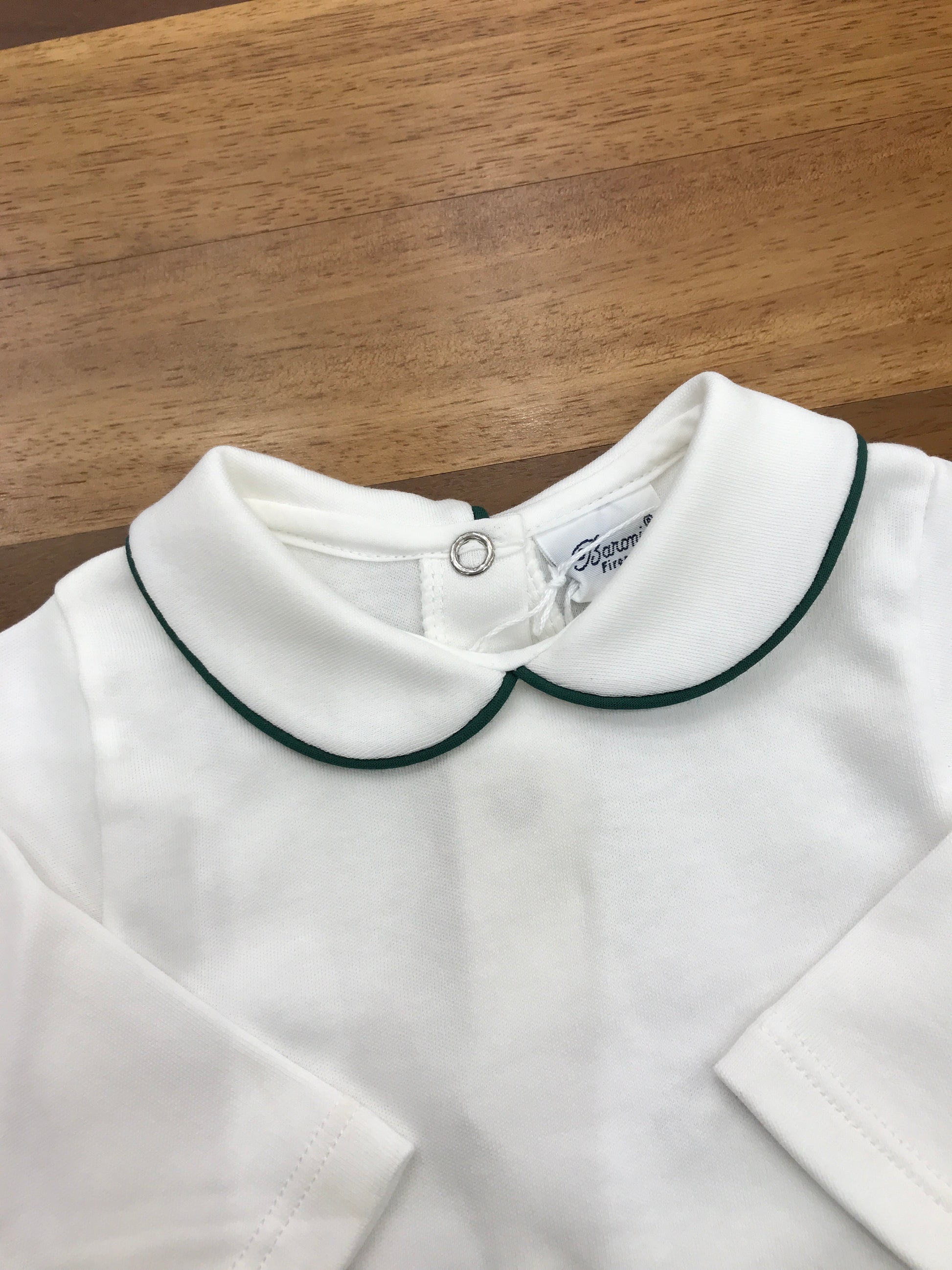 Elegante body in tonalità caldo ottone abbinato al bianco, caratterizzato da un raffinato colletto con profilo verde. Un capo versatile che unisce sofisticatezza e praticità, perfetto per chi ricerca dettagli curati e una silhouette impeccabile. Ideale per occasioni speciali o per elevare lo stile quotidiano con un tocco di classe.