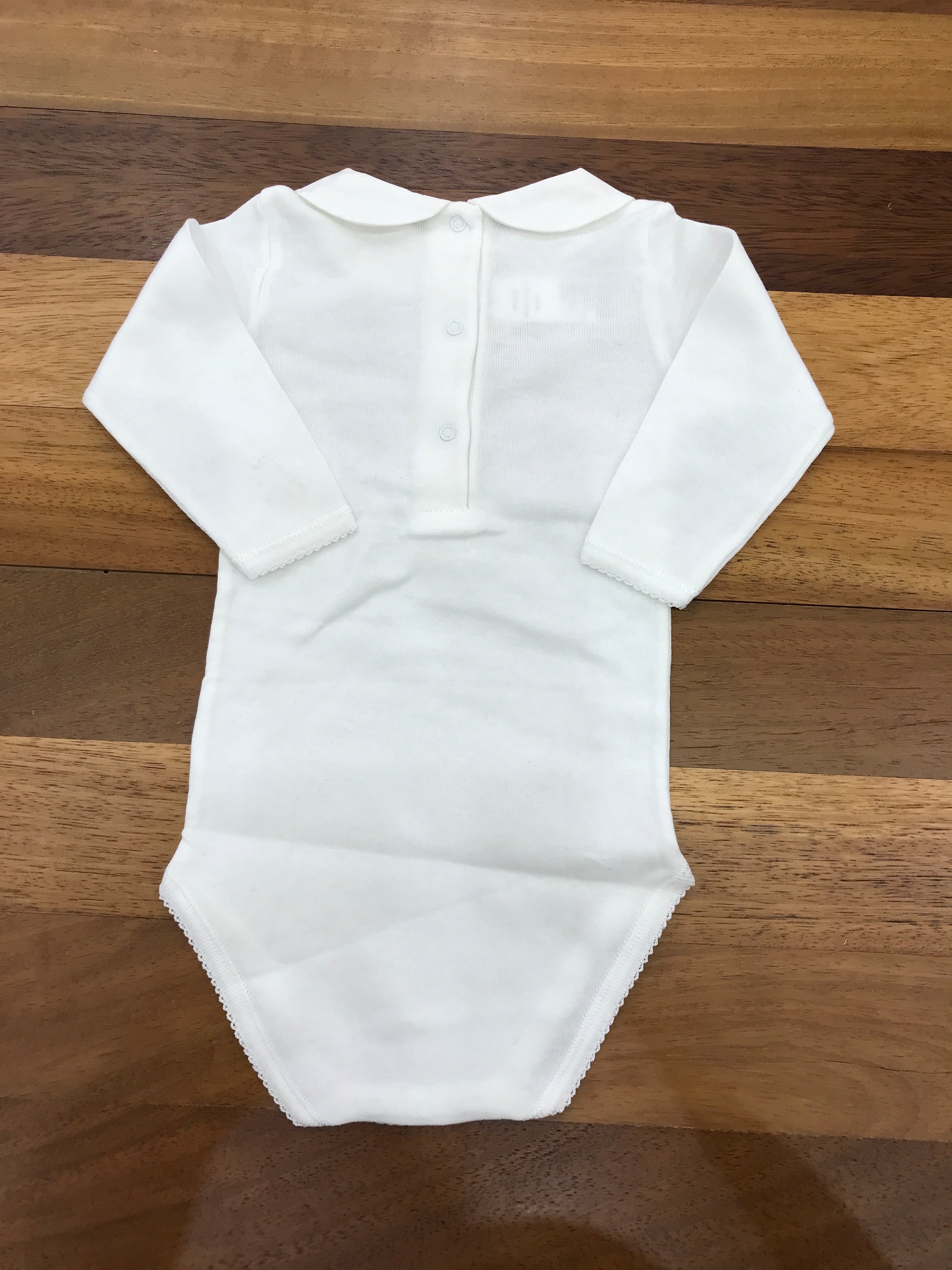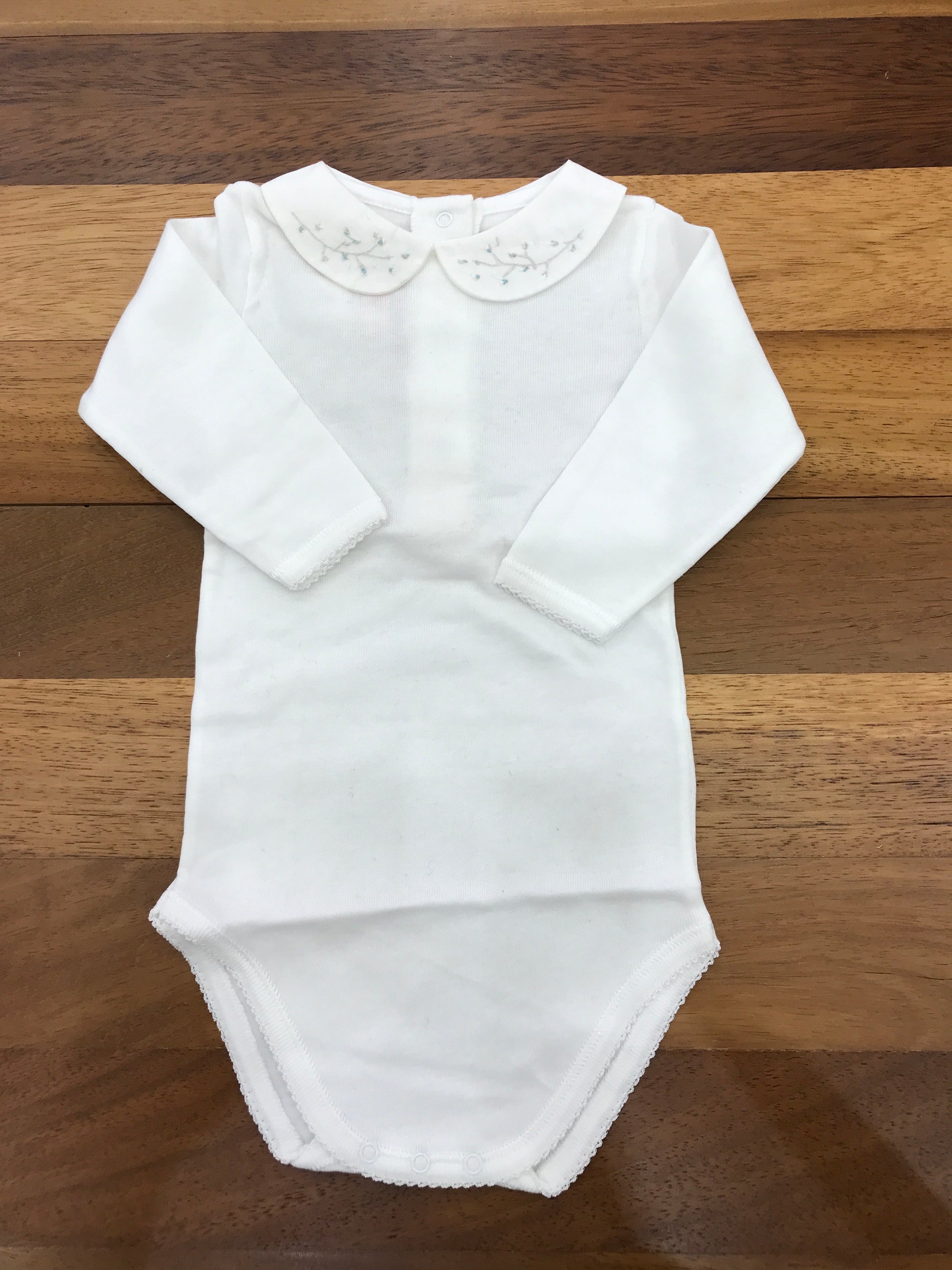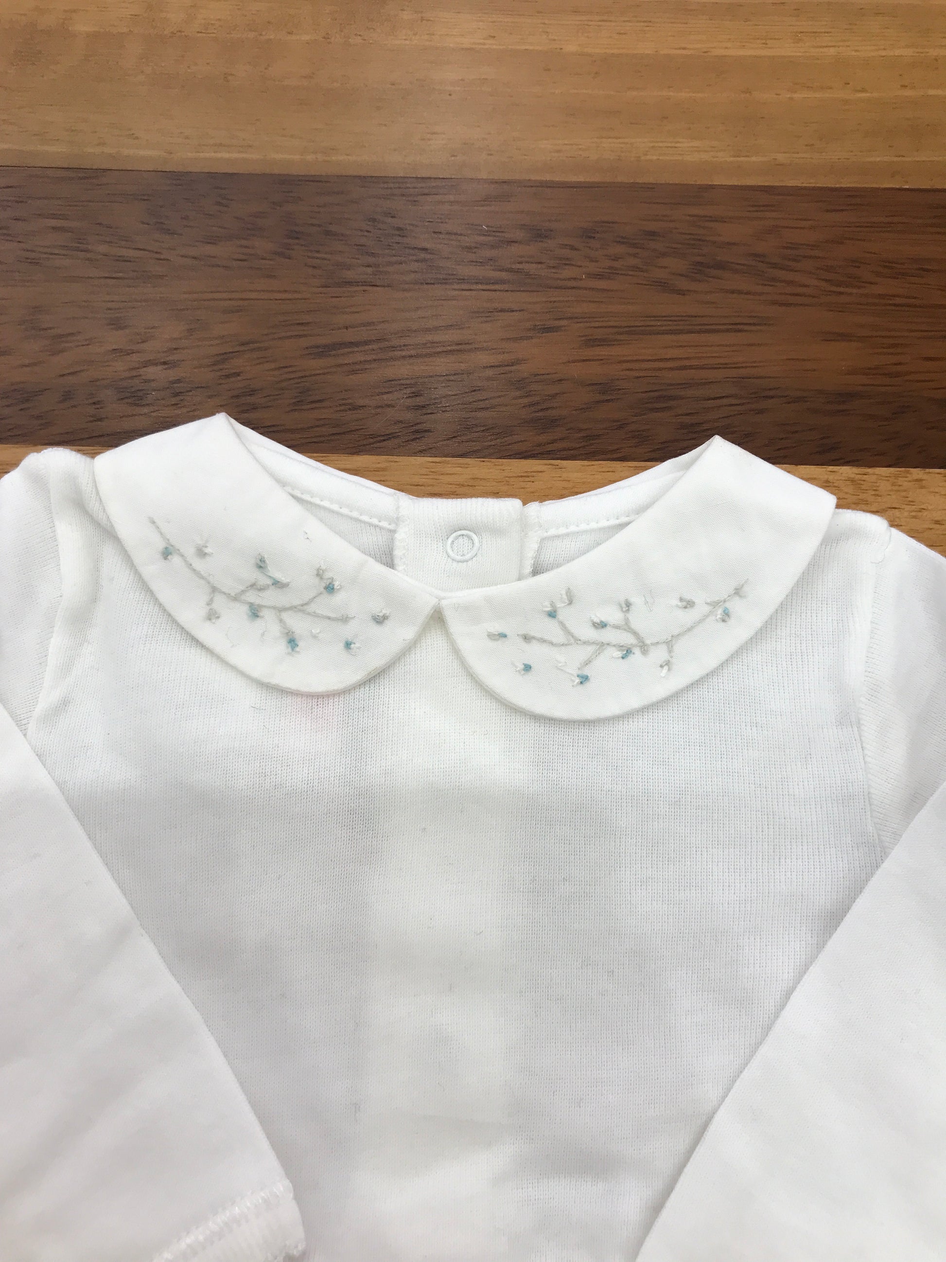Body realizzato in caldo cotone bianco, arricchito da delicati ricami lungo il colletto.
