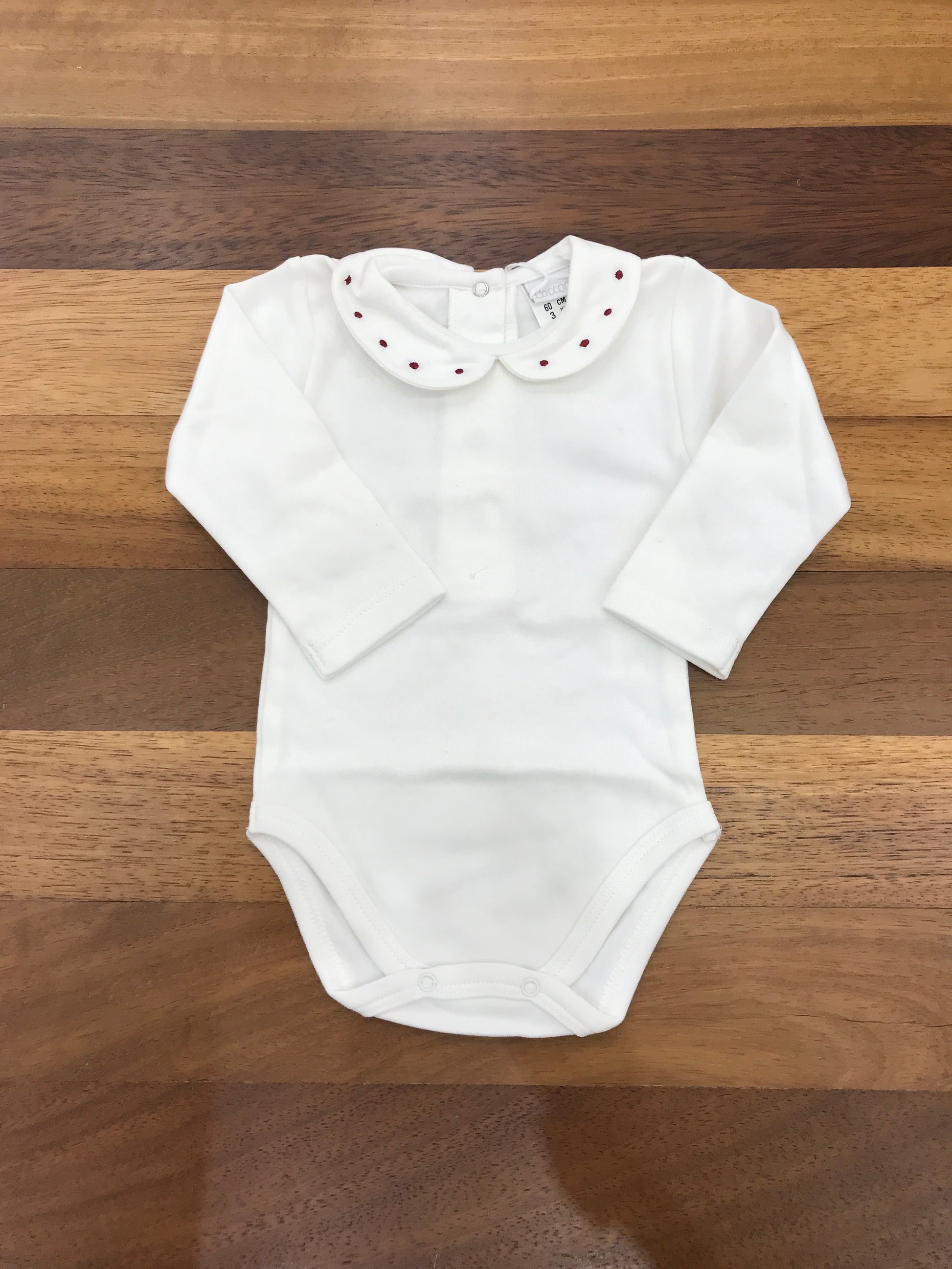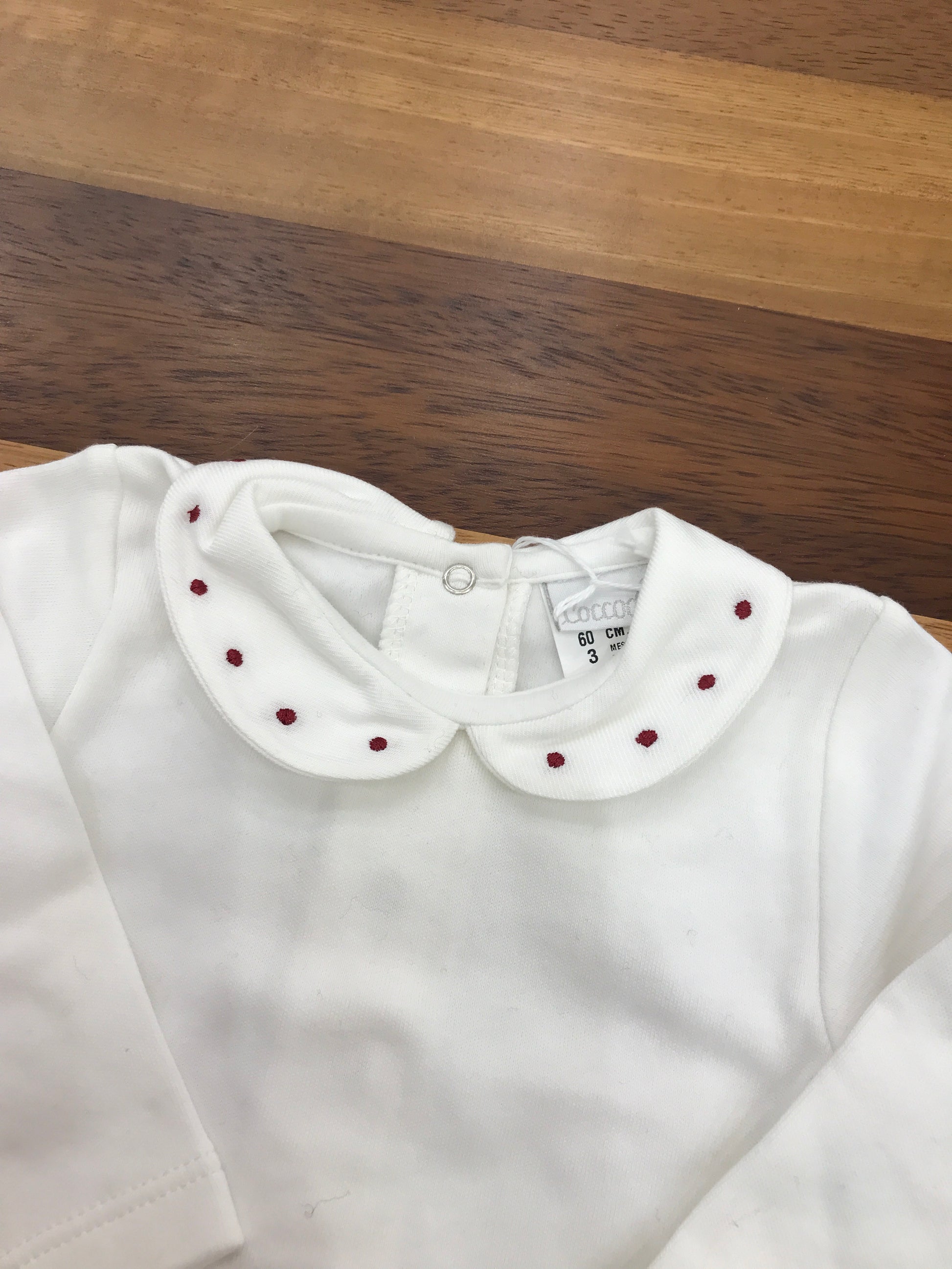 Body in caldo cotone a manica lunga, caratterizzato da un colletto impreziosito da pois rossi.
