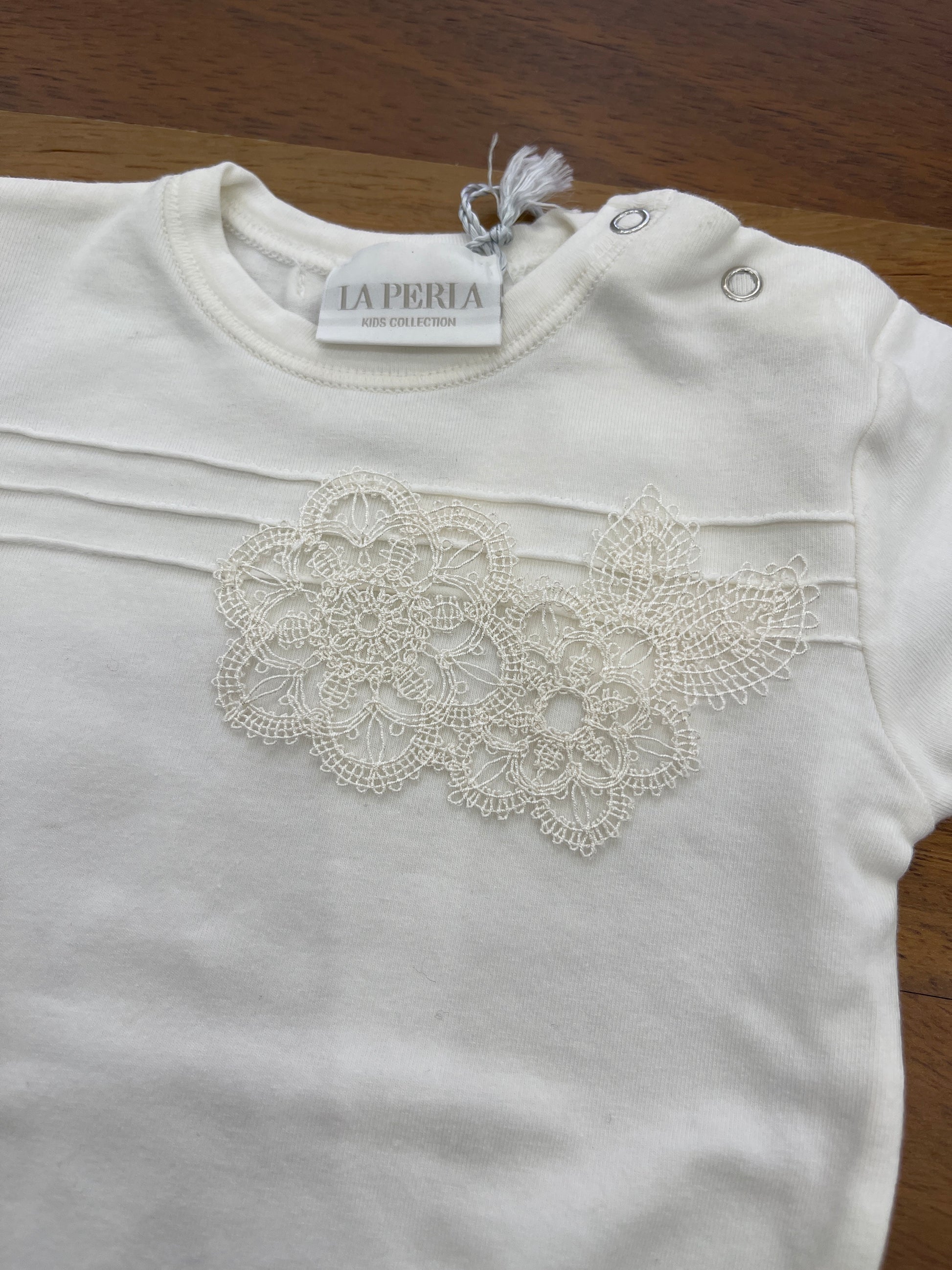 Questo body La Perla è perfetto per esaltare la tua bellezza. La mezza manica con pieghe dona un tocco elegante, mentre il merletto rintagliato a forma di fiore aggiunge un tocco romantico. Indossalo per un look sofisticato e femminile.