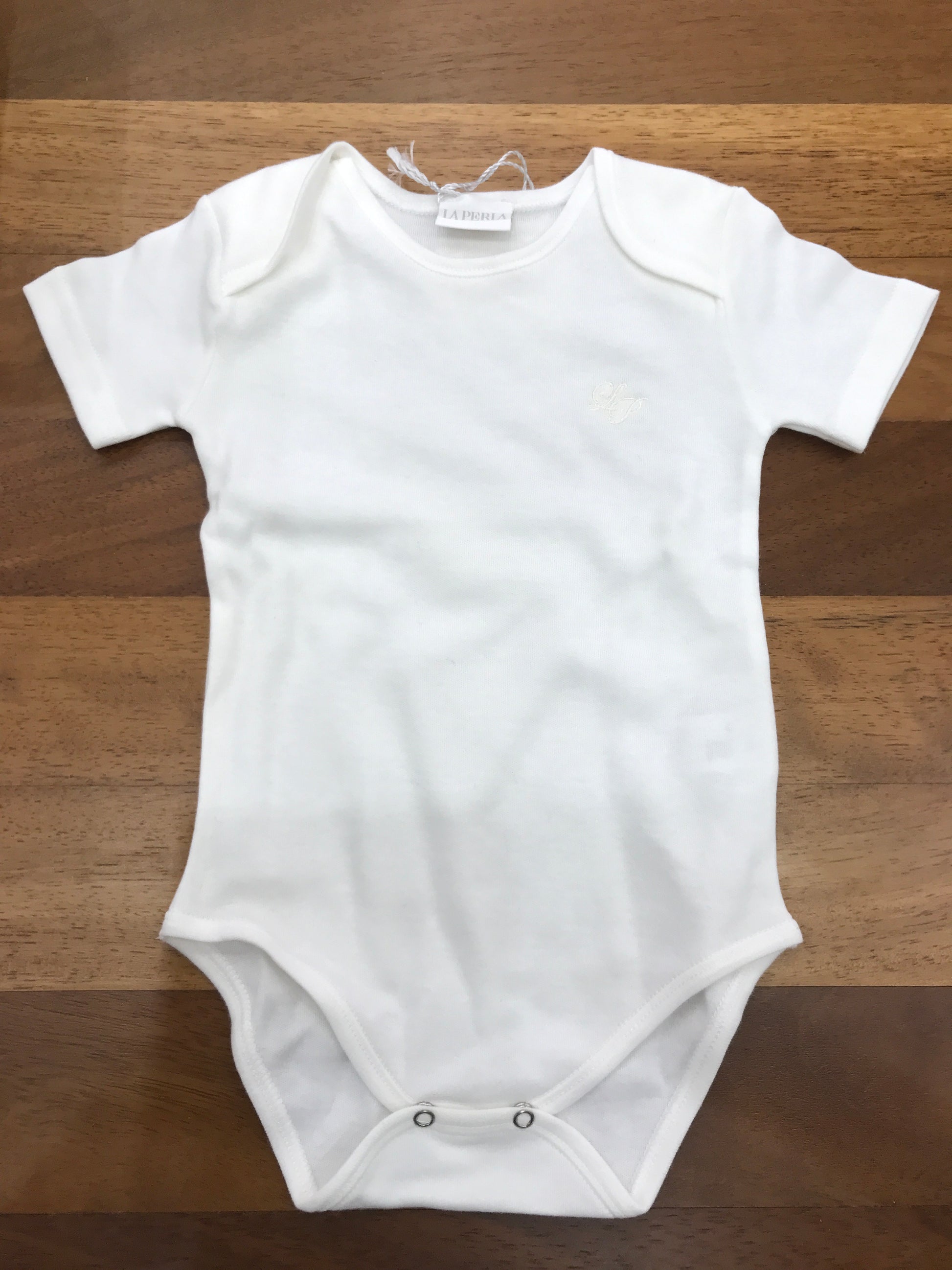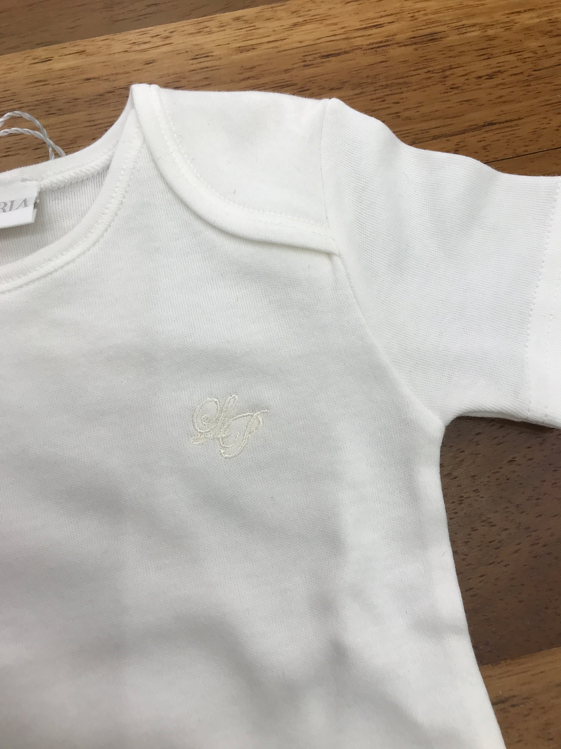 Questo body realizzato in cotone caldo bianco presenta una mezza manica e uno scollo americano, arricchito da un logo ricamato sul lato.