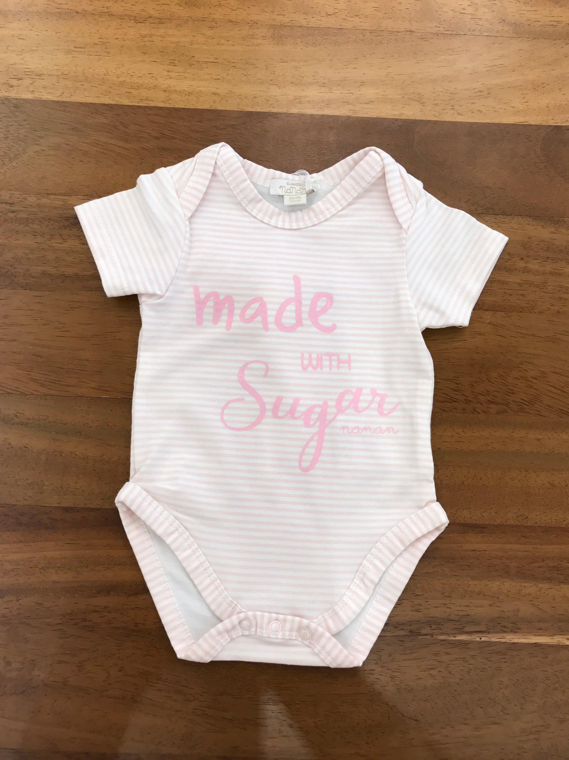 Questo body intimo di colore rosa presenta un design raffinato, valorizzato dalla delicata scritta "made with sugar" che aggiunge un tocco distintivo e sofisticato al capo, ideale per chi cerca eleganza e comfort in un unico prodotto.