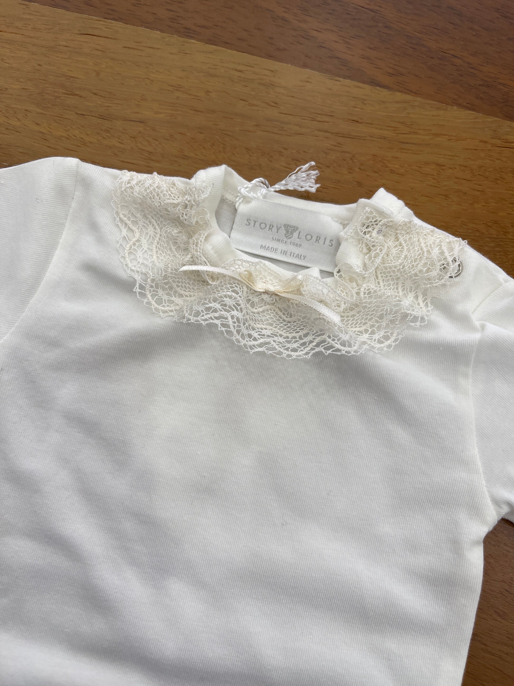 Realizzato con cotone di alta qualità, questo Body story loris è perfetto per le giornate primaverili ed estive. Con maniche a mezza lunghezza e un delicato merletto al collo, offre comfort e stile ineguagliabili. Ideale per un look casual ma elegante.