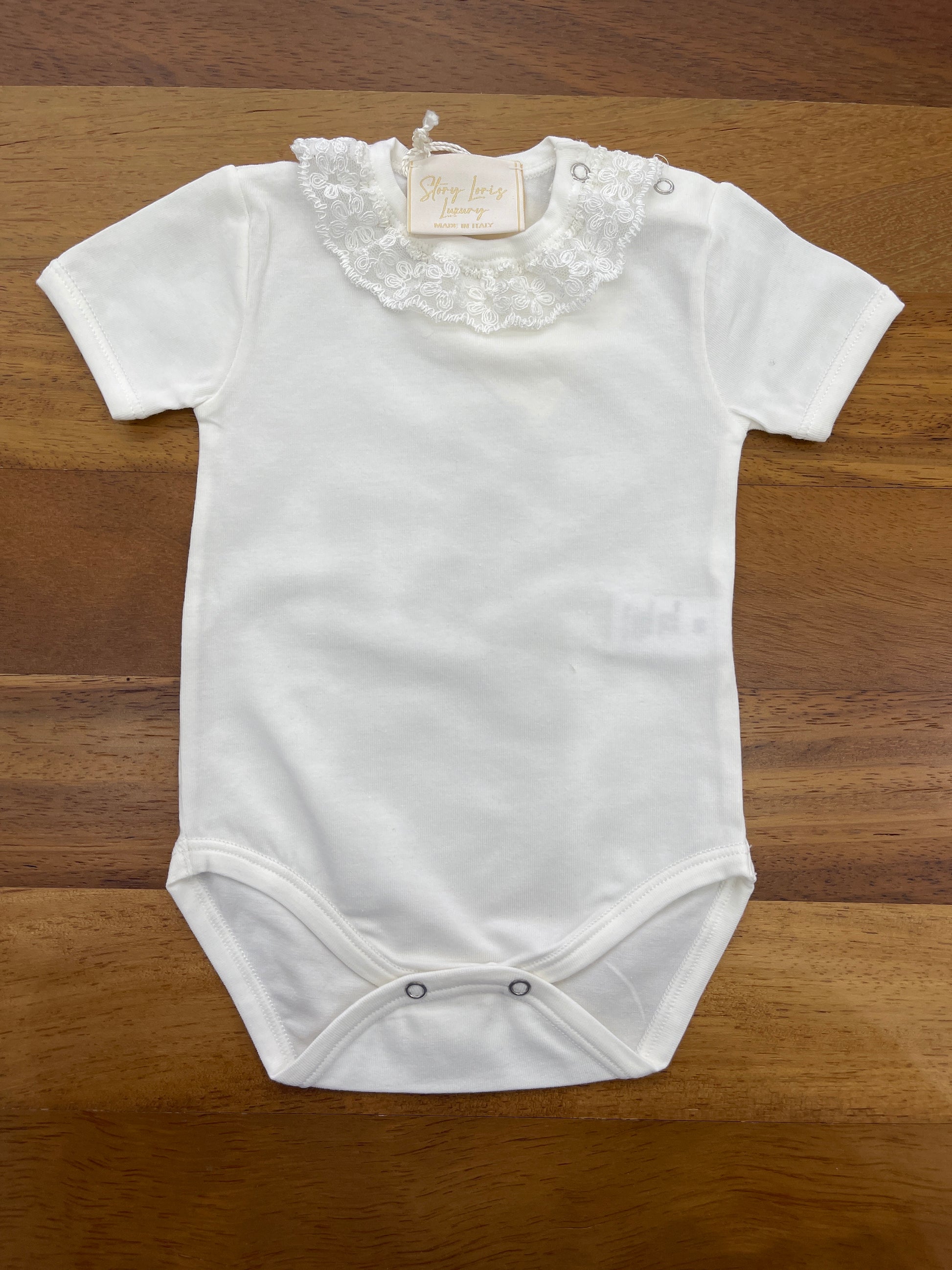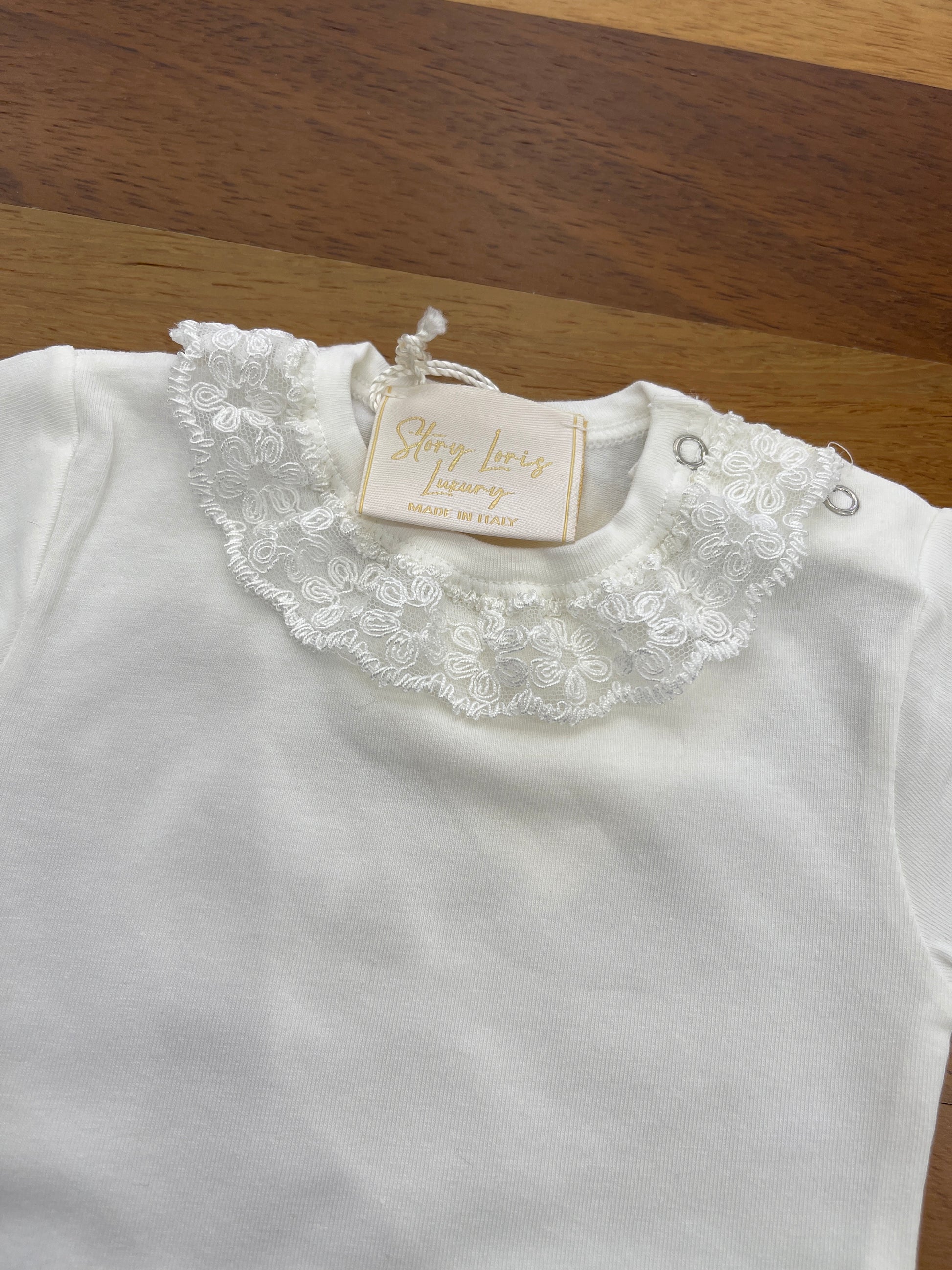 Il Body Story Loris è caratterizzato da un elegante tessuto in cotone e pregiato merletto al collo. Perfetto per chi cerca uno stile raffinato e confortevole, offrendo una vestibilità ideale grazie alla mezza manica. Un prodotto di alta qualità per un look sofisticato e chic.
