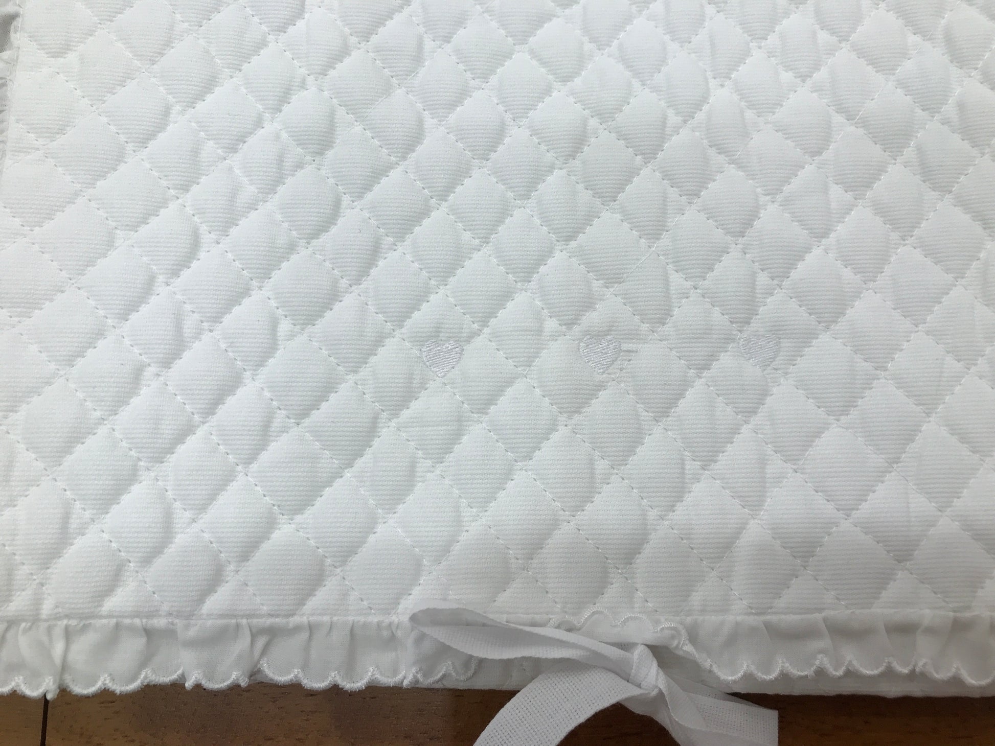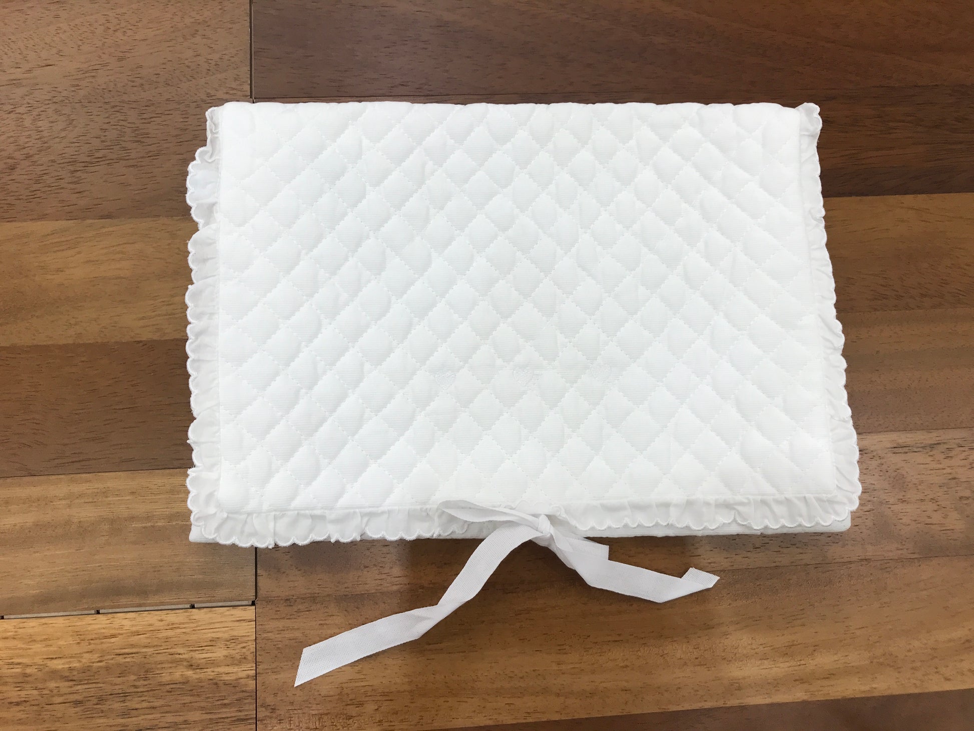 Questa borsa cambio bianca, arricchita da finiture trapuntate e dettagli a smerlo sui lati, è progettata specificamente per rendere più semplice e pratica l’operazione del primo cambio del neonato, offrendo funzionalità e stile in un unico accessorio indispensabile per i genitori.