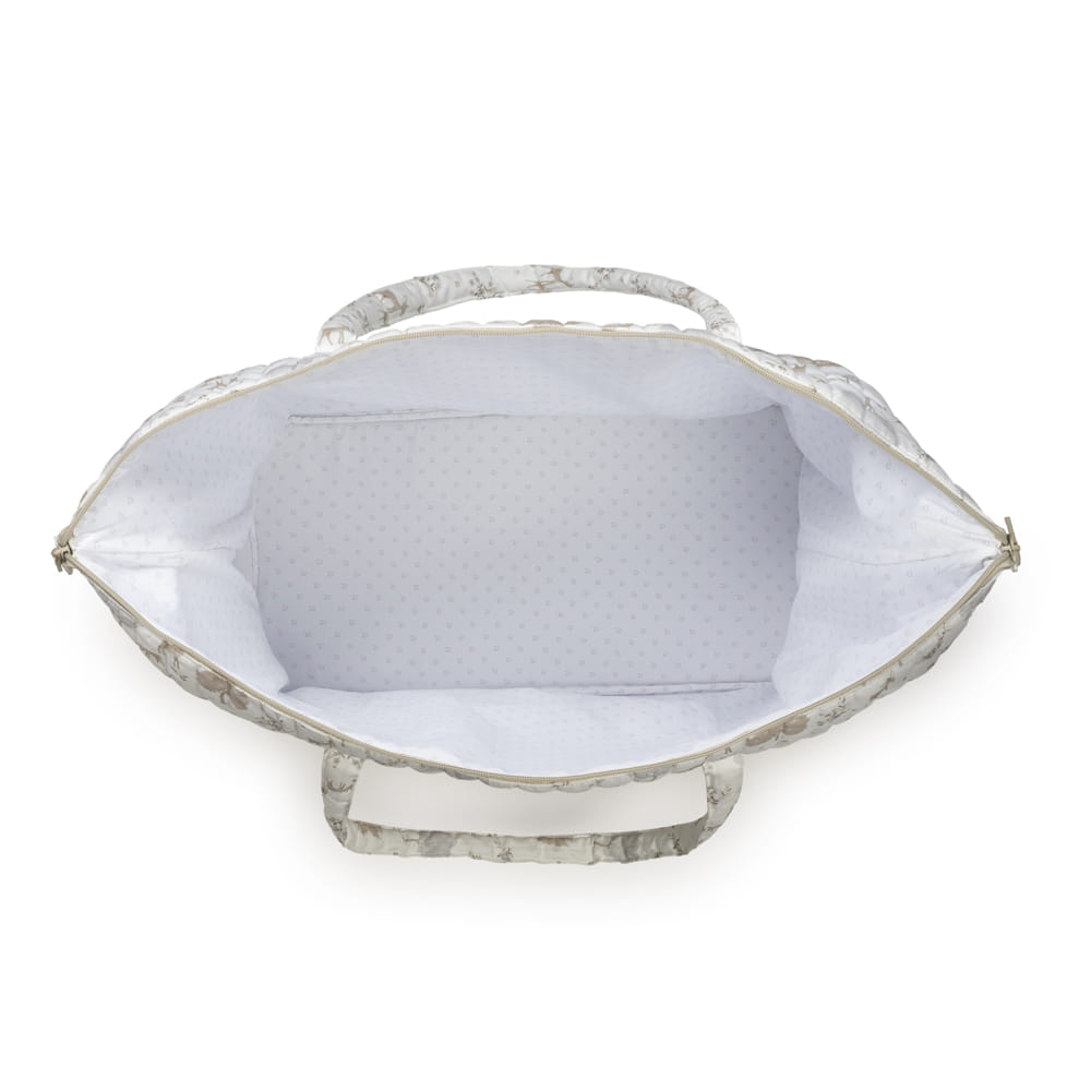 Grazie alla sua grande capacità e ai numerosi scomparti, permette di mantenere tutto in ordine durante le uscite o i viaggi con il bambino. Dispone di diverse tasche interne per una migliore organizzazione e offre un doppio manico superiore per un trasporto comodo a mano, oltre a una tracolla regolabile e removibile per indossarla a spalla o a tracolla.