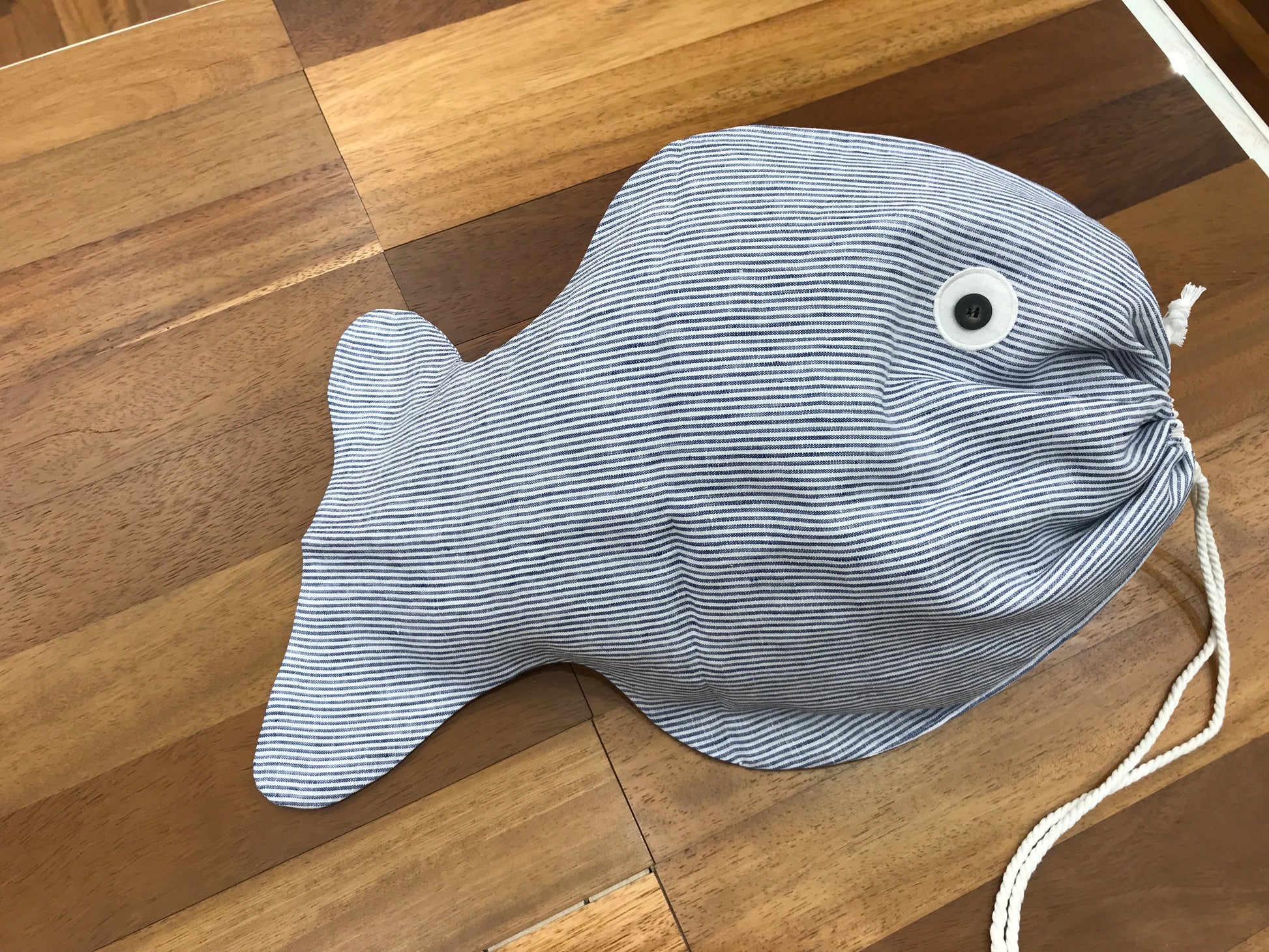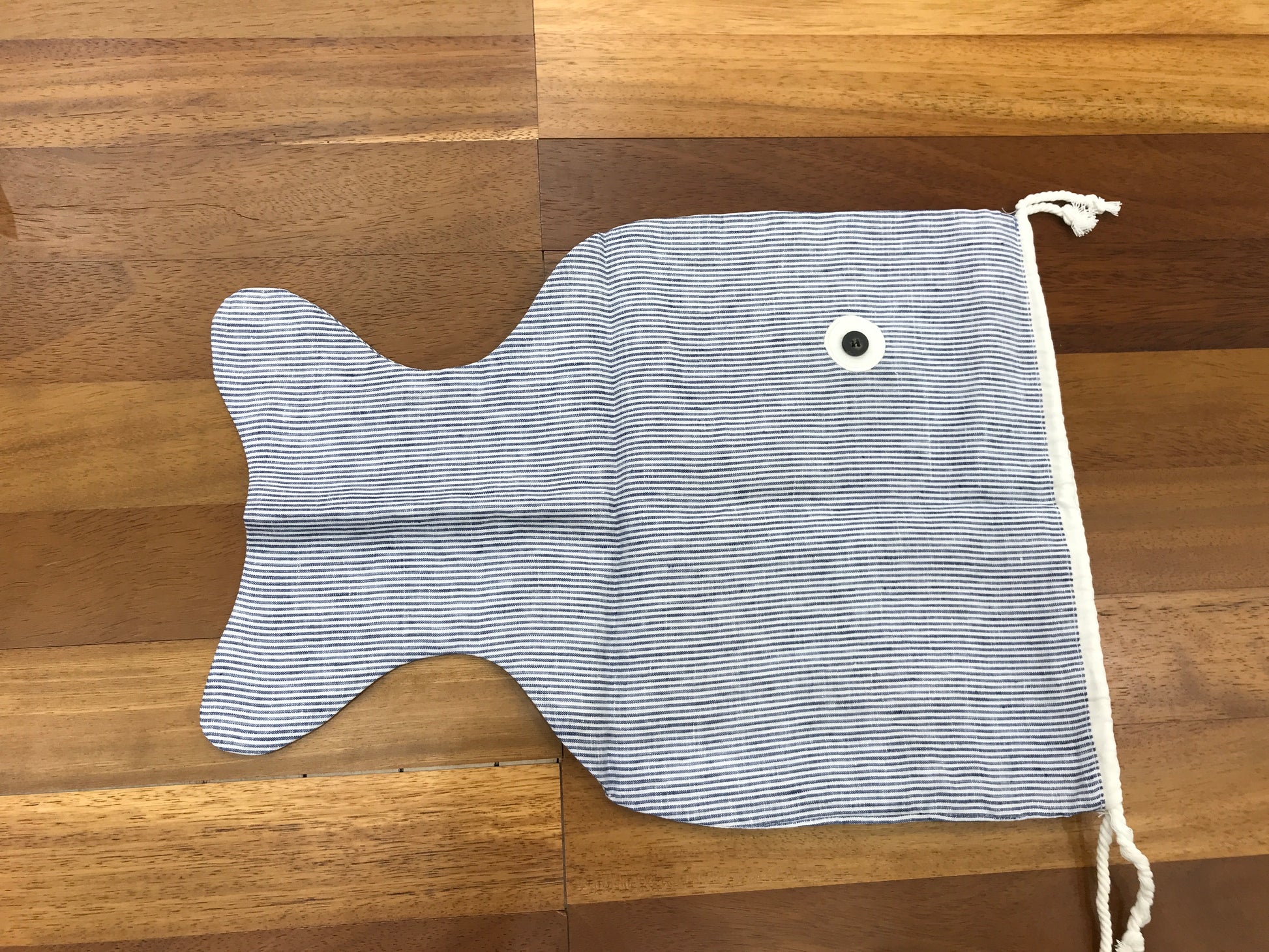 Questa busta cambio presenta una forma originale ispirata al pesce, caratterizzata da eleganti righe bianche e celesti. Completa di un dettaglio distintivo che riproduce l’occhio del pesce, combina design e funzionalità per un accessorio unico e pratico.