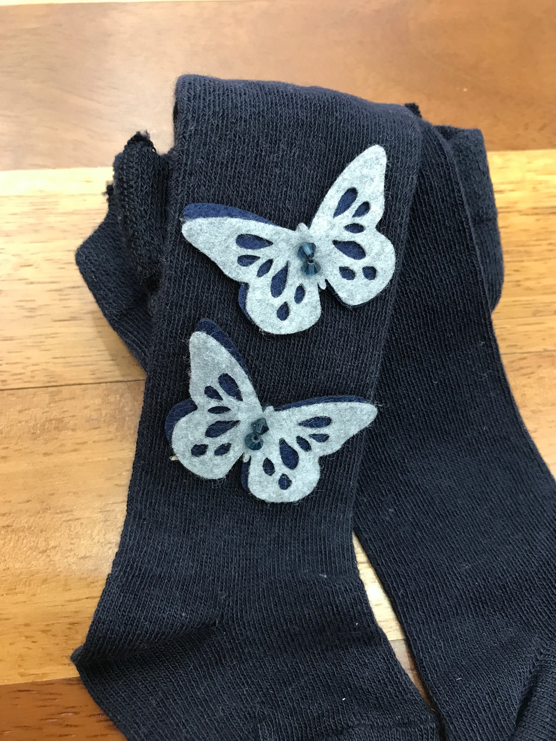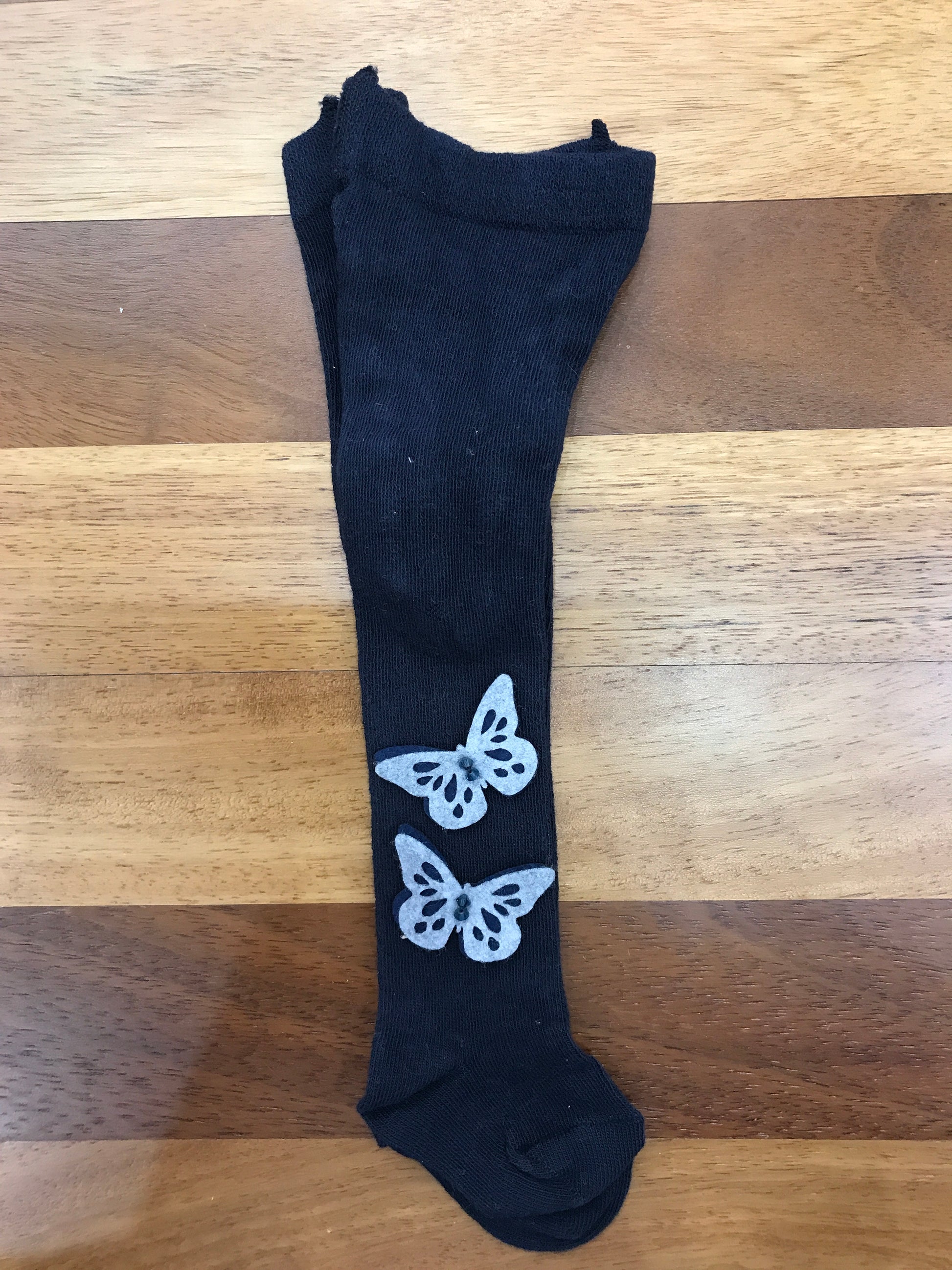Calza in pregiata lana blu scuro, impreziosita da delicate farfalle ricamate in grigio sui lati delle gambine. Un dettaglio raffinato che combina comfort e stile, perfetto per aggiungere un tocco di eleganza alla collezione di abbigliamento per bambini.