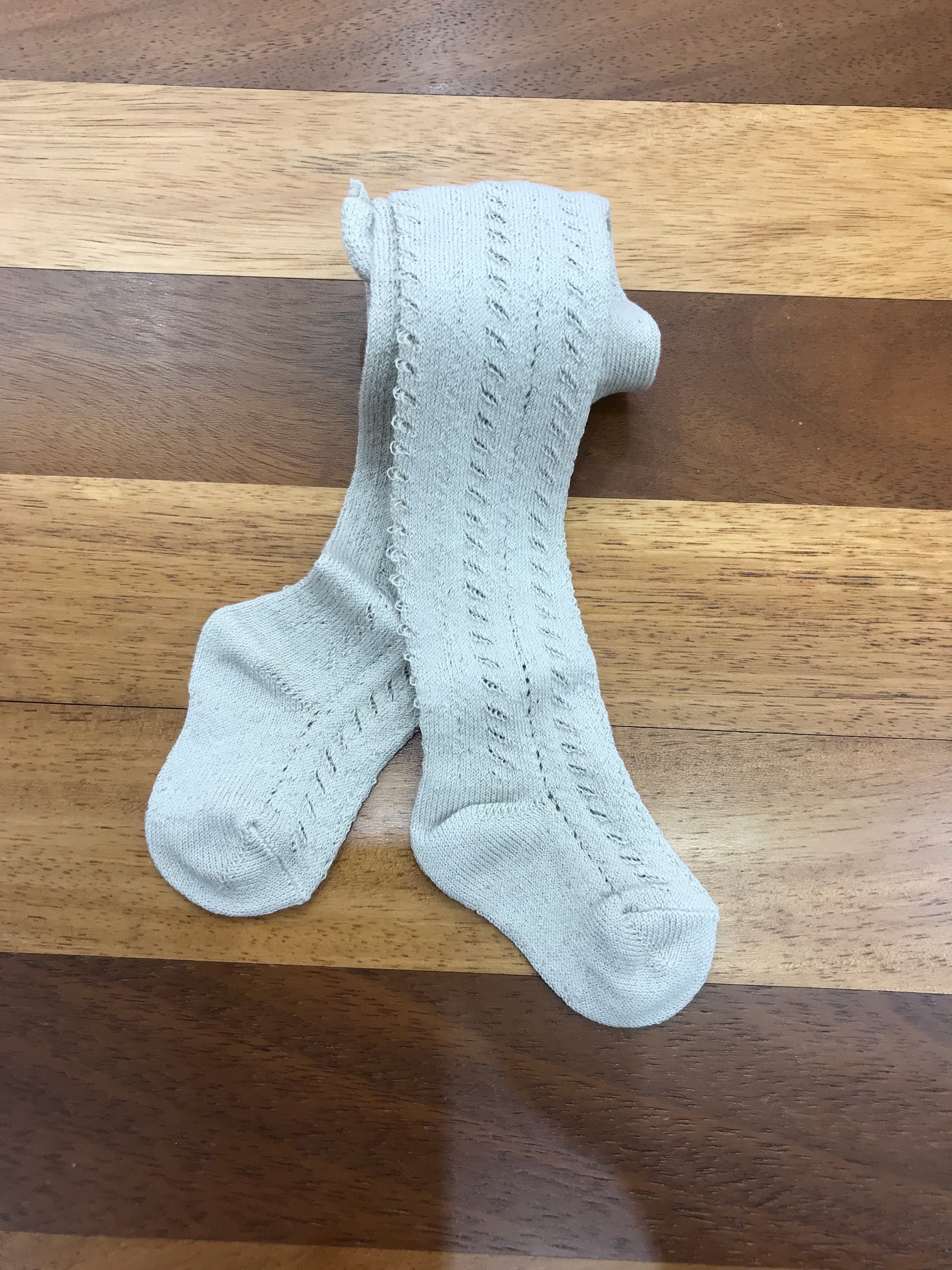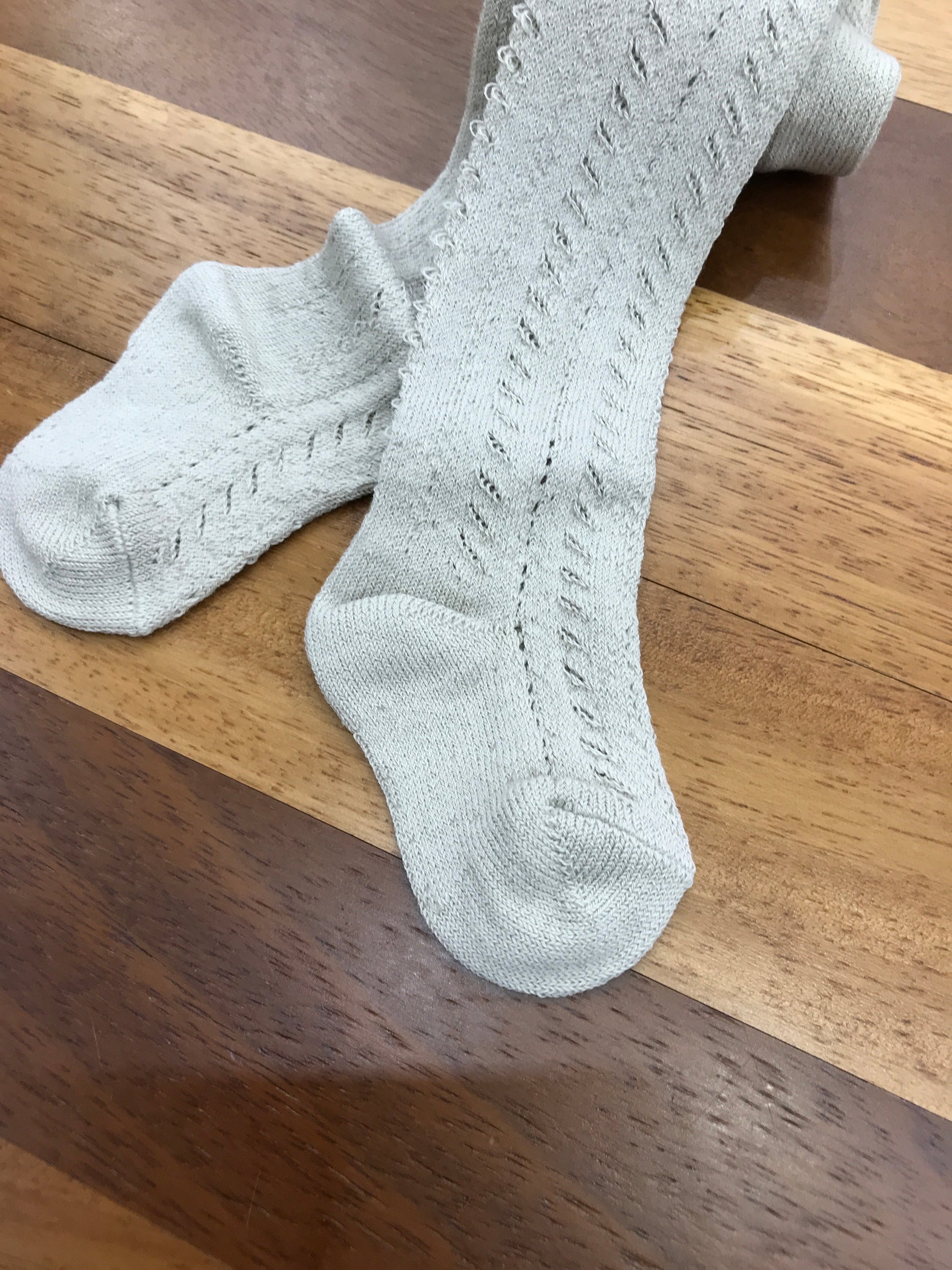 Calza in pura lana vergine dal colore tortora, caratterizzata da una trama traforata che conferisce eleganza e leggerezza. Ideale per chi ricerca un capo versatile che unisce comfort termico e raffinatezza estetica, perfetto per le stagioni intermedie.