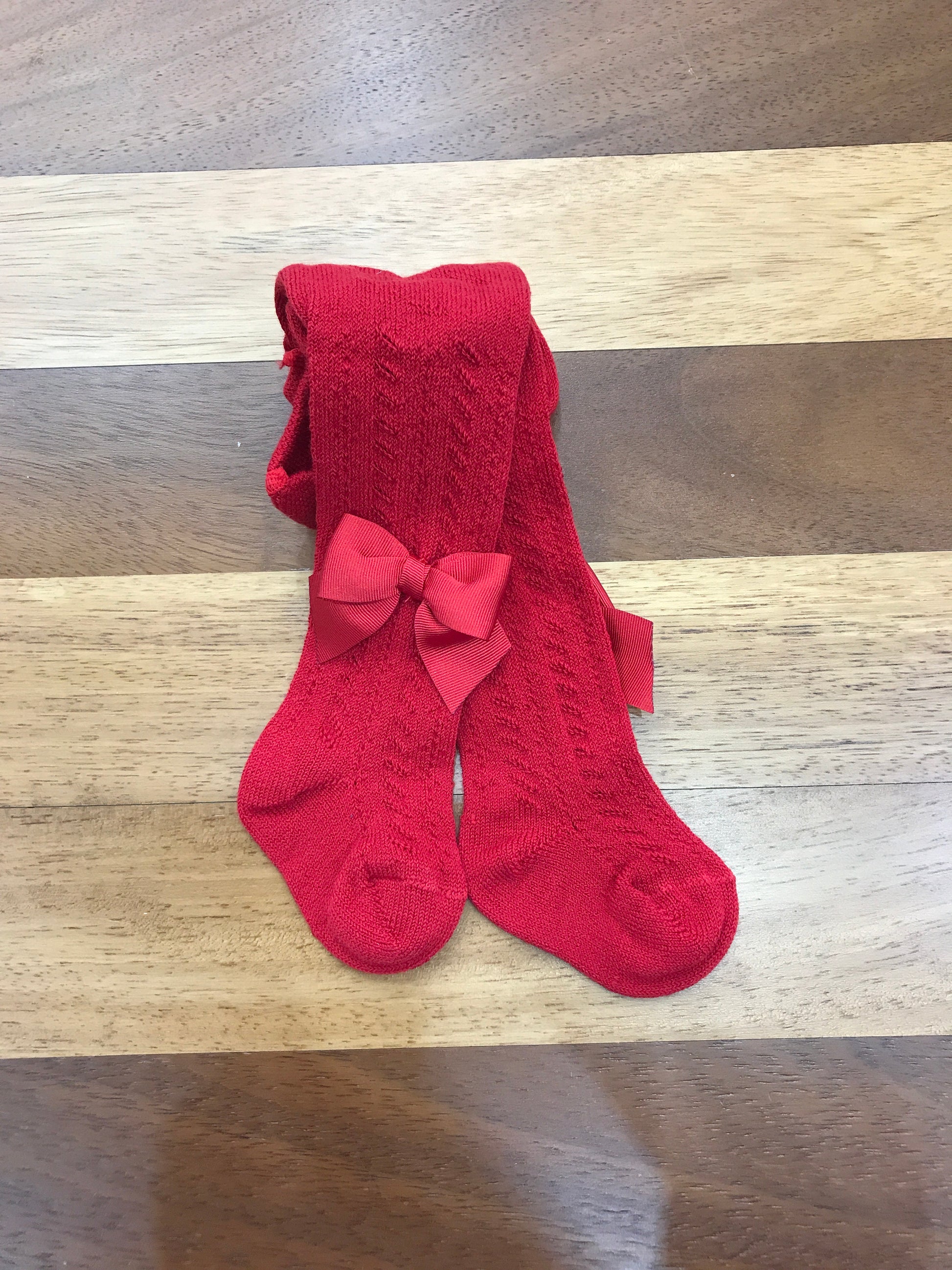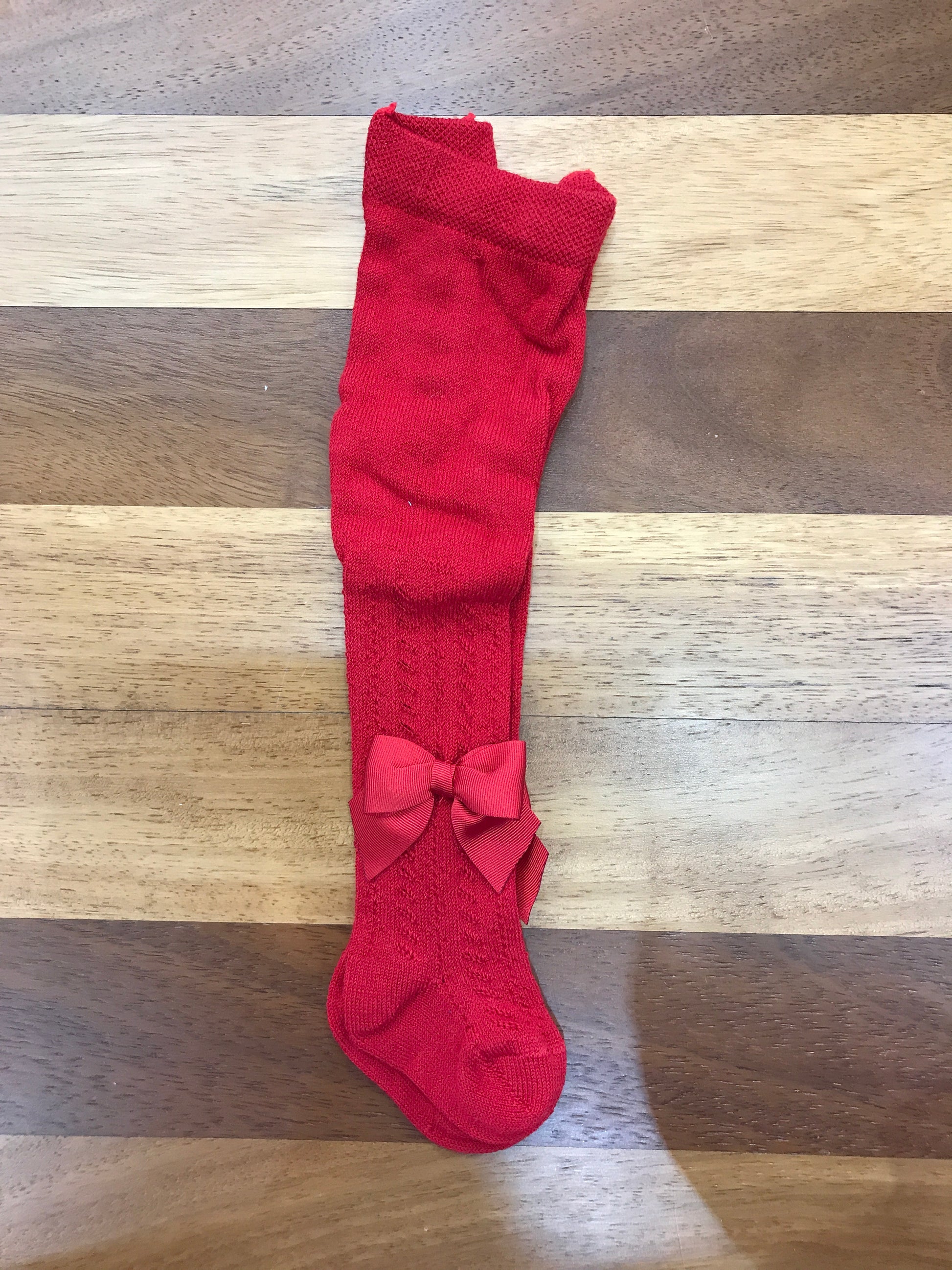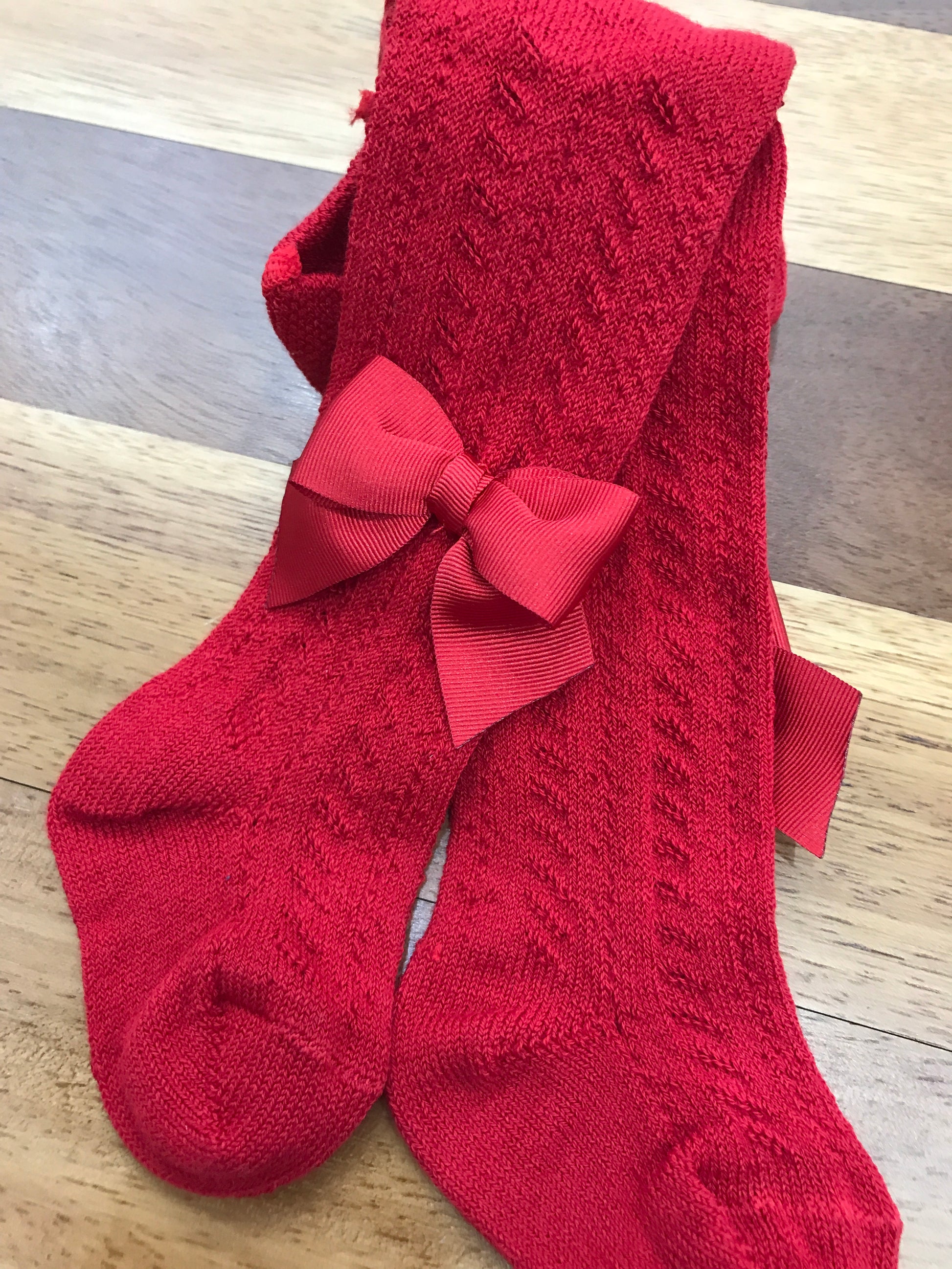 Calza in pura lana rossa con lavorazione traforata che crea un effetto elegante e raffinato. Caratterizzata da un delicato fiocchetto laterale alle gambine, rappresenta una scelta sofisticata per chi ricerca dettagli curati e qualità superiore. Ideale per occasioni speciali, combina comfort termico con un design distintivo.