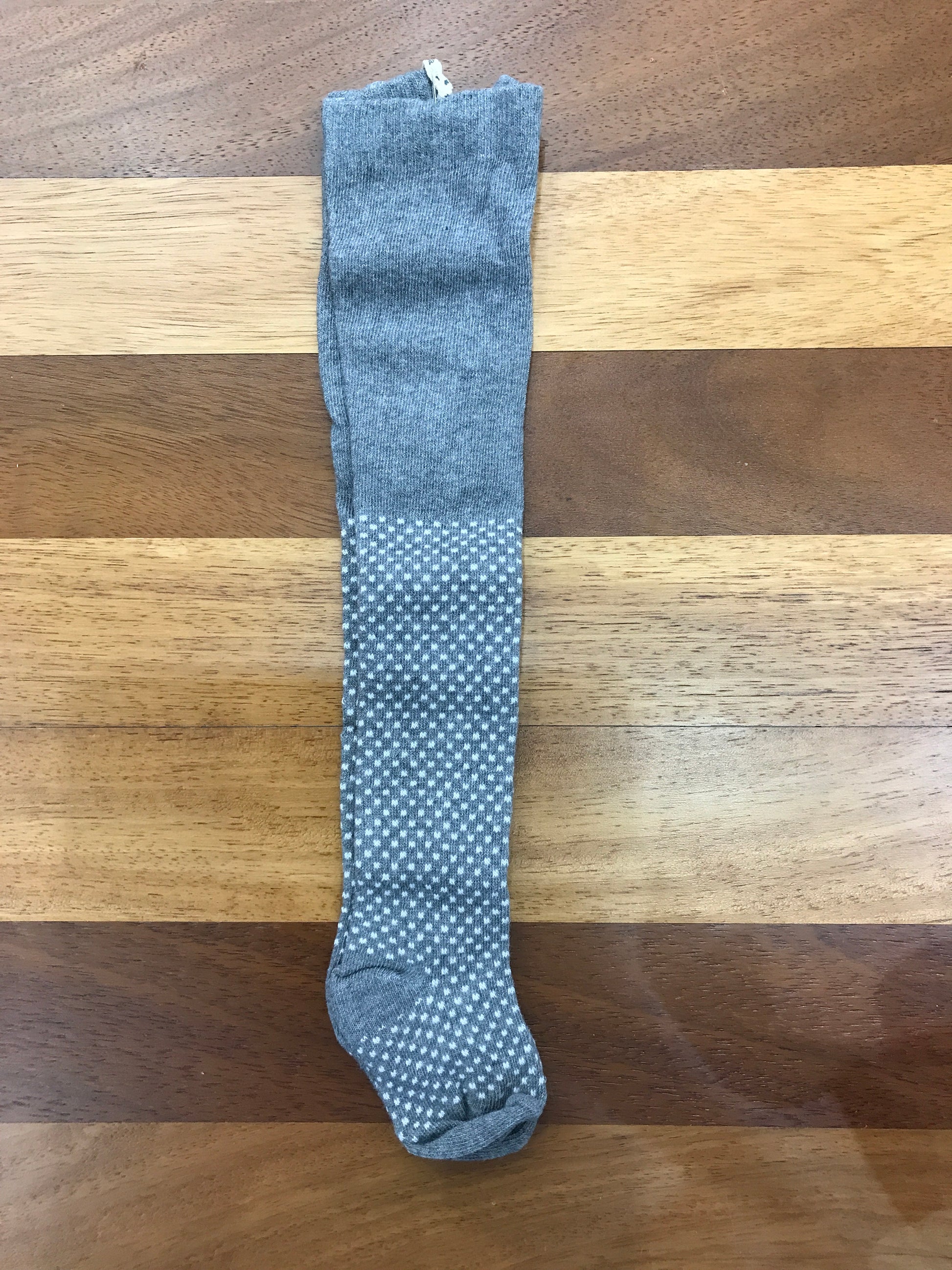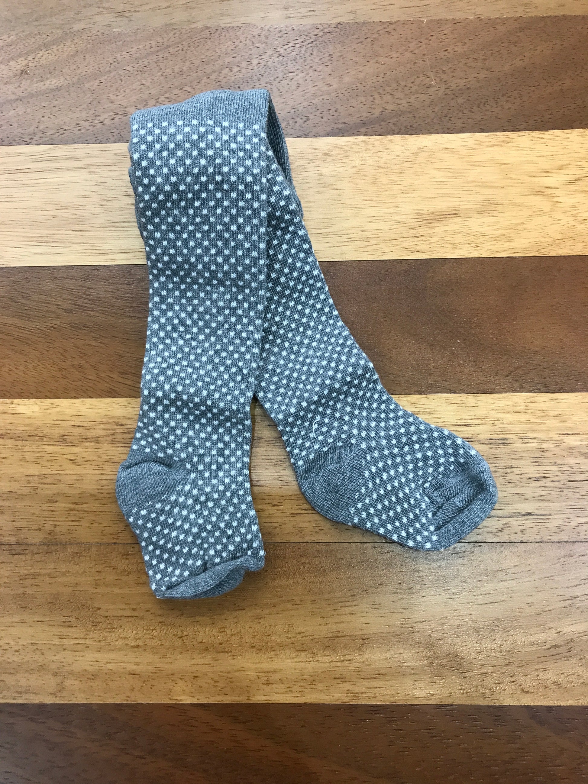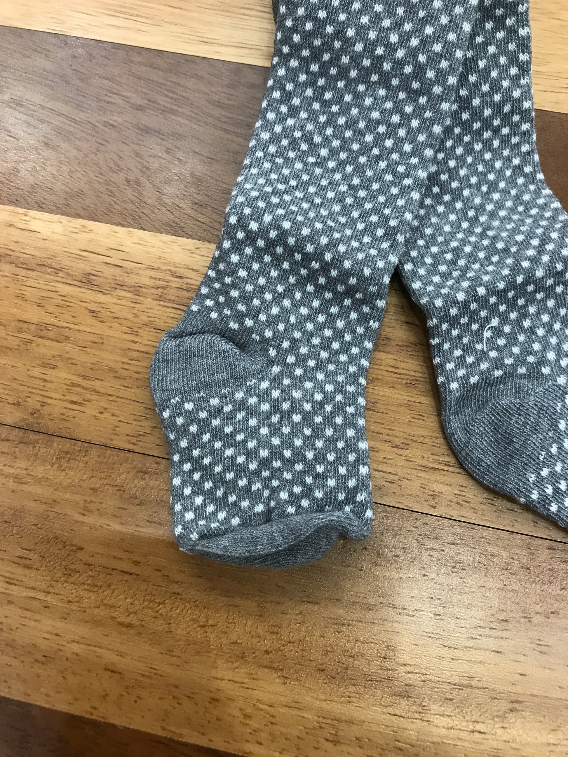 Elegante calza in tonalità grigia impreziosita da un delicato motivo a pois bianchi. Un capo versatile che combina semplicità e raffinatezza, perfetto per completare l'outfit quotidiano con stile e personalità.